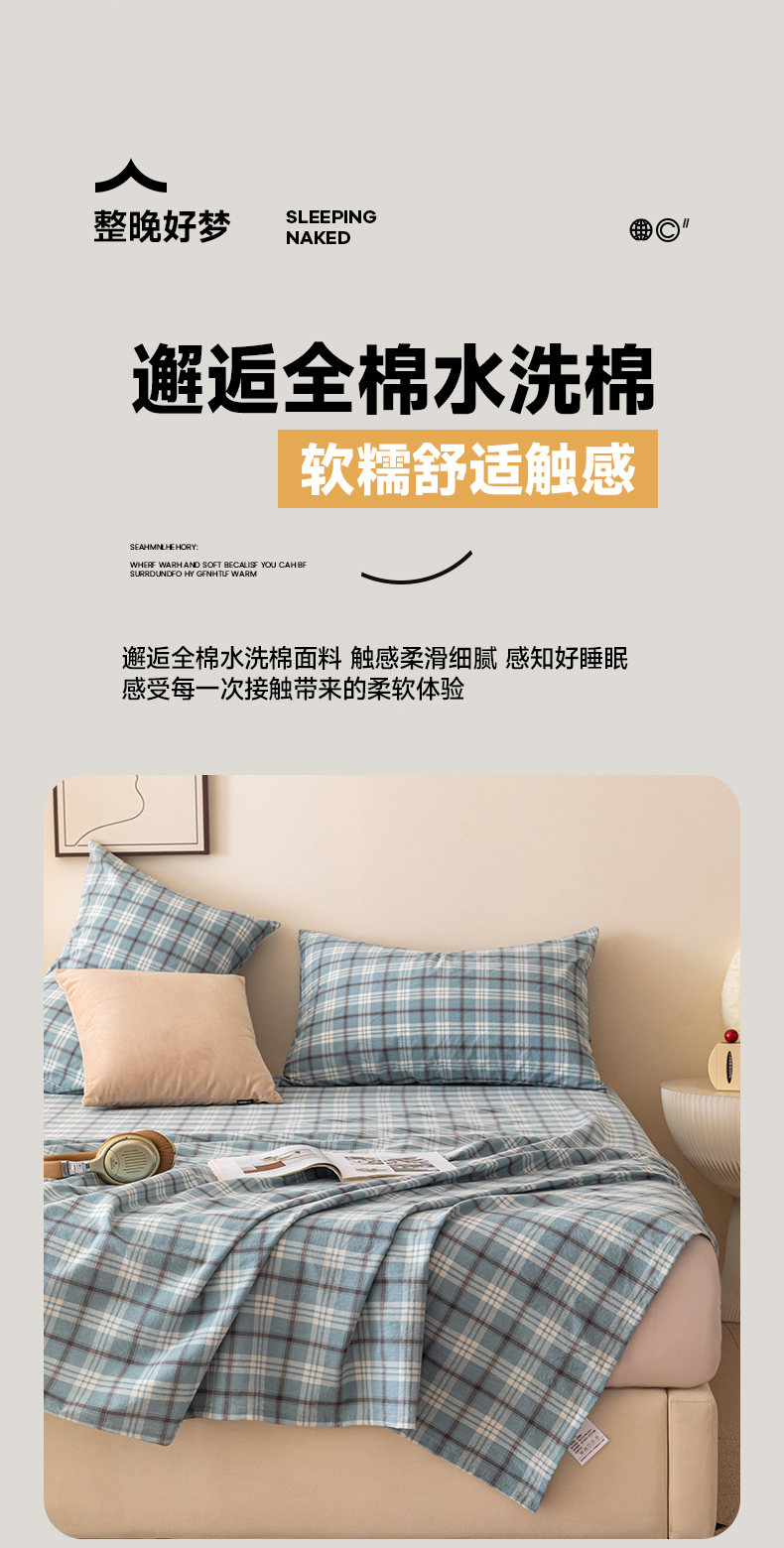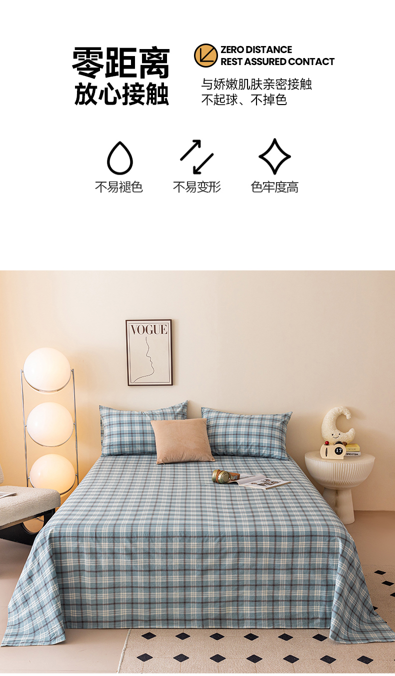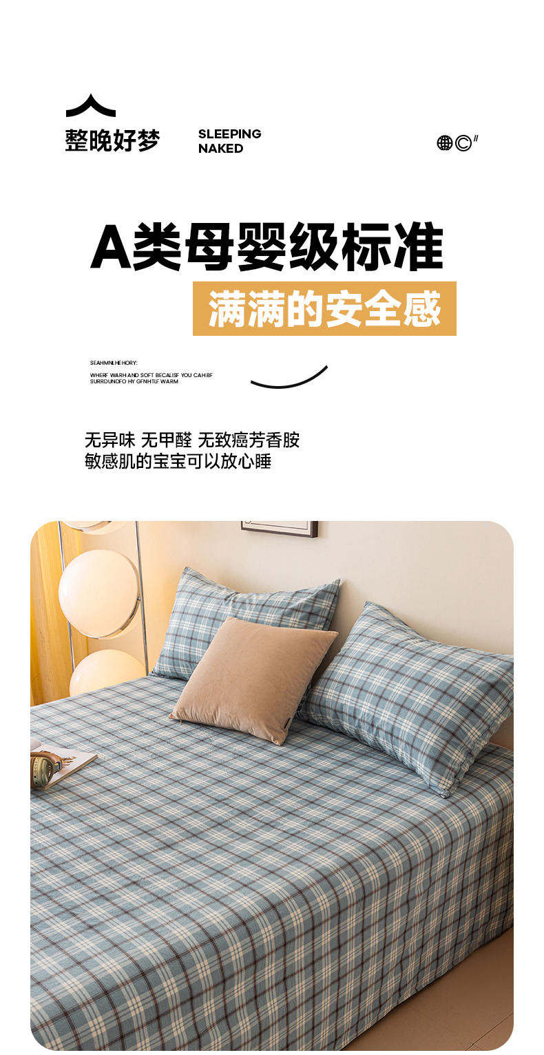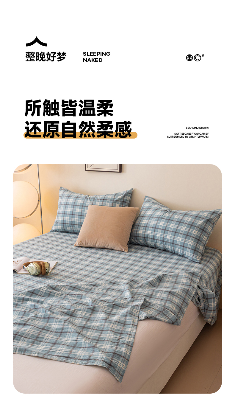 寐眠 2024新款全棉水洗棉床单床笠单品-单床单 蔚蓝格