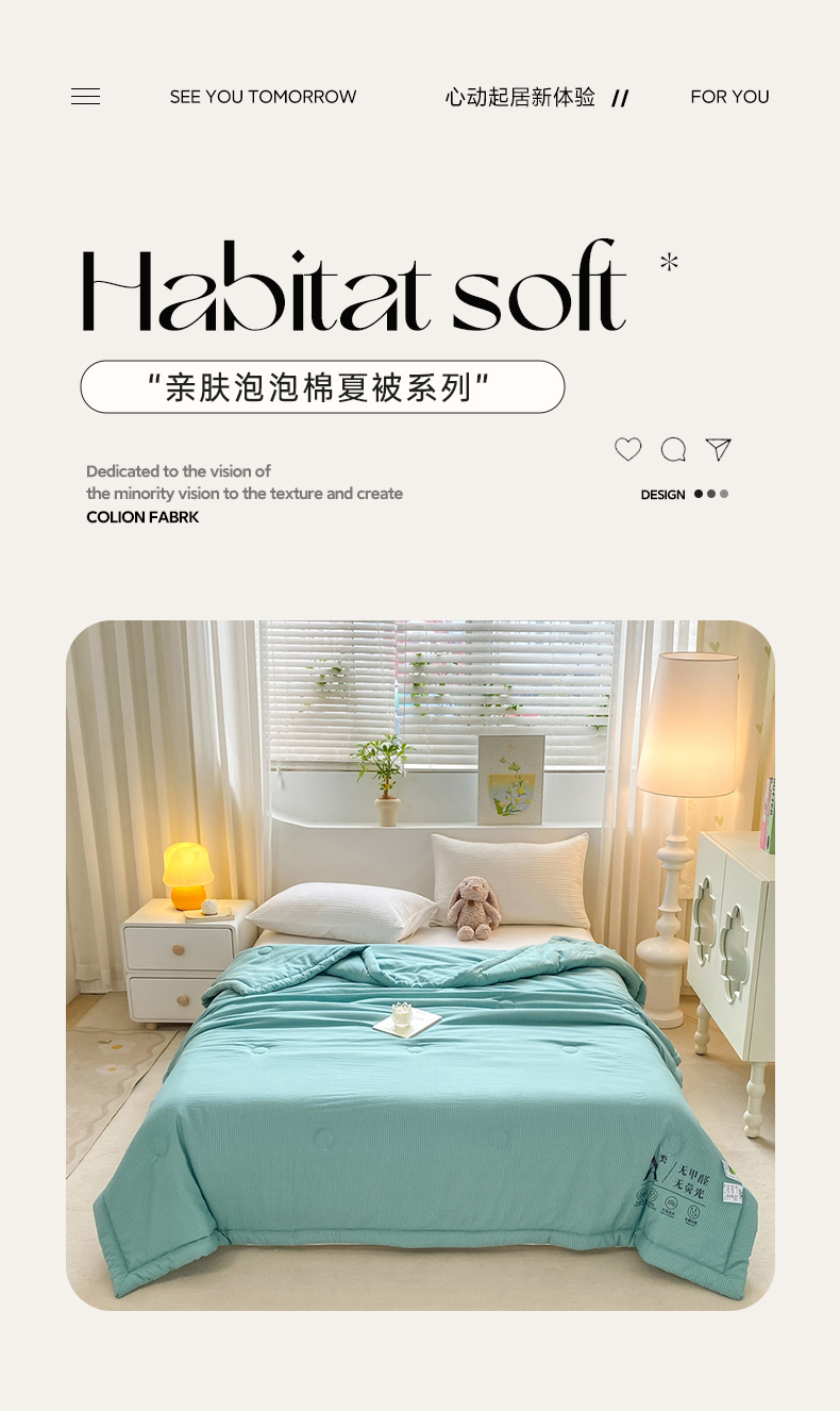 当前位置: 91家纺网 > 商品网购 > 床品套件 > 四件套 > 夏被四件套 > 恋之巢2024新款泡泡棉夏被四件套 单夏被 纯色夏被大豆蛋白抗菌纤维棉被 月河兰
