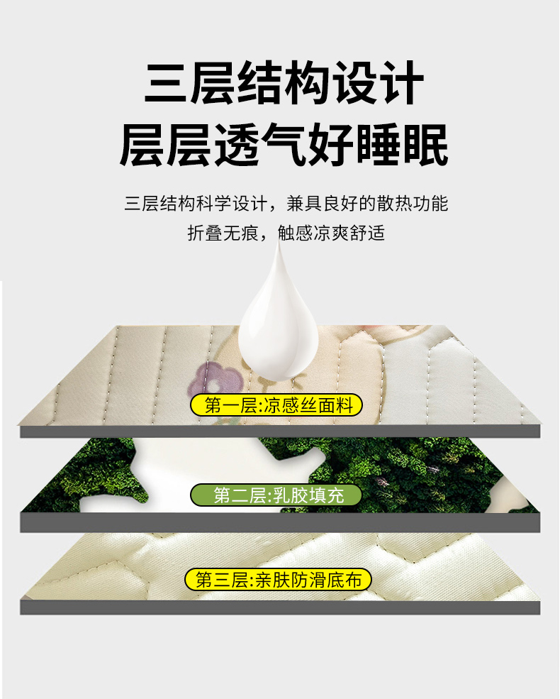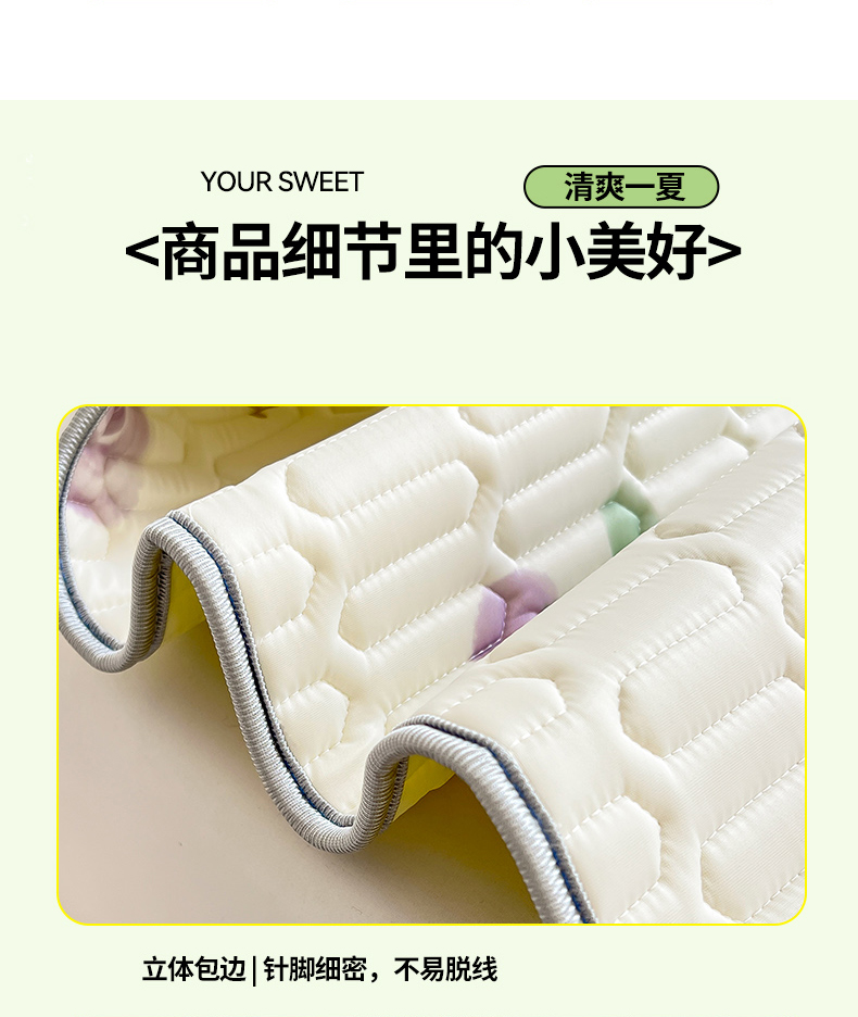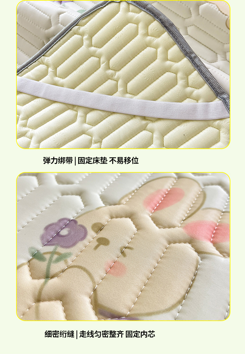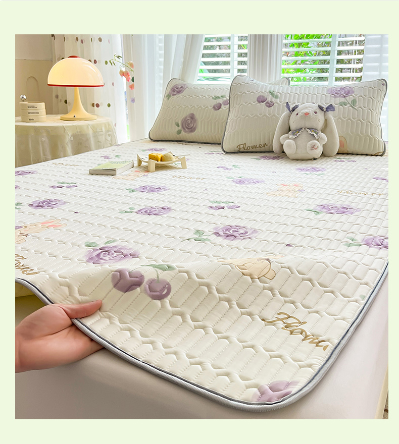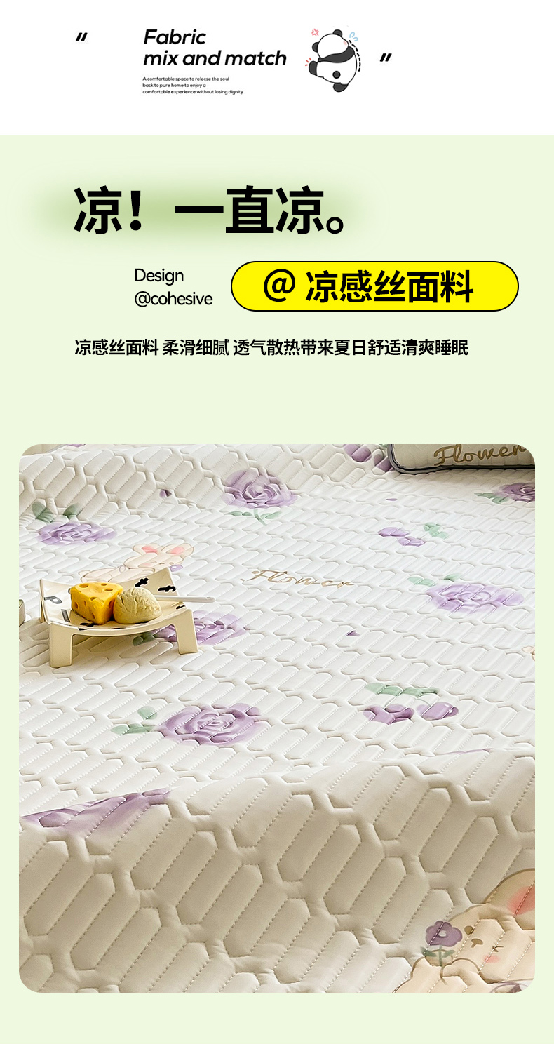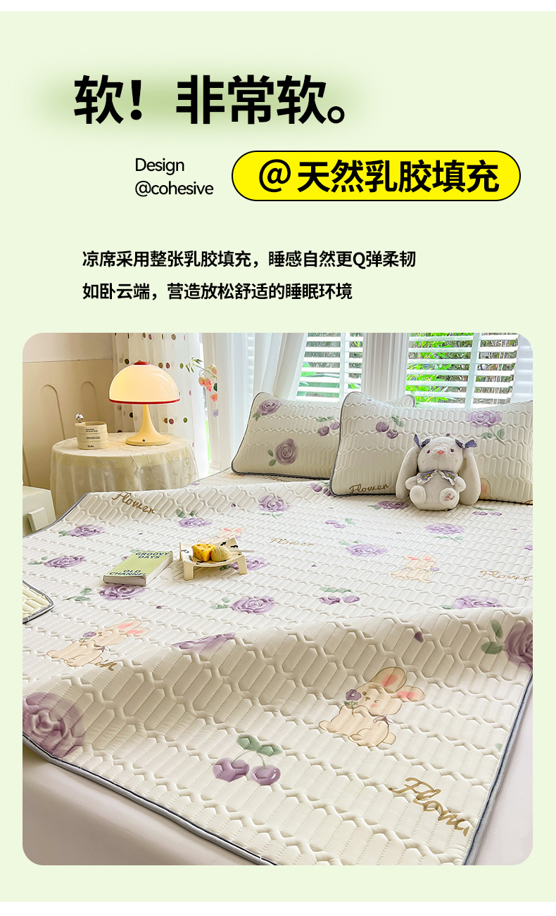 商品名称:佳梦达 2025新款0.4厚度印花凉感丝乳胶凉席 玫瑰小兔-紫