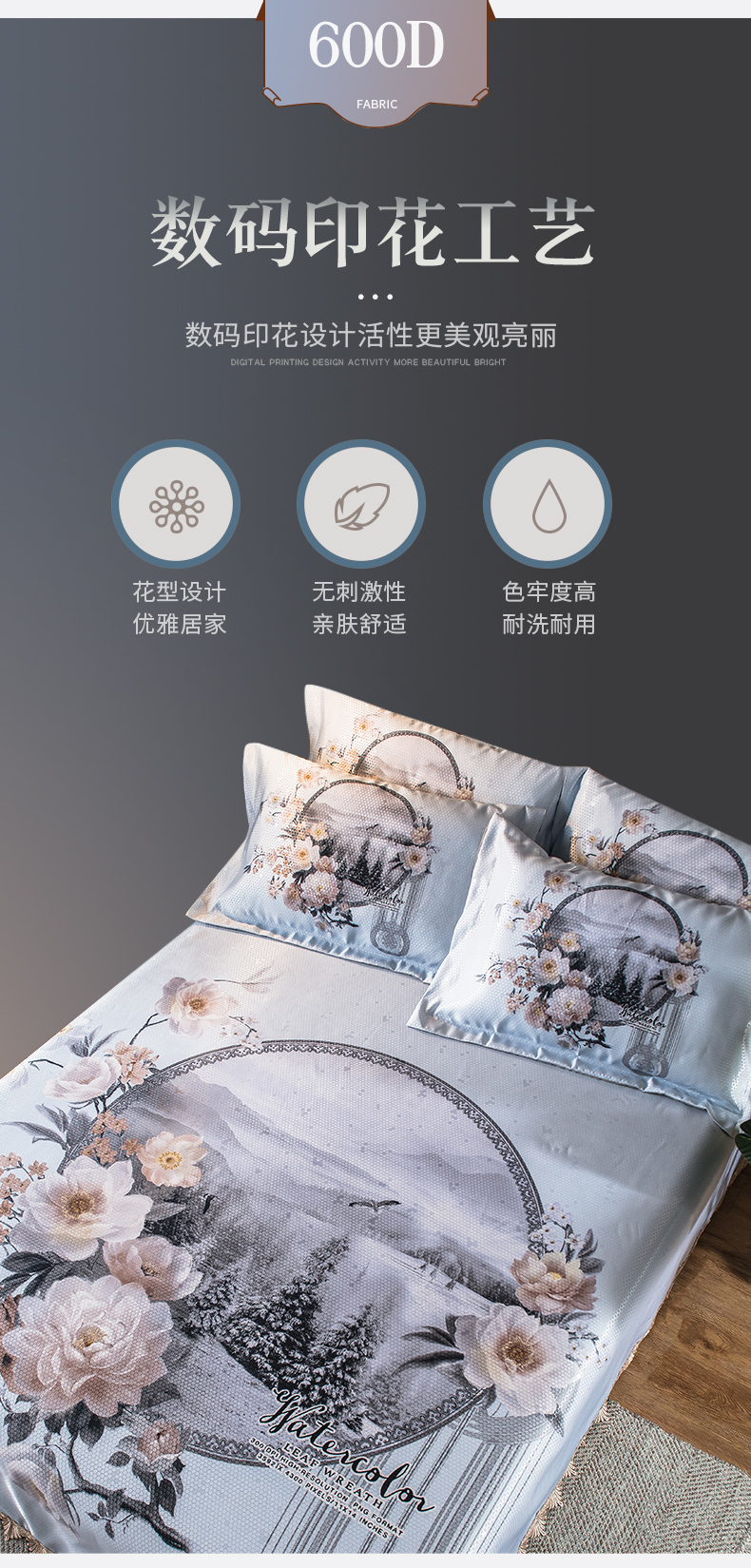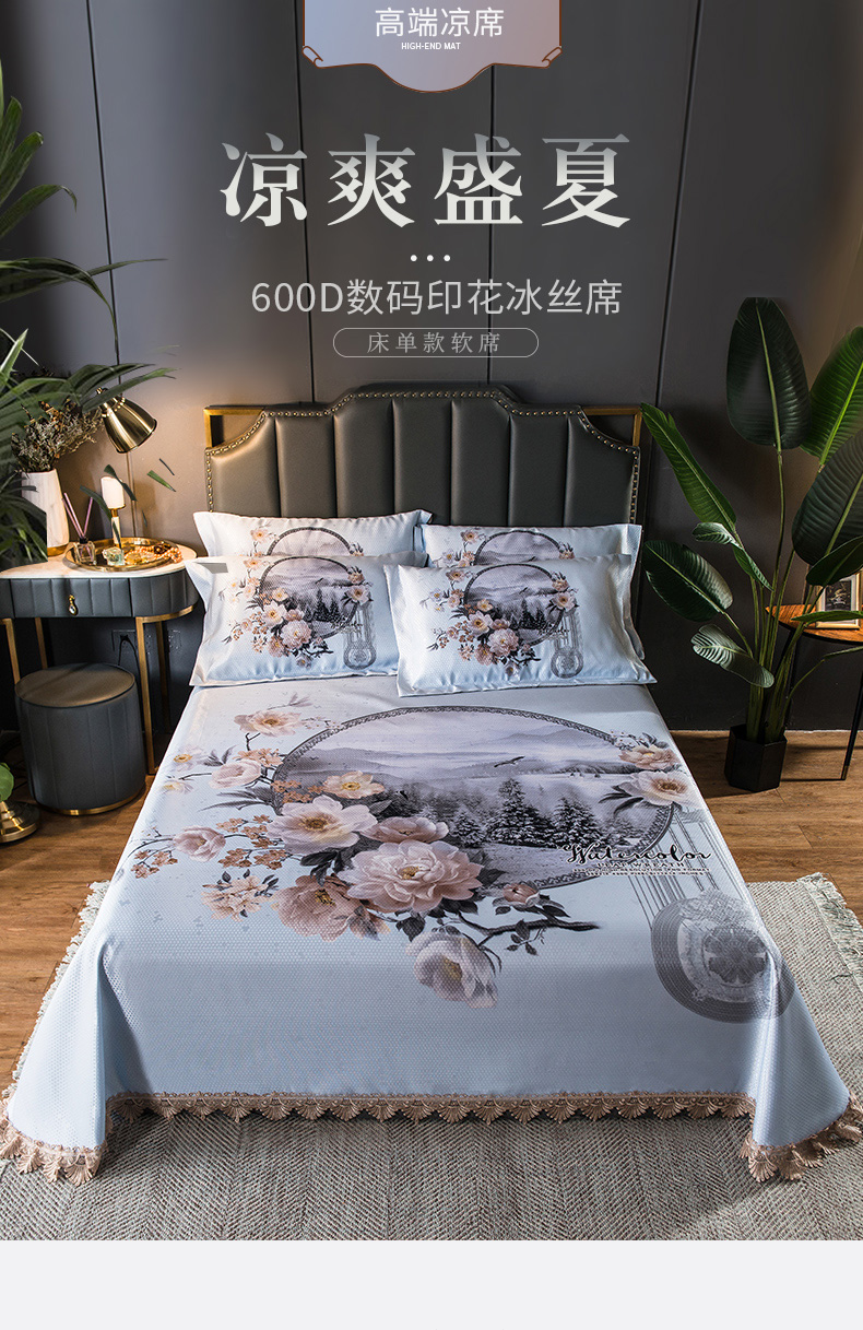 商品名称:其奥家纺 2025新款900d窝蜂冰丝凉席三件套 花开富贵
