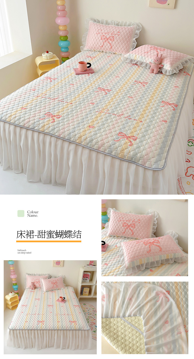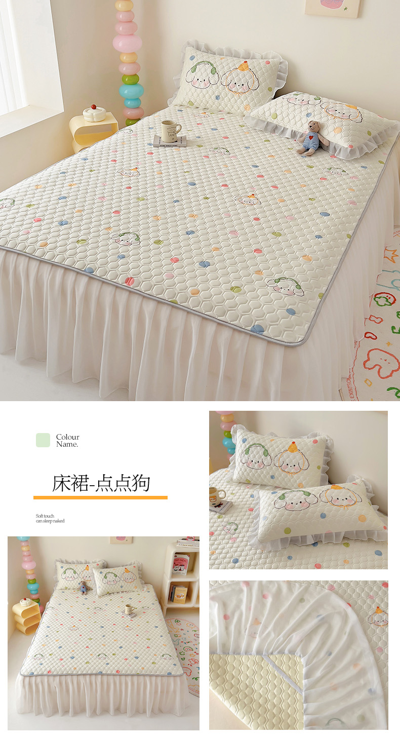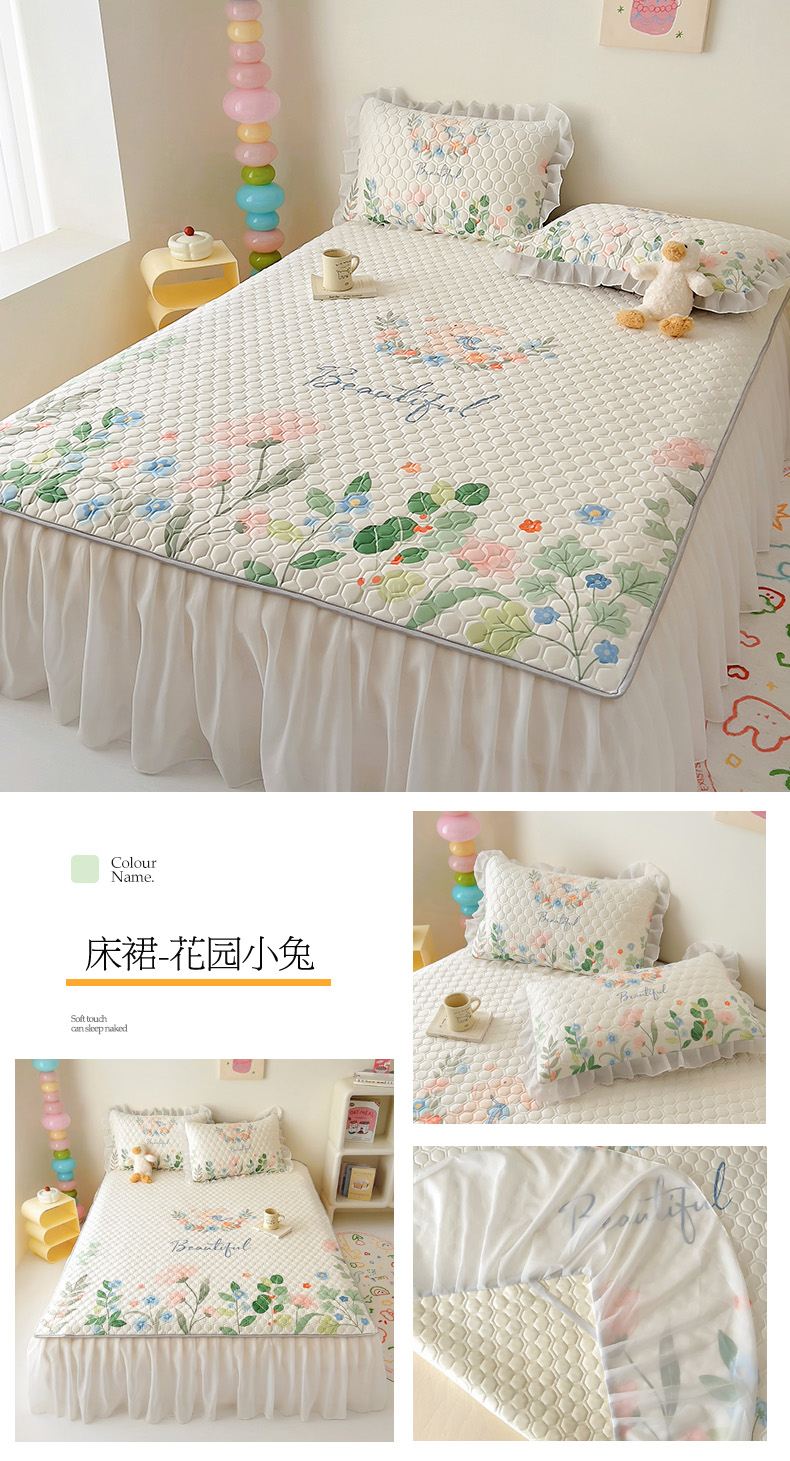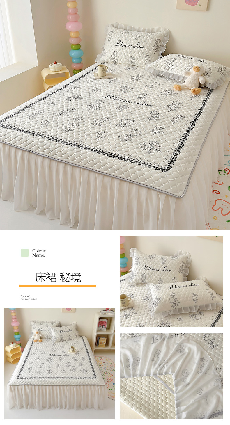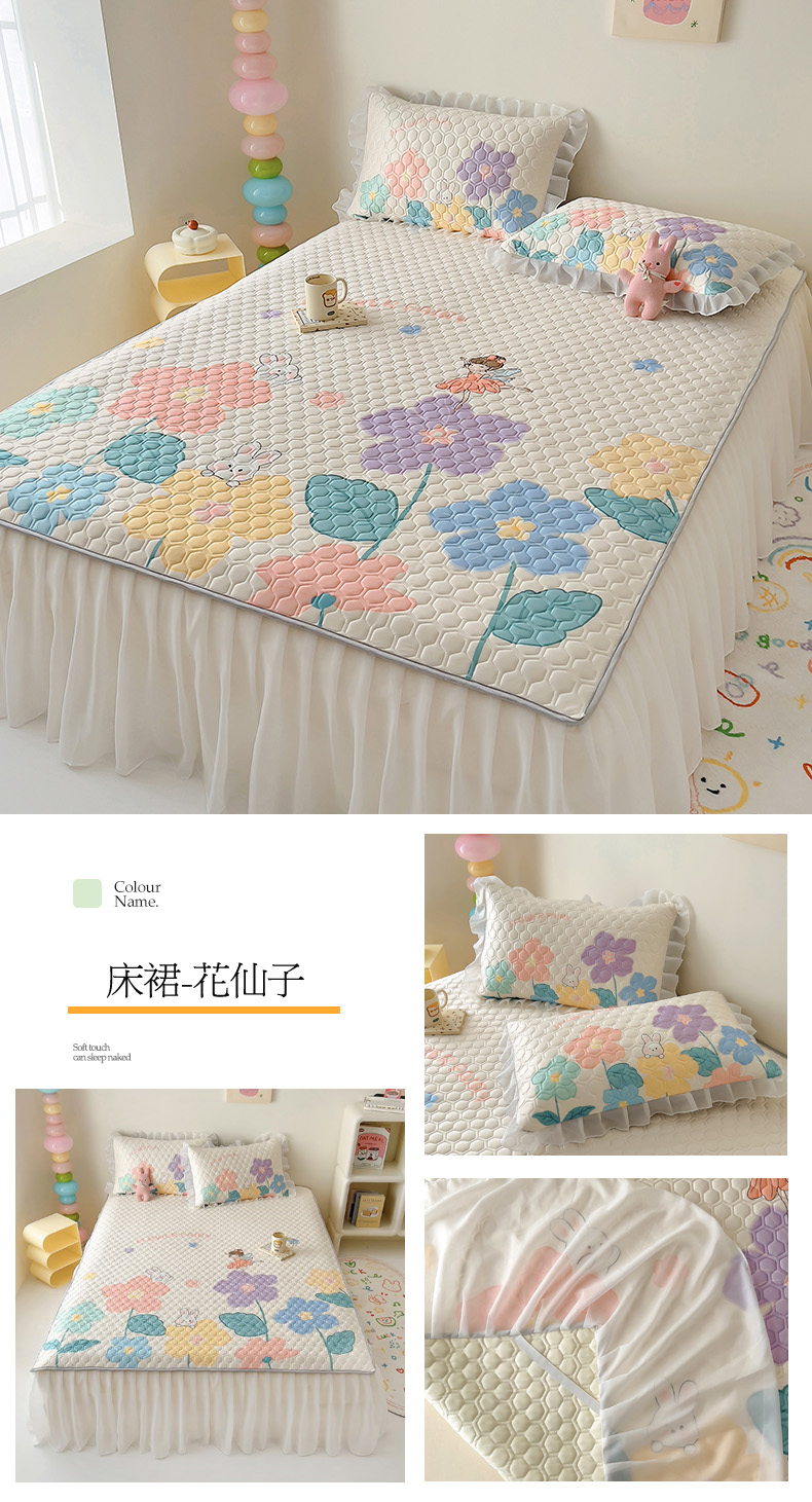 商品名称:(总)柒月家居 2024新款奶油风大版凉感丝床裙款乳胶席