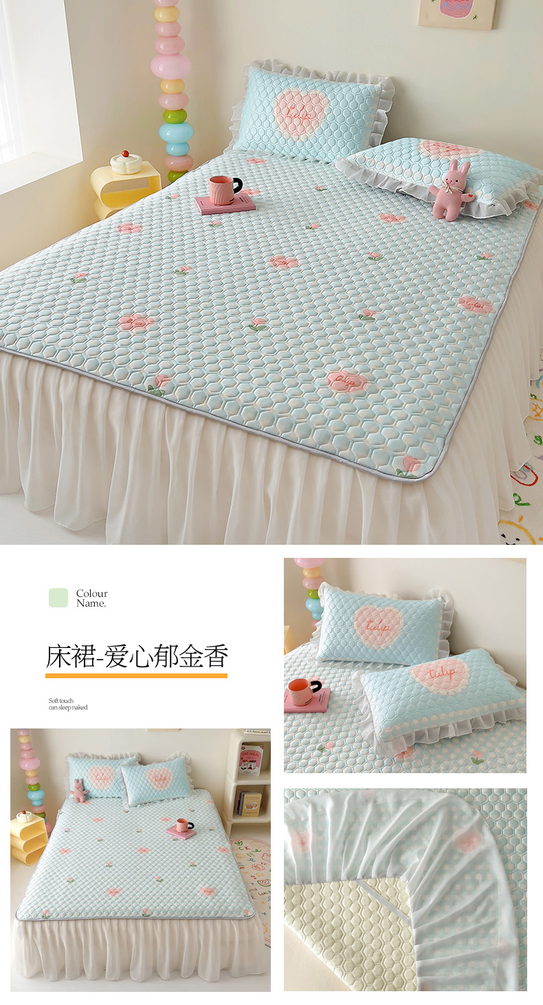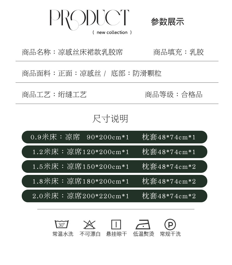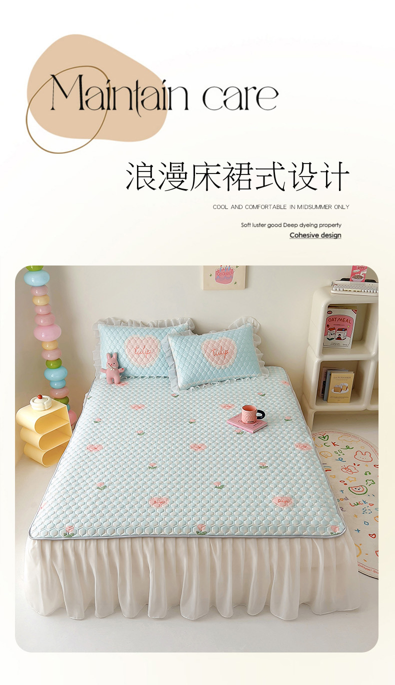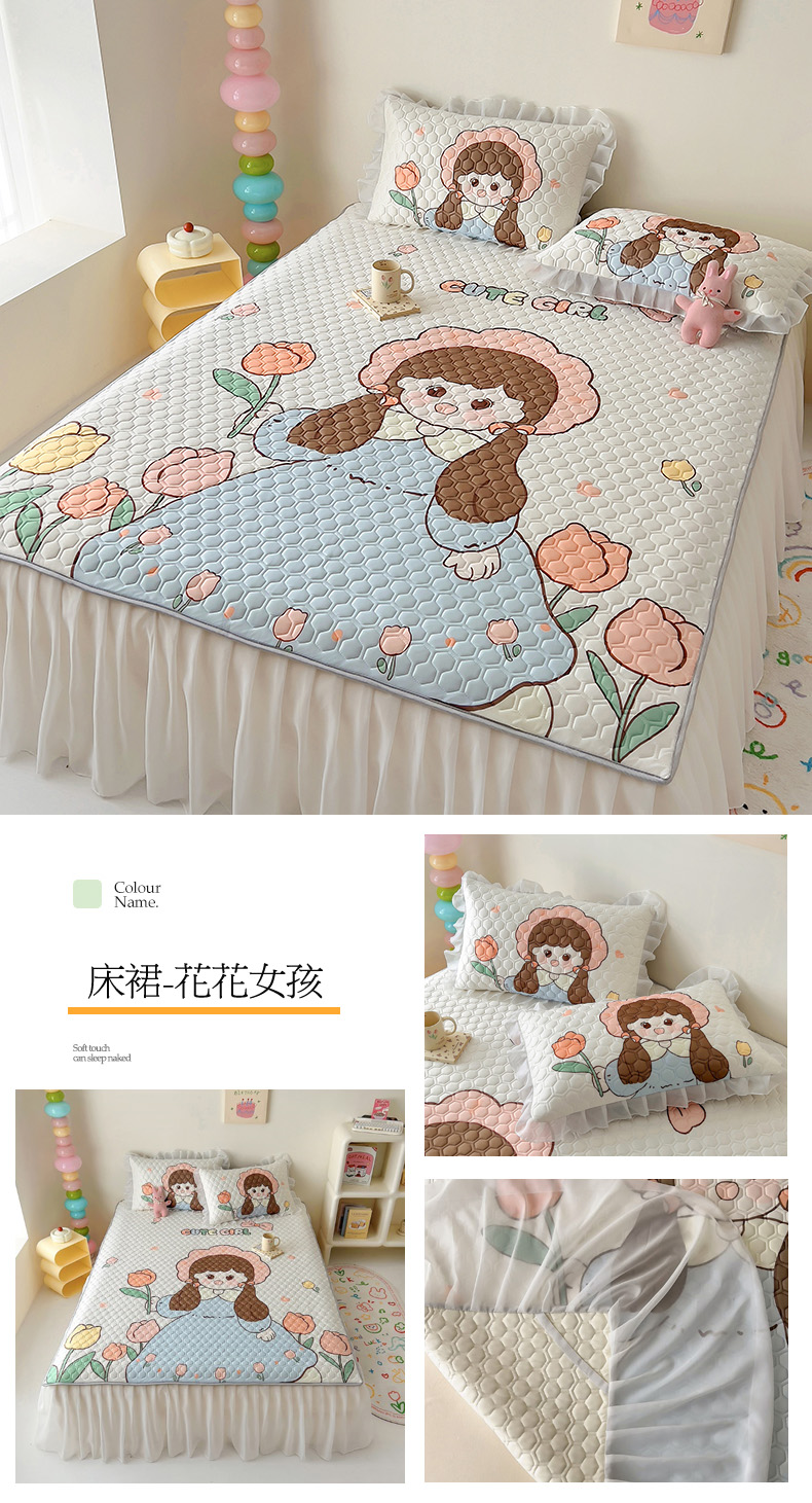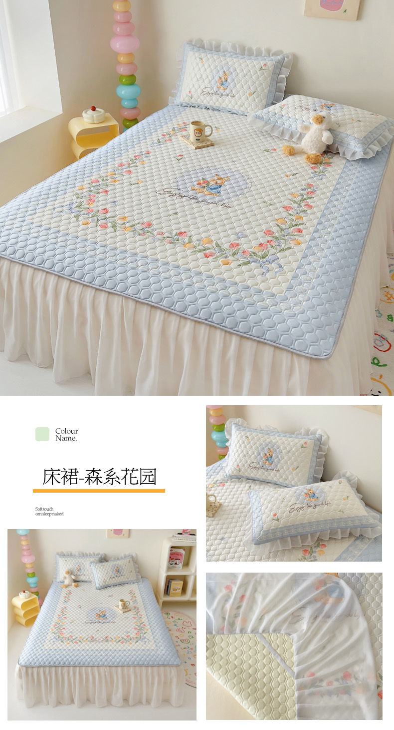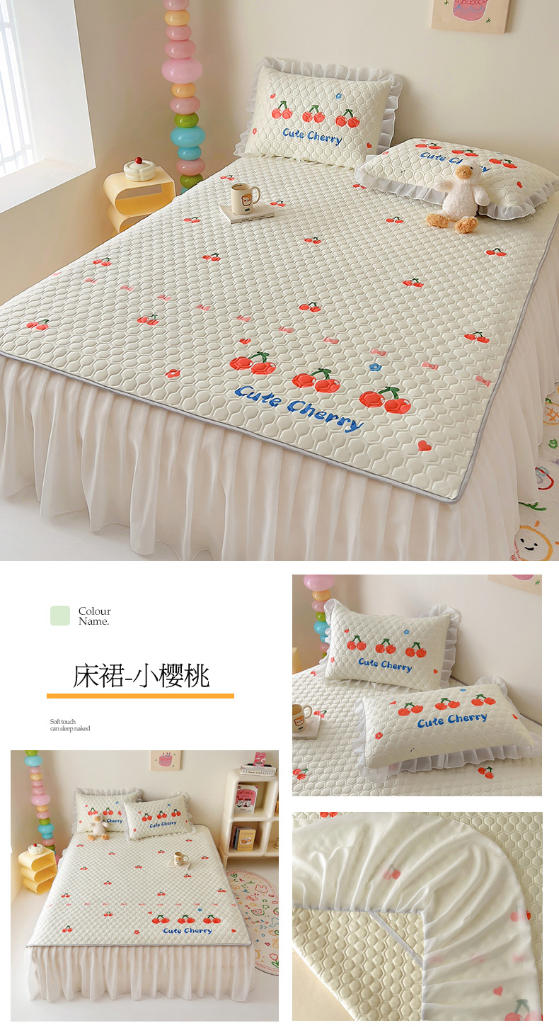 商品名称:(总)柒月家居 2024新款奶油风大版凉感丝床裙款乳胶席
