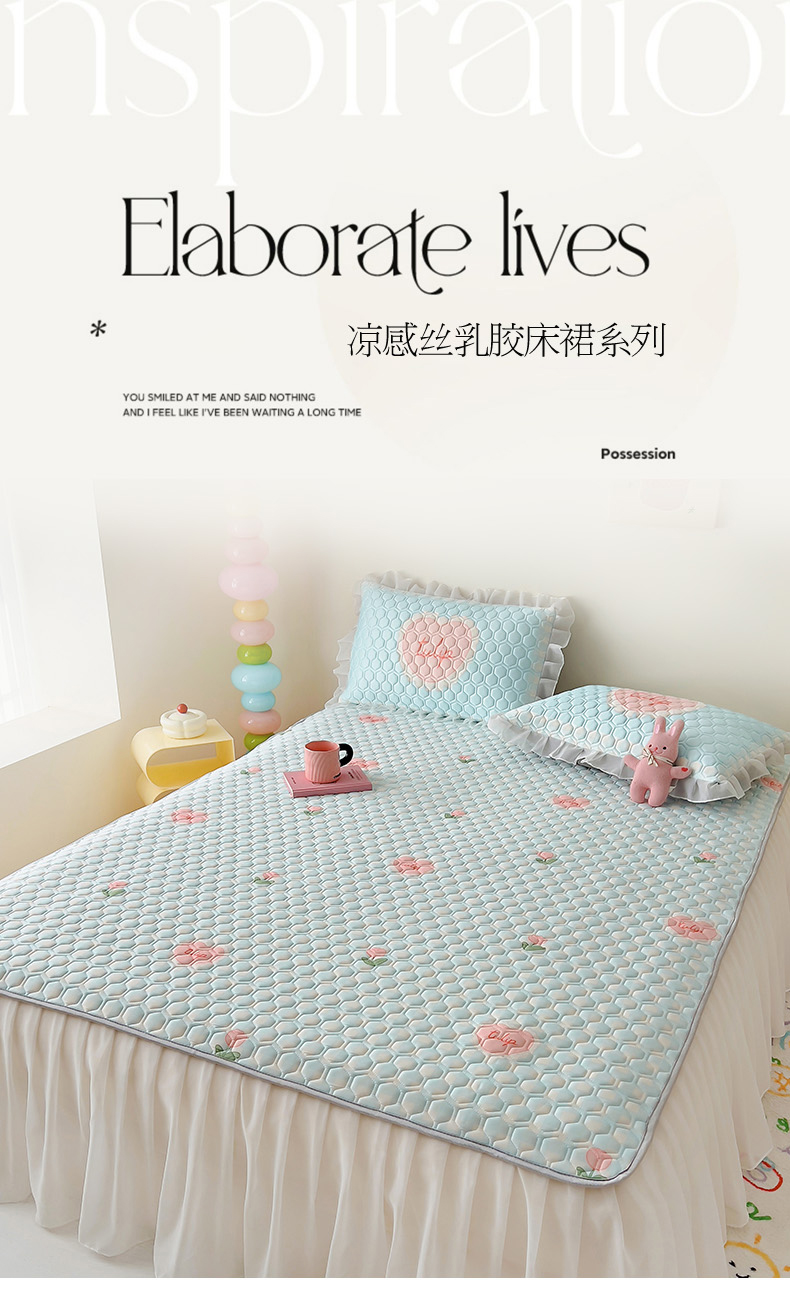 (总)柒月家居 2024新款奶油风大版凉感丝床裙款乳胶席