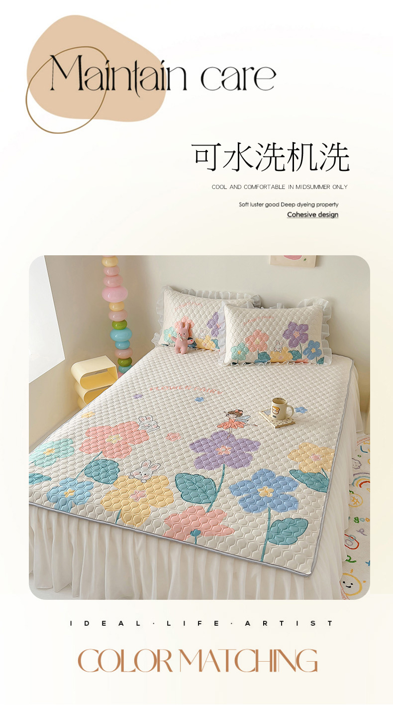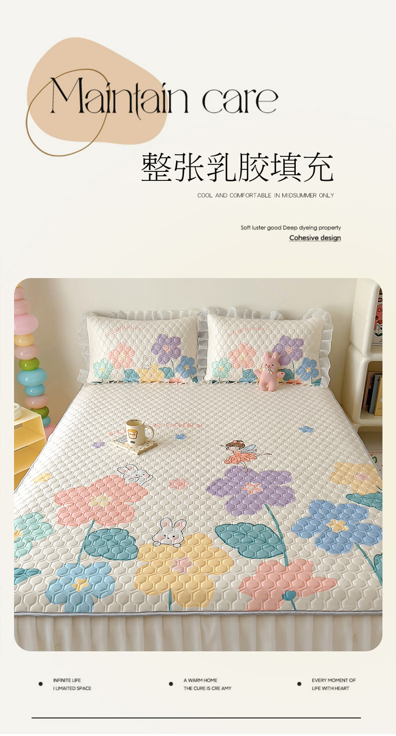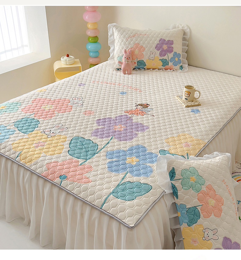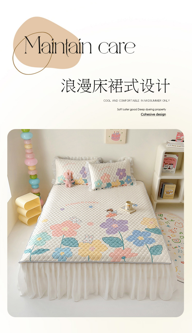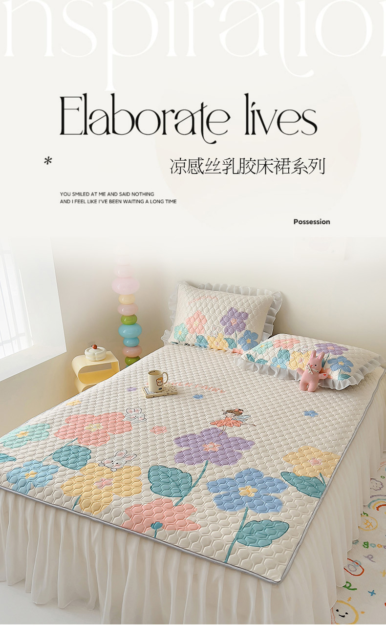 柒月家居 2024新款奶油风大版凉感丝床裙款乳胶席 床裙-花仙子