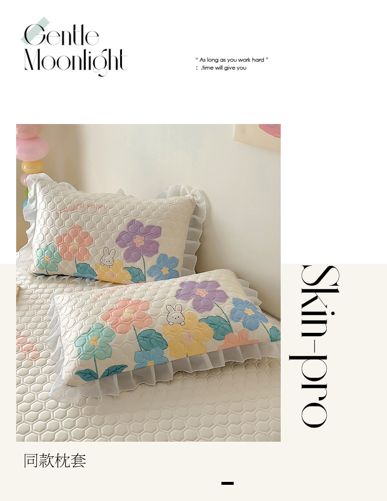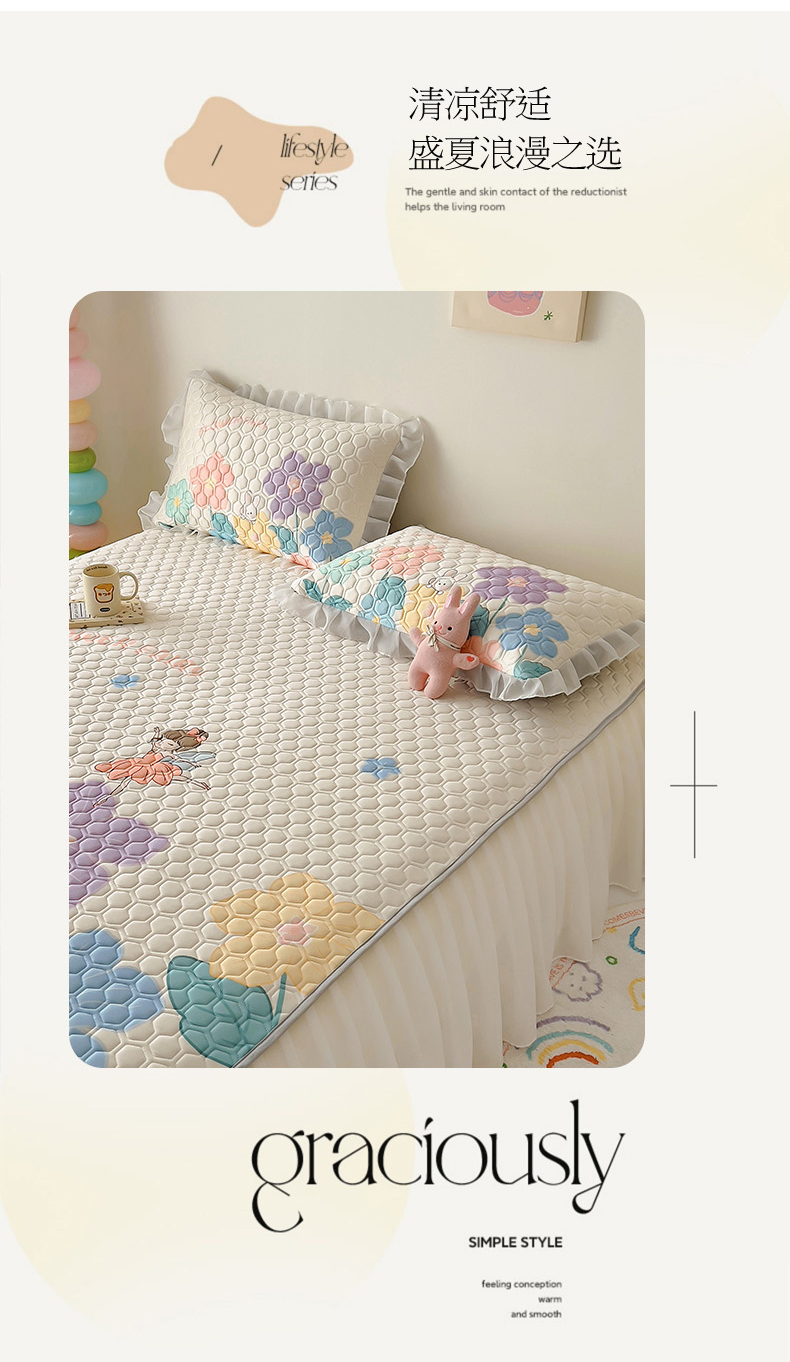 商品名称:柒月家居 2024新款奶油风大版凉感丝床裙款乳胶席 床裙-花仙子