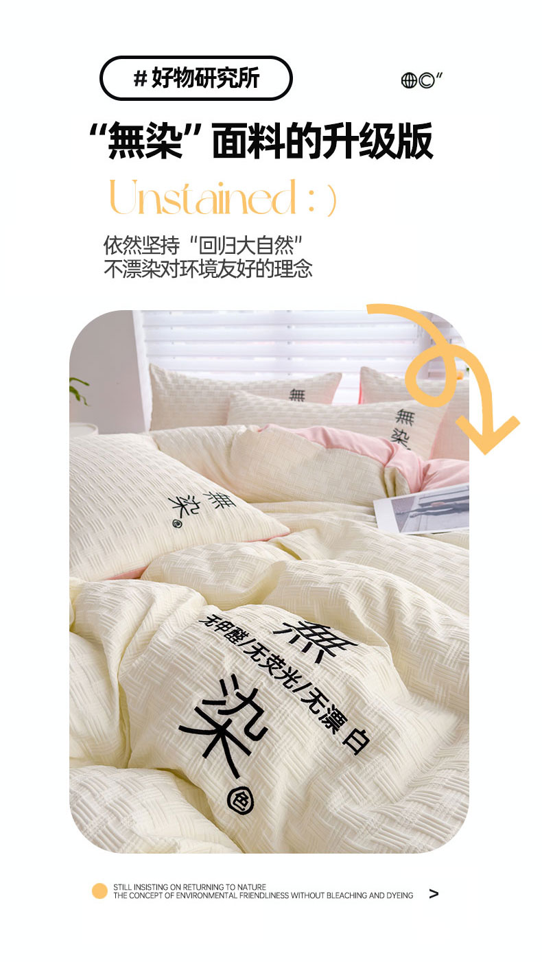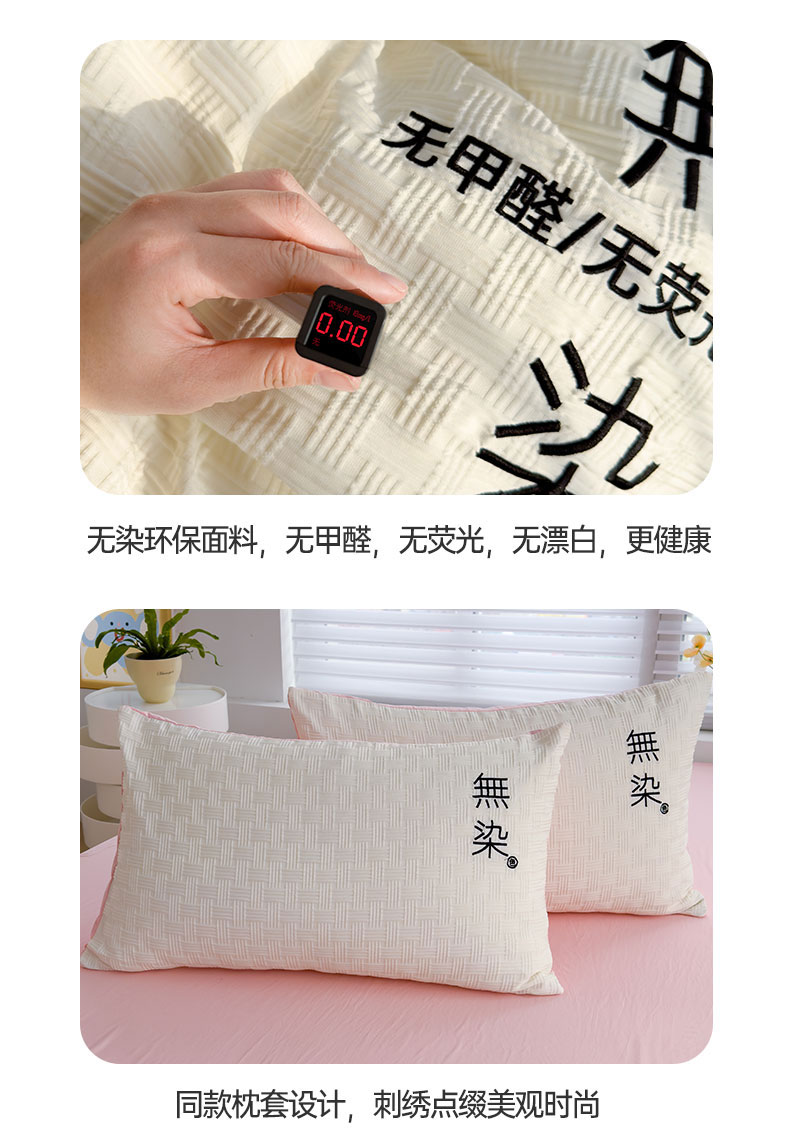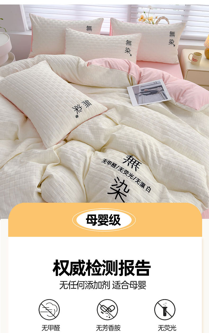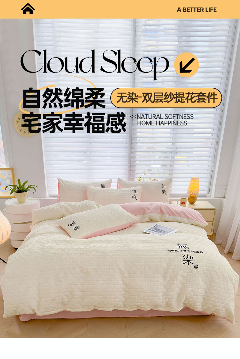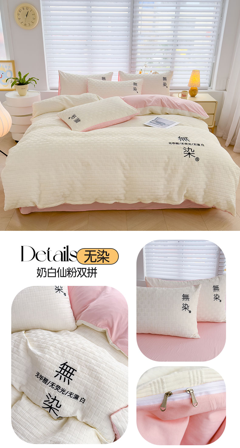 当前位置: 91家纺网 > 商品网购 > 床品套件 > 四件套 > 提花四件套 > 灰鲸 2025新款A类双层纱无染提花四件套 无染-奶白仙粉双拼