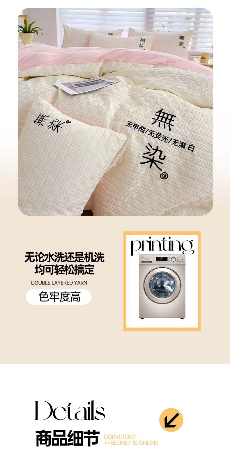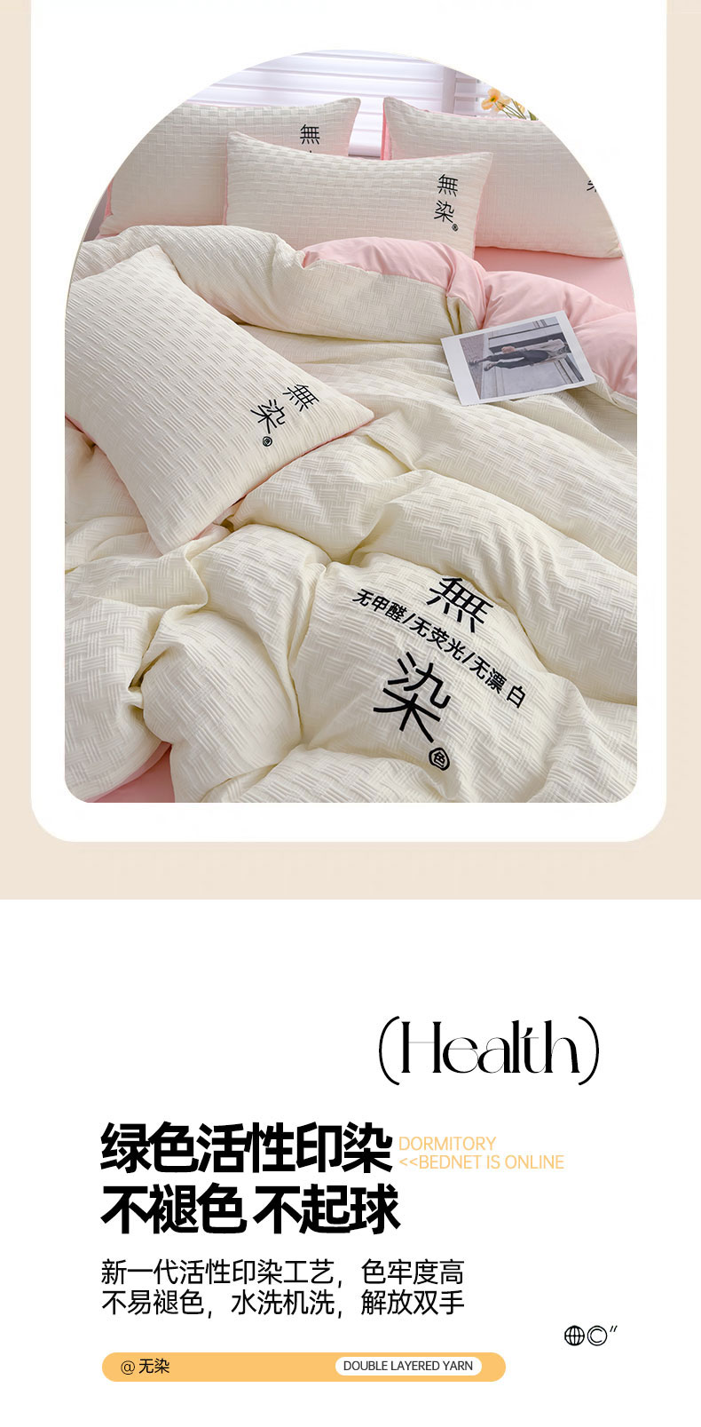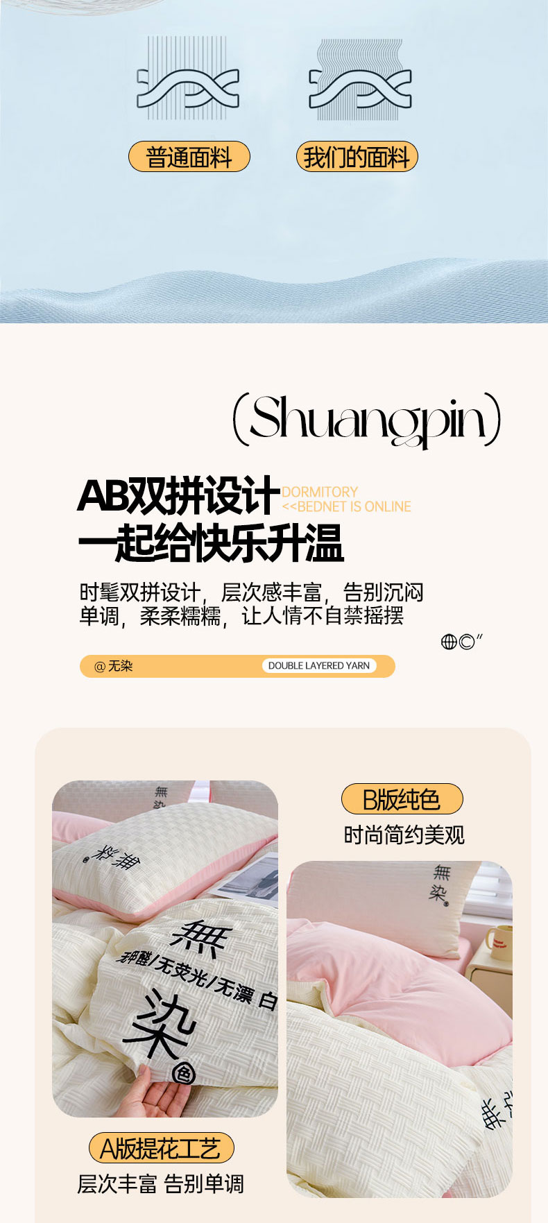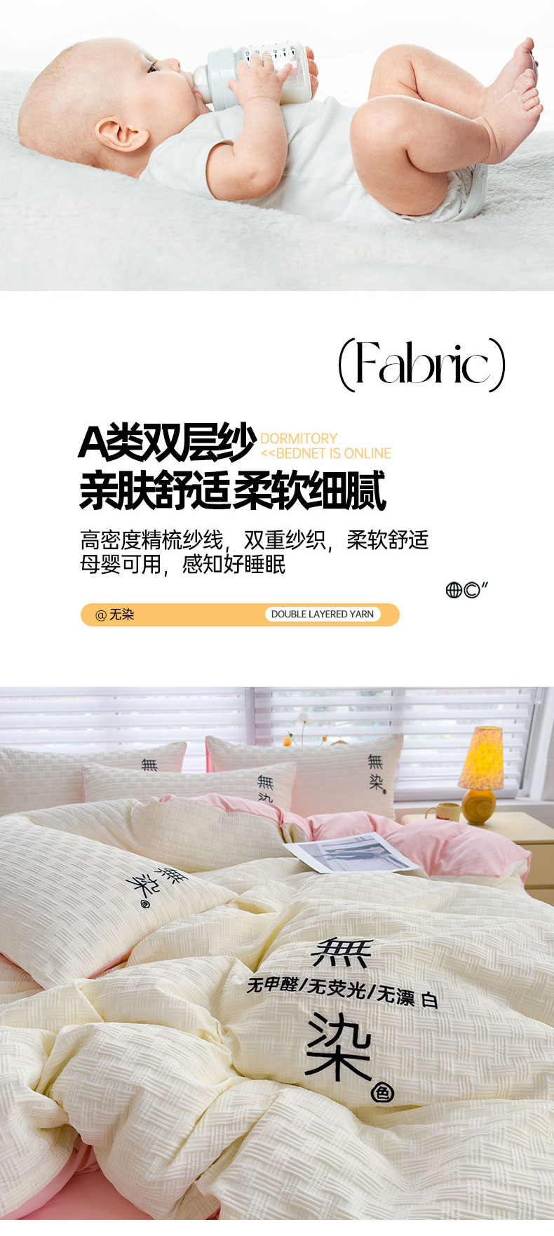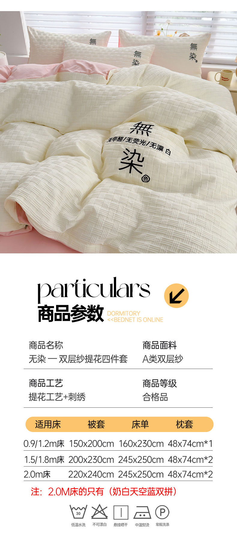 当前位置: 91家纺网 > 商品网购 > 床品套件 > 四件套 > 提花四件套 > 灰鲸 2025新款A类双层纱无染提花四件套 无染-奶白仙粉双拼