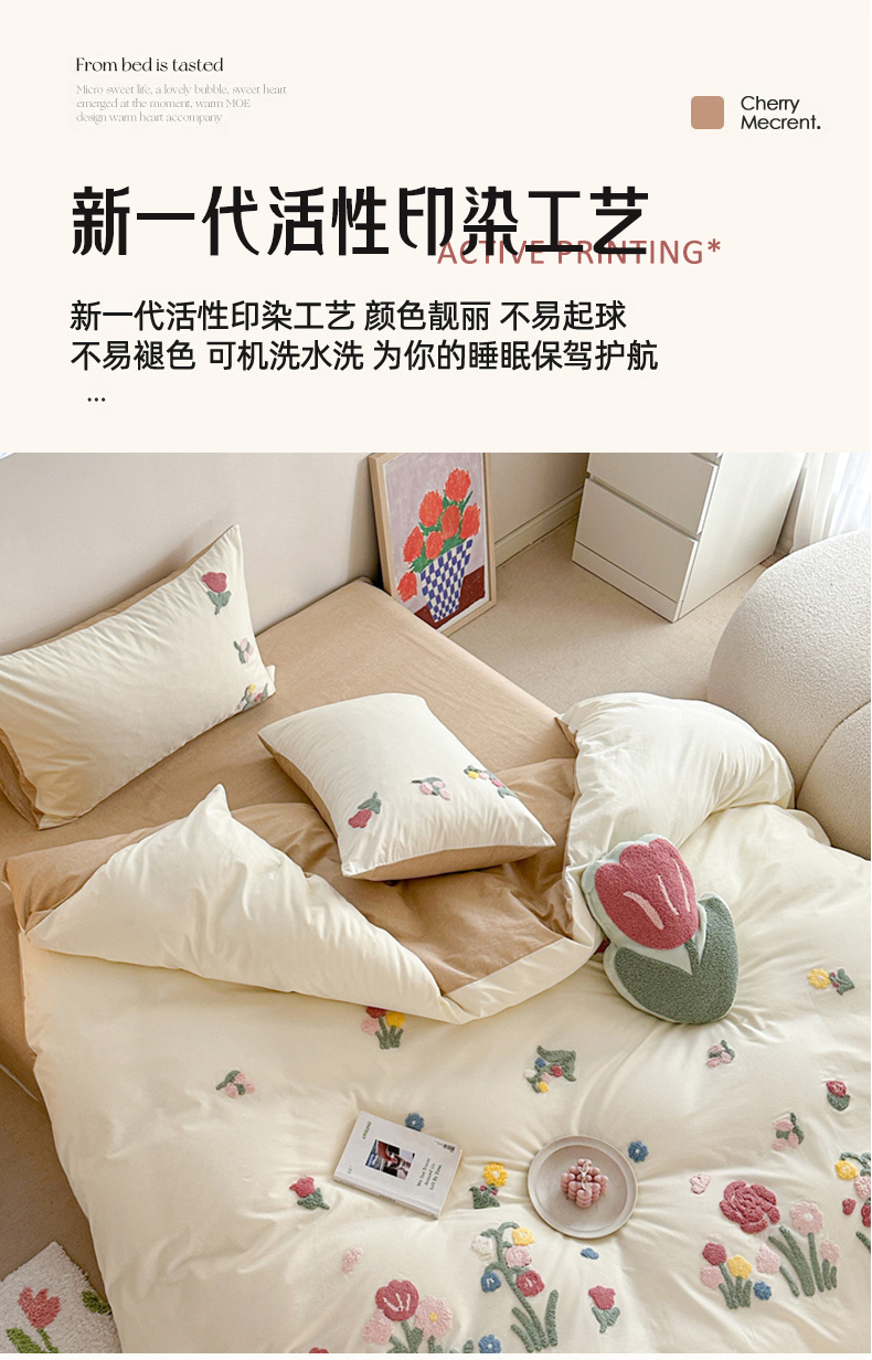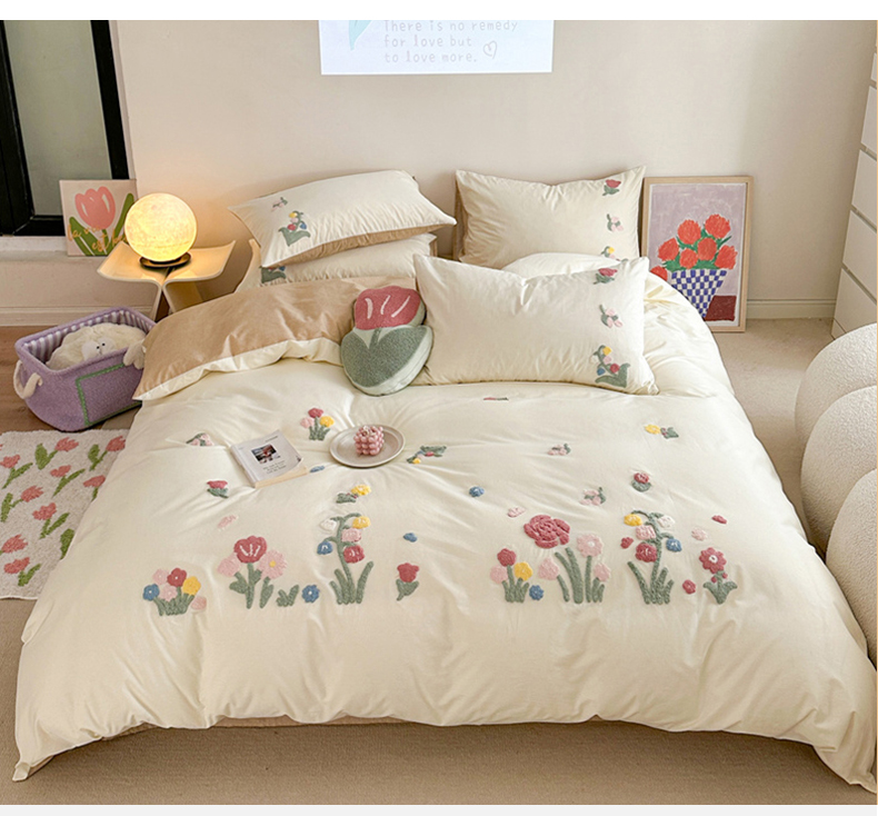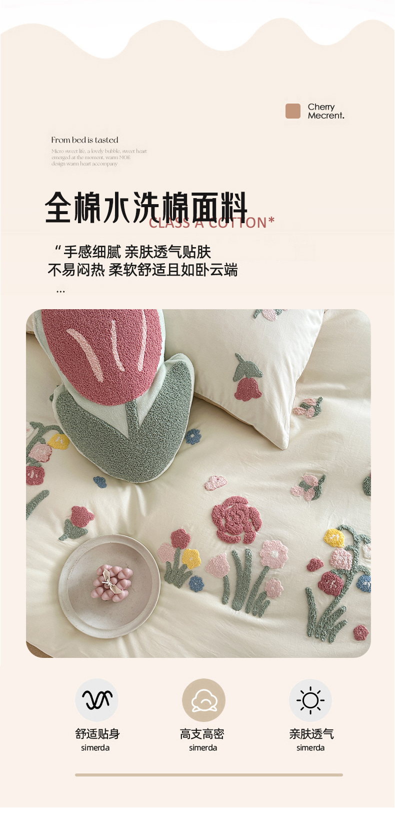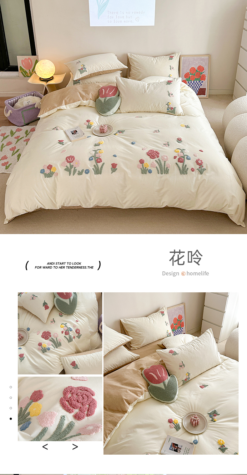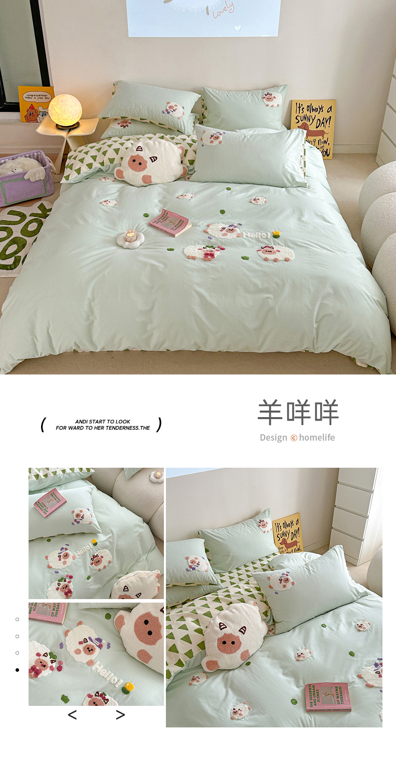(总)眠屿 2022新款绣花水洗棉四件套花之润,花之润-浅粉,花之润-浅绿