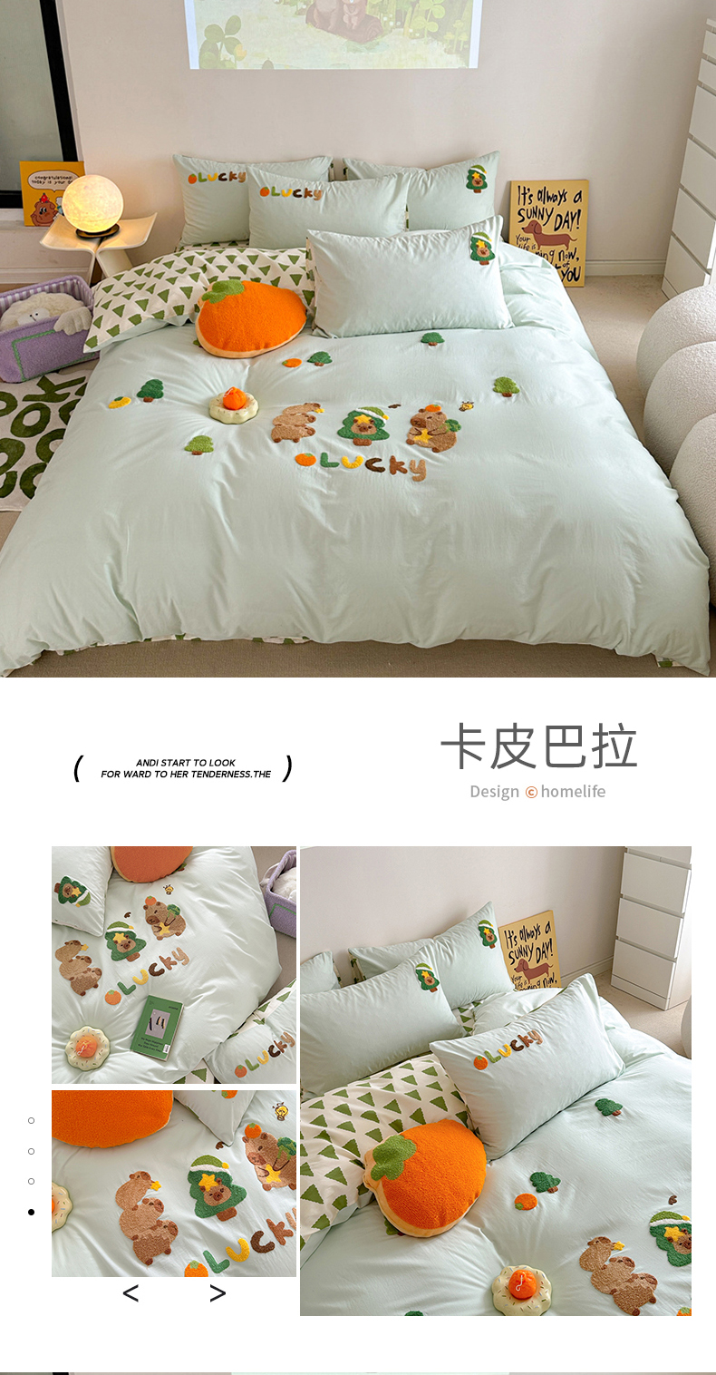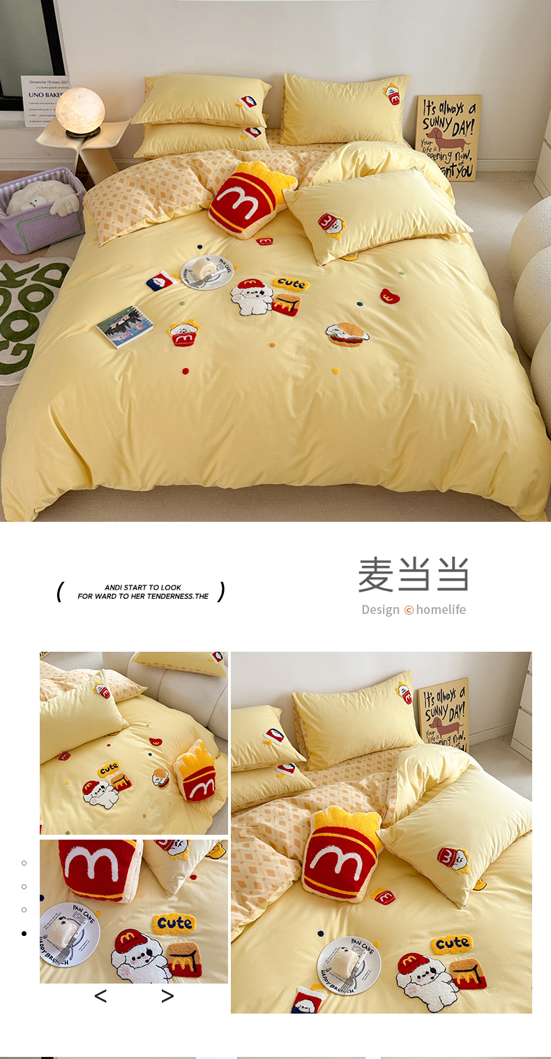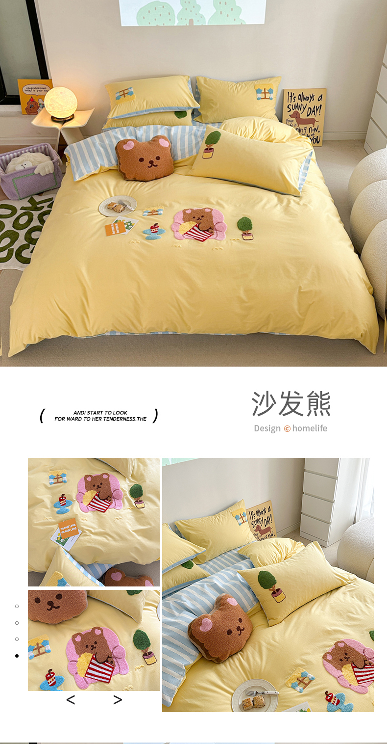 (总)眠屿家纺 2025新款全棉秋冬磨毛贴布绣四件套,爱心猫咪,蛋糕狗狗,可爱玩偶,热量100%