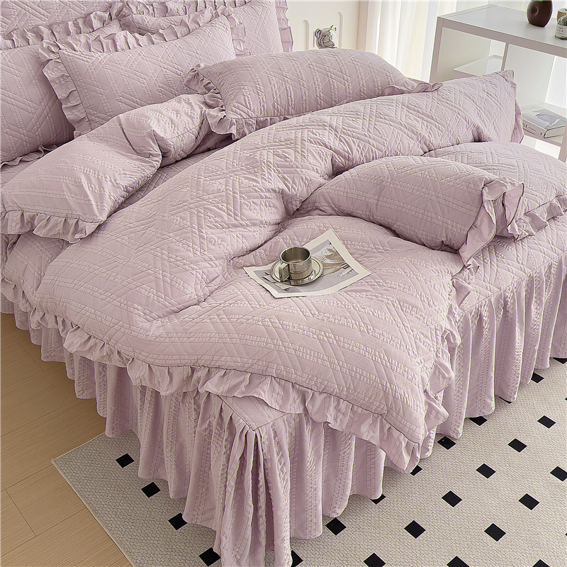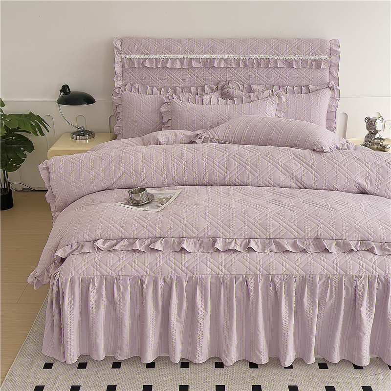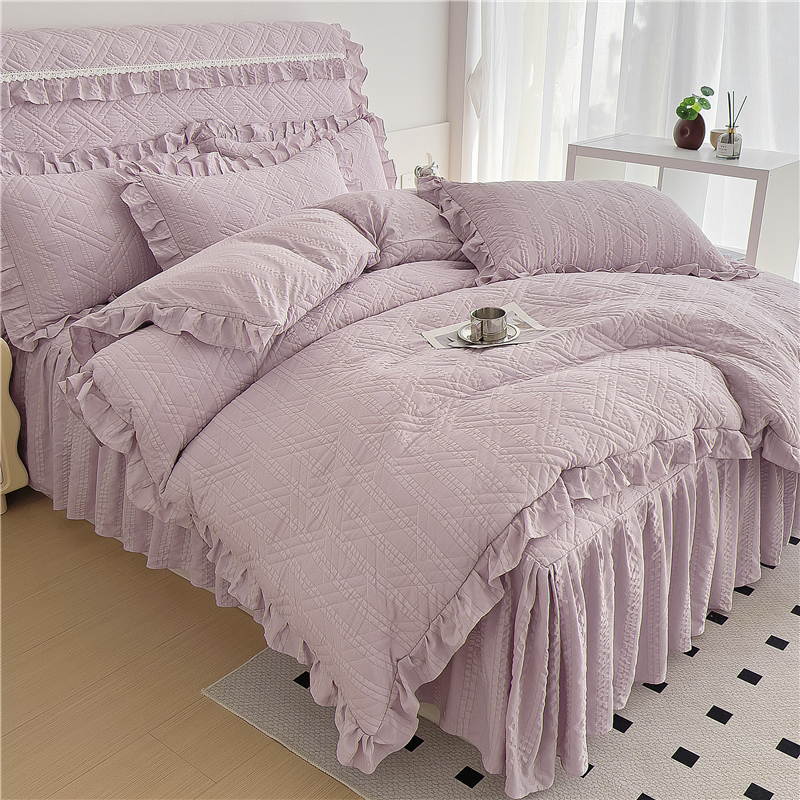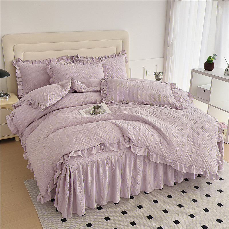 当前位置: 91家纺网 > 商品网购 > 床品套件 > 四件套 > 水洗棉四件套 > 十个点 2024新款亲肤水洗泡泡棉夹棉绗缝床裙款单品及套件 豆沙