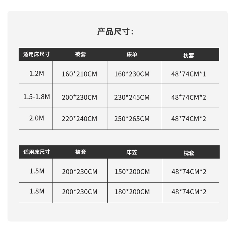 1.8m床笠款四件套(被套200*230) | ¥98.00 |