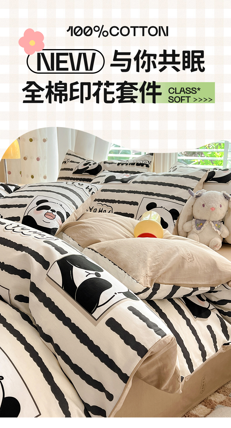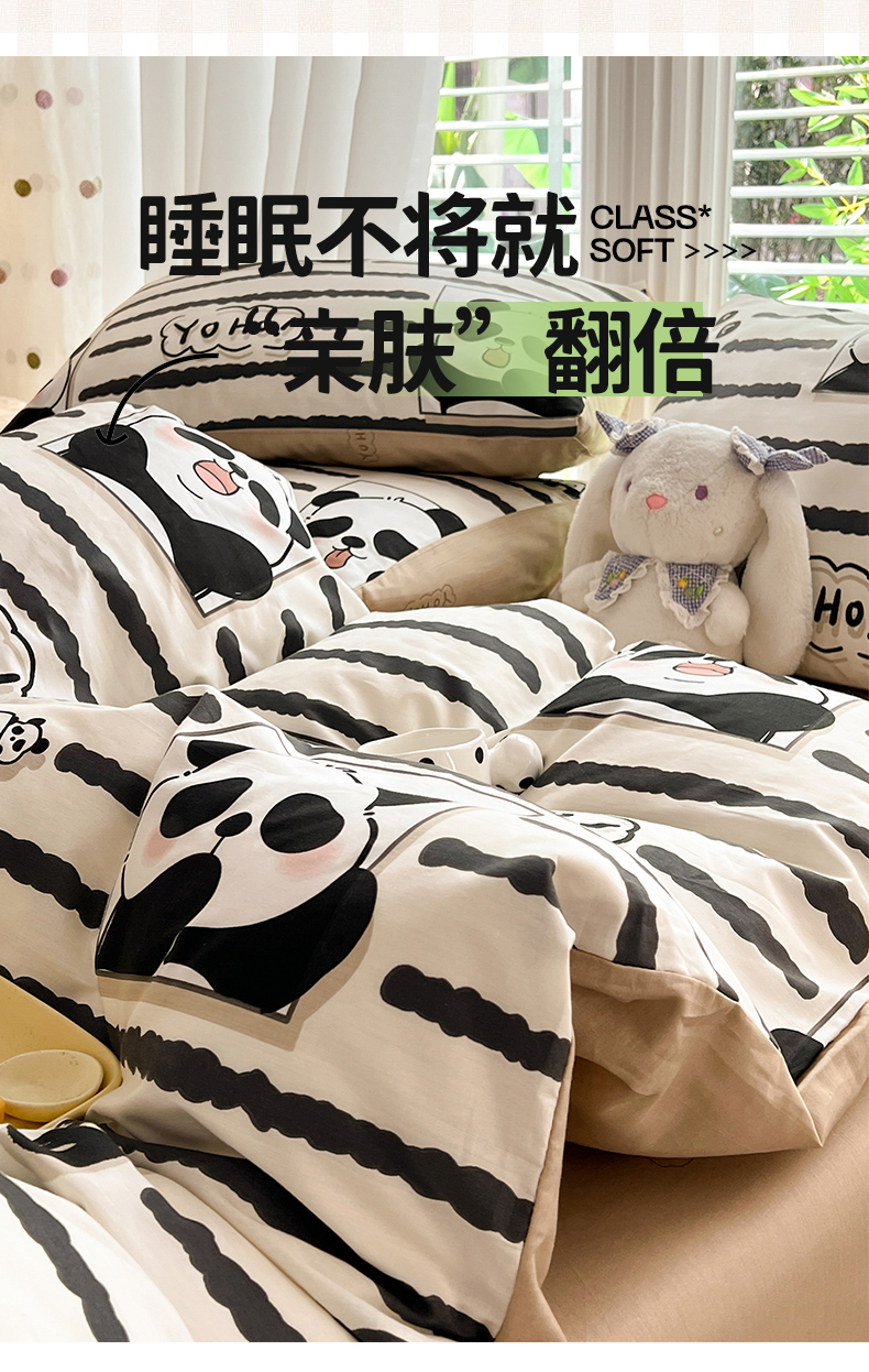 当前位置: 91家纺网 > 商品网购 > 床品套件 > 四件套 > 全棉普通四件套 > 多品家纺 2024年直播爆款12868全棉四件套 横条熊猫