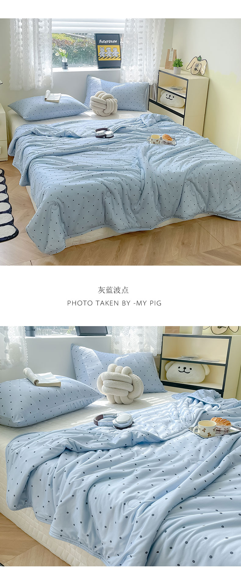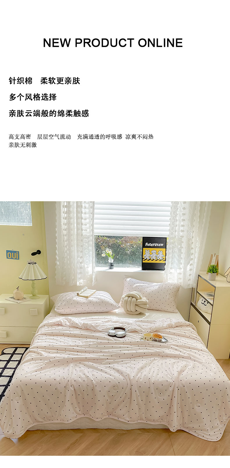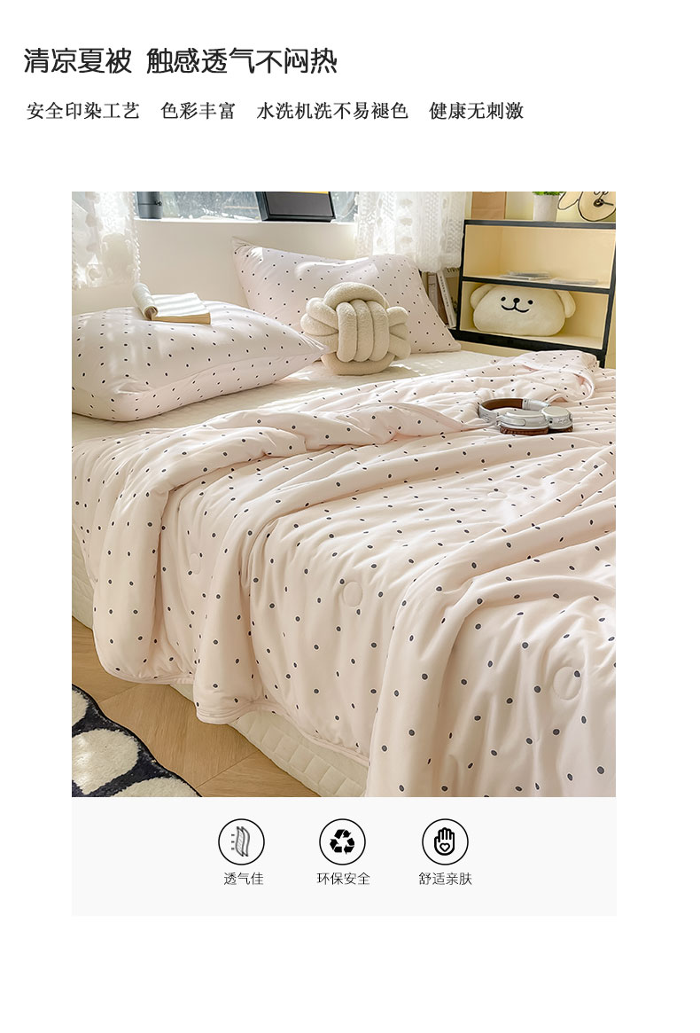 Mr.pig猪先生水洗棉 2024新款5A抗菌针织棉印花夏被 杏仁白波点