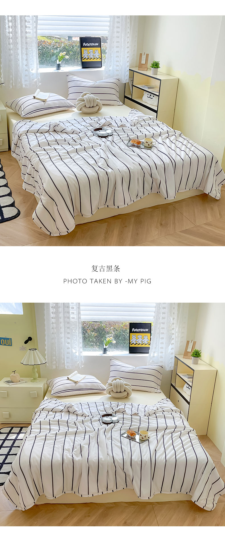 (总)Mr.pig猪先生水洗棉 2024新款5A抗菌针织棉印花夏被,复古黑条,黑条双拼,黄条,灰蓝波点,绿咖条,五彩波点,杏仁白波点