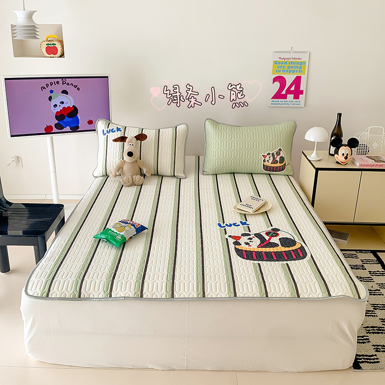 商品名称:顾里家纺 顾里家纺 2024新款凉感丝数码印花INS风大版凉席三件套 绿条小熊
