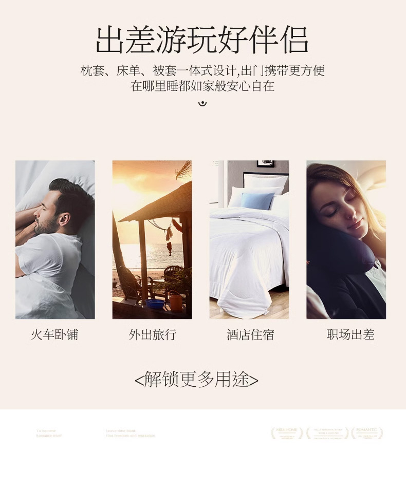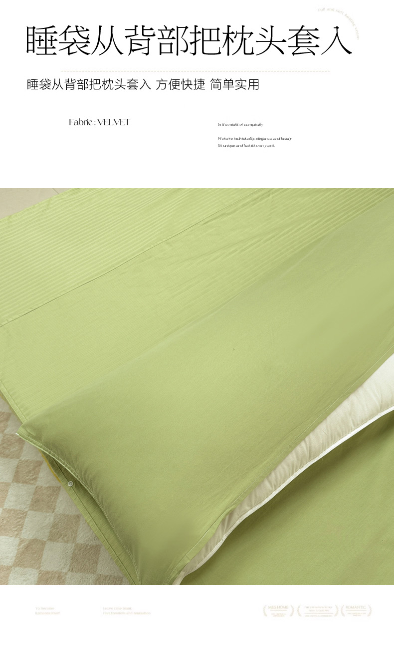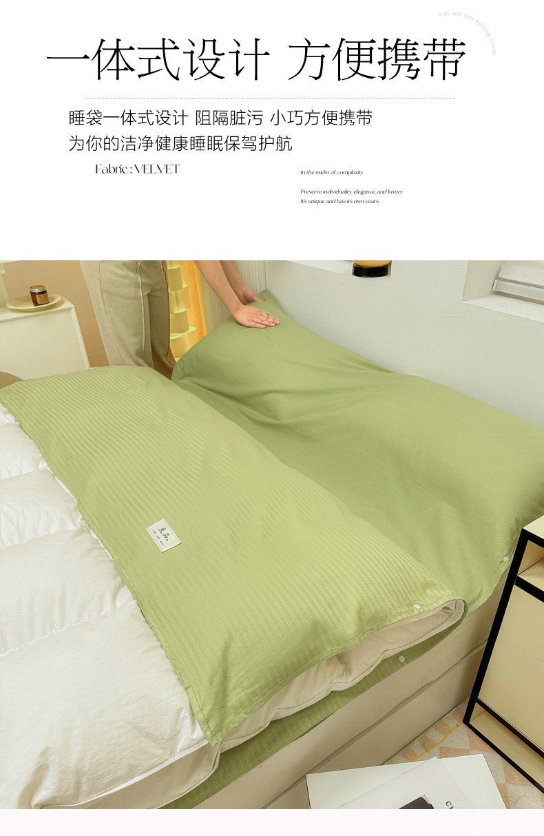 商品名称:眠博士 2024新款60贡缎提花 旅行睡袋场景一暖光 睡袋-提花豆绿