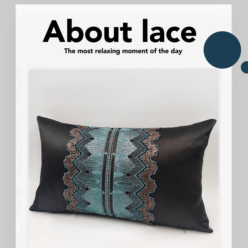 澜屿 24款高精密蕾丝款花边小抱枕头枕芯腰靠枕 黑色