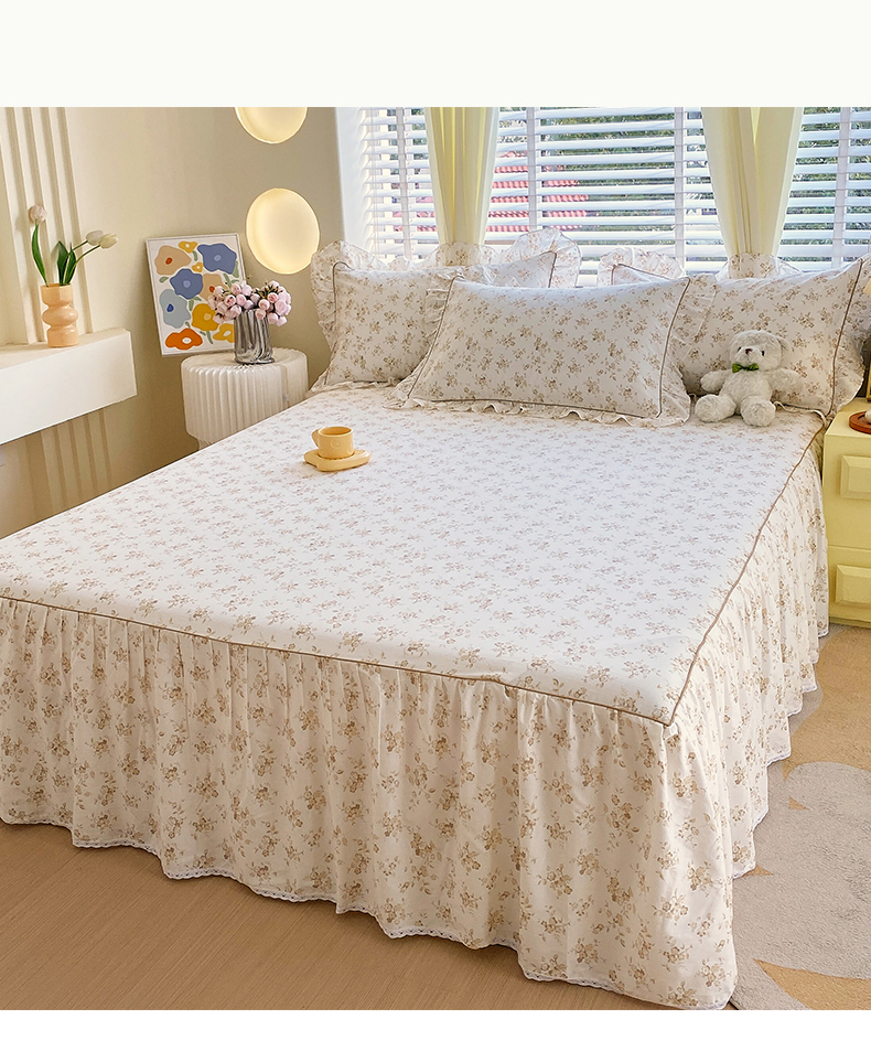 • 91家纺网 家纺一手货源 找家纺 宝齐莱2024新款全棉13372韩版印花四件套单品系列-单床裙 莫妮卡-咖