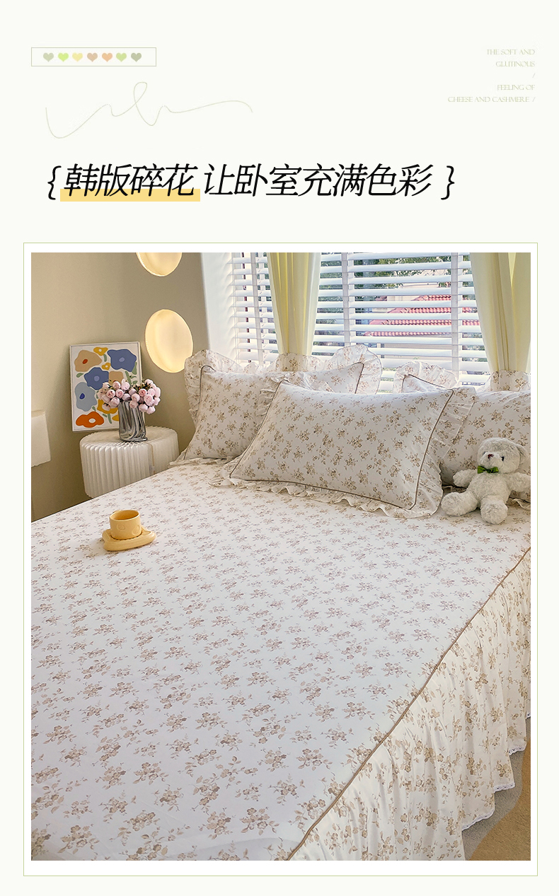 当前位置: 91家纺网 > 商品网购 > 床上用品 > 床裙 > 宝齐莱2024新款全棉13372韩版印花四件套单品系列-单床裙 莫妮卡-咖