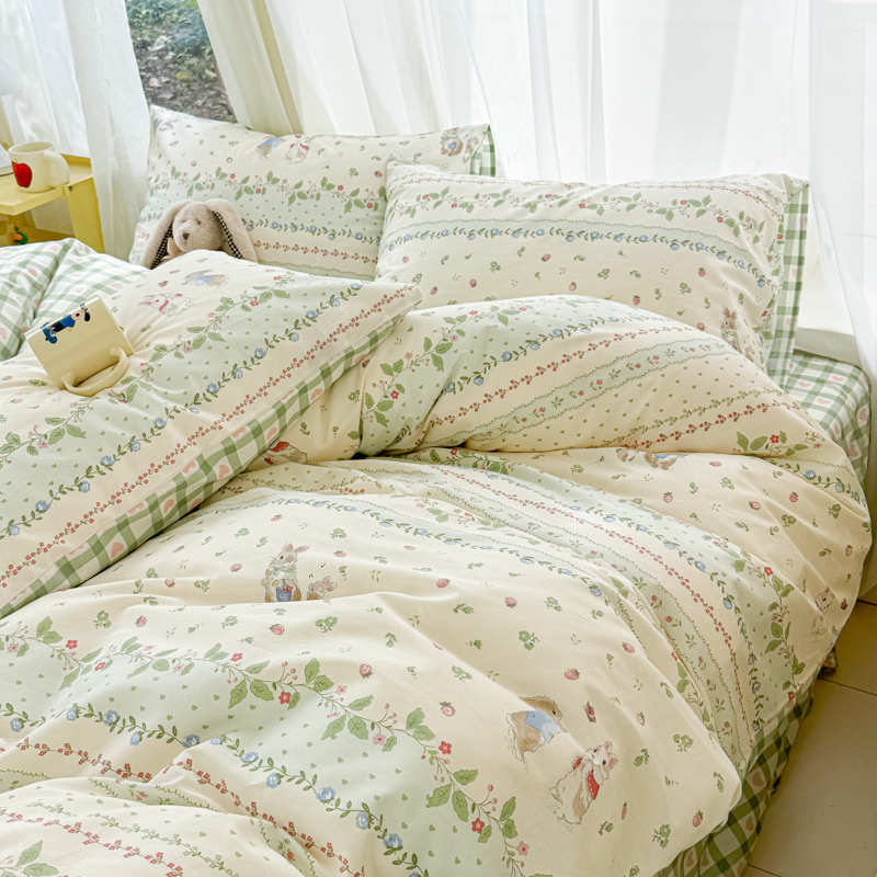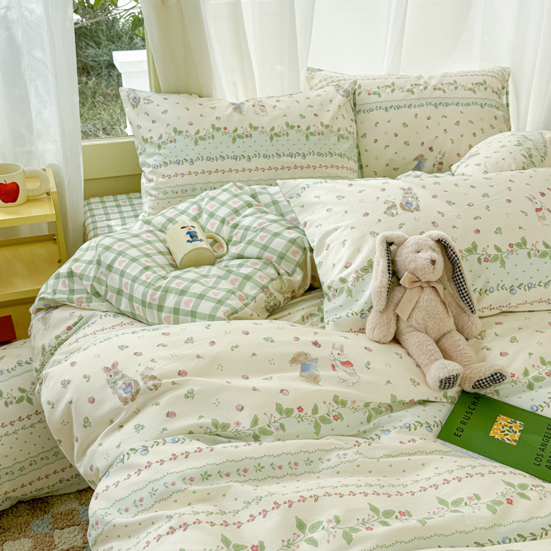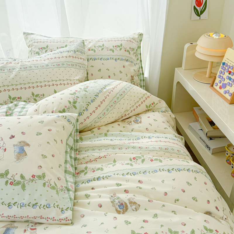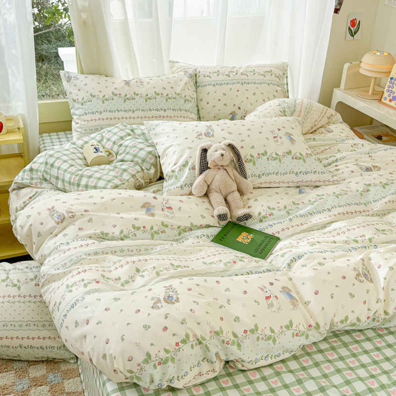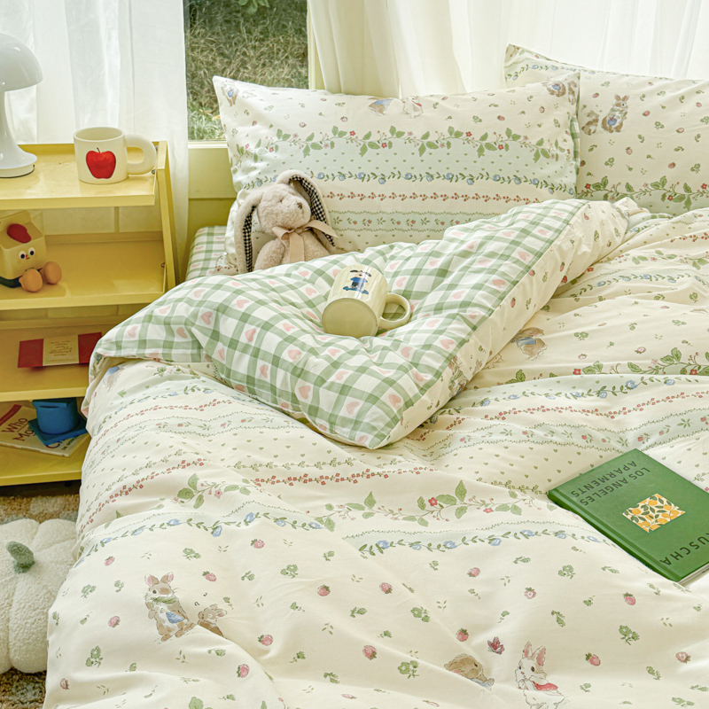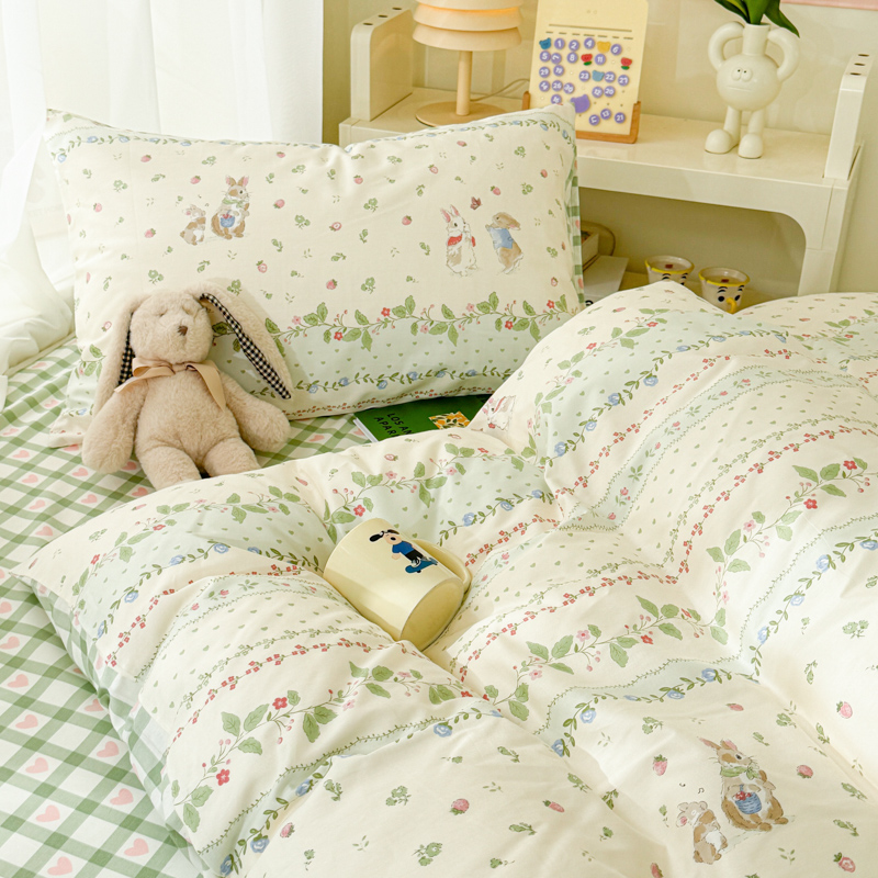 商品名称:呗旺鹿 2024新款小清新13372全棉四件套纯棉四件套学生三件套 草莓兔