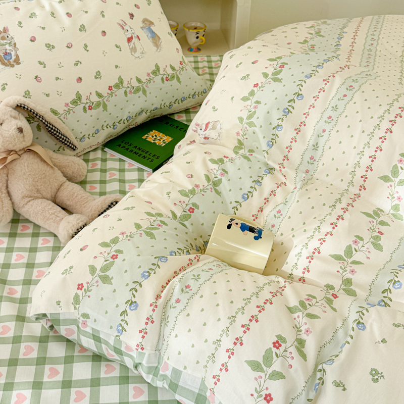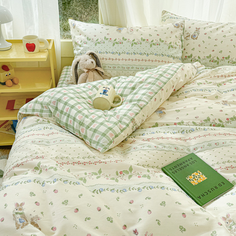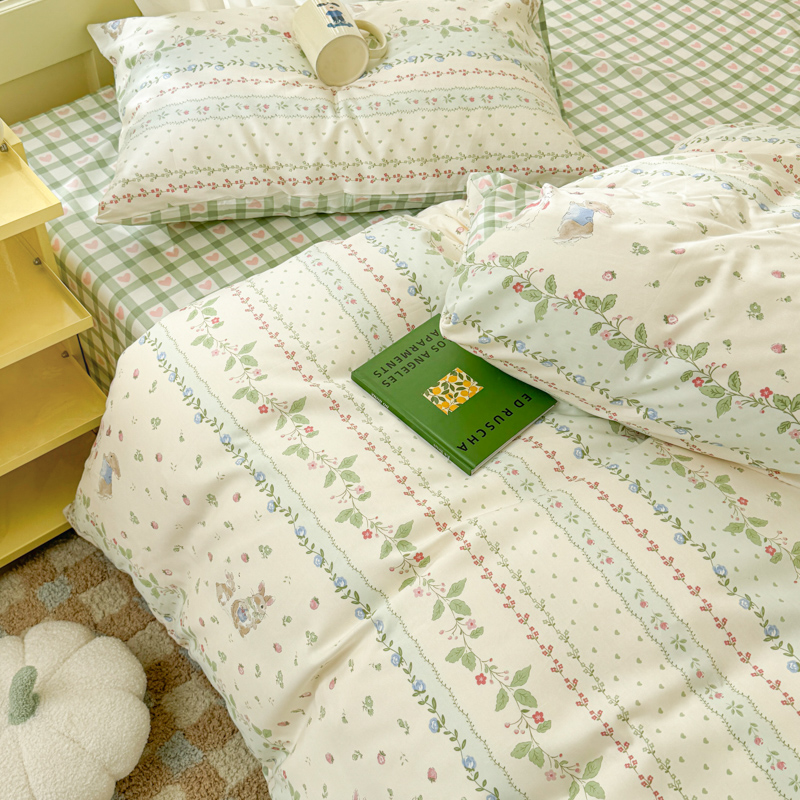 呗旺鹿 2024新款小清新13372全棉四件套纯棉四件套学生三件套 草莓兔
