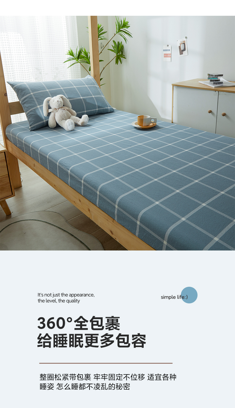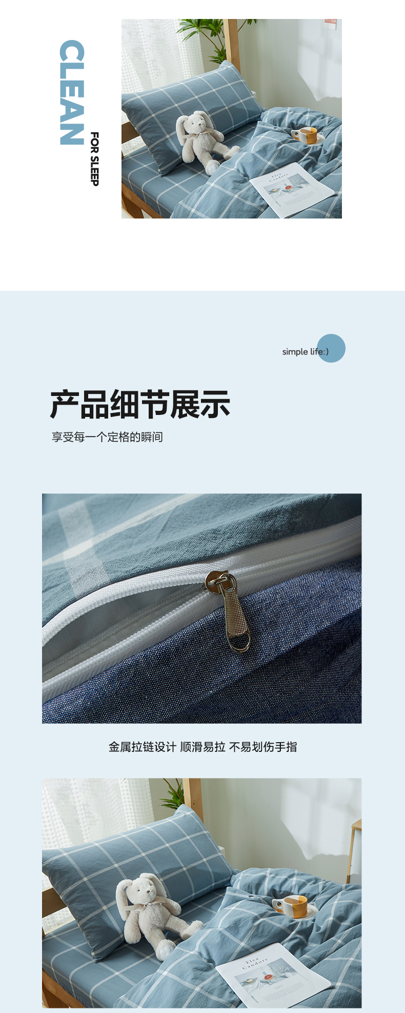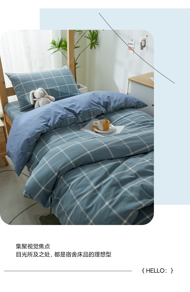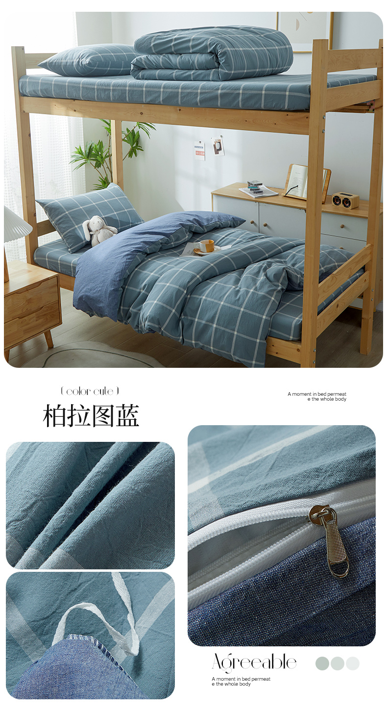九沐良品 新款A类全棉水洗棉宿舍三件套 柏拉图蓝