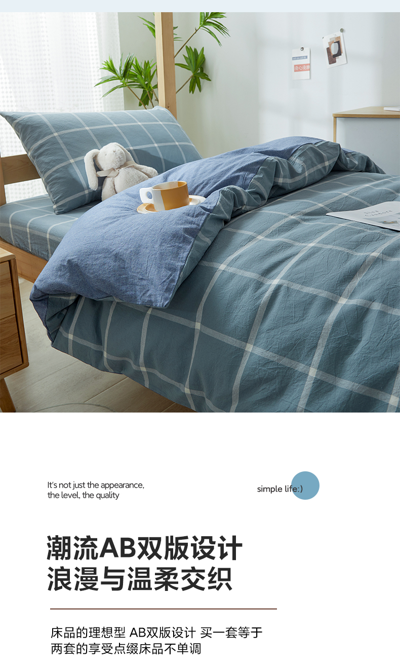 商品名称:九沐良品 新款A类全棉水洗棉宿舍三件套 柏拉图蓝