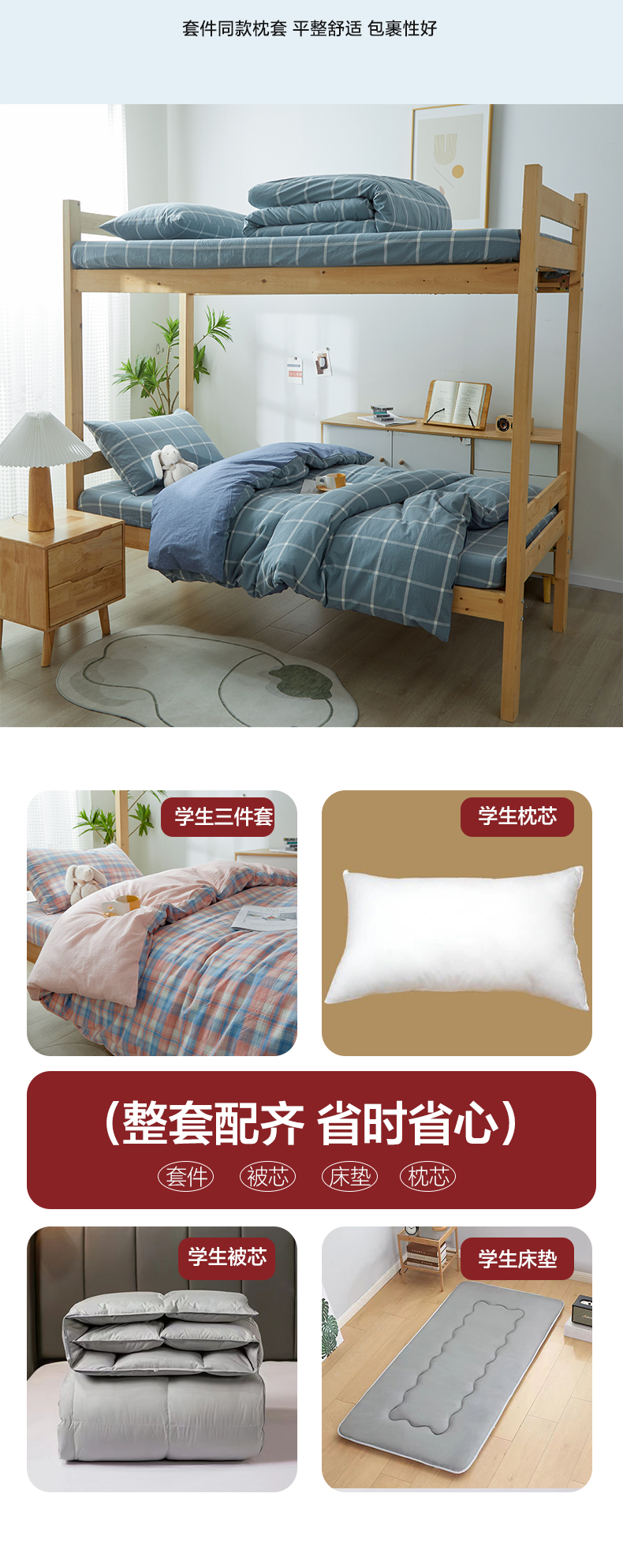(总)九沐良品 2025新款亲肤舒适学生宿舍上下铺三件套六件套大礼包宿舍三件套上下铺三件套,柏拉图兰,粉大格,粉小格,蓝大格,莫妮卡粉,莫妮卡兰,浅蓝小格