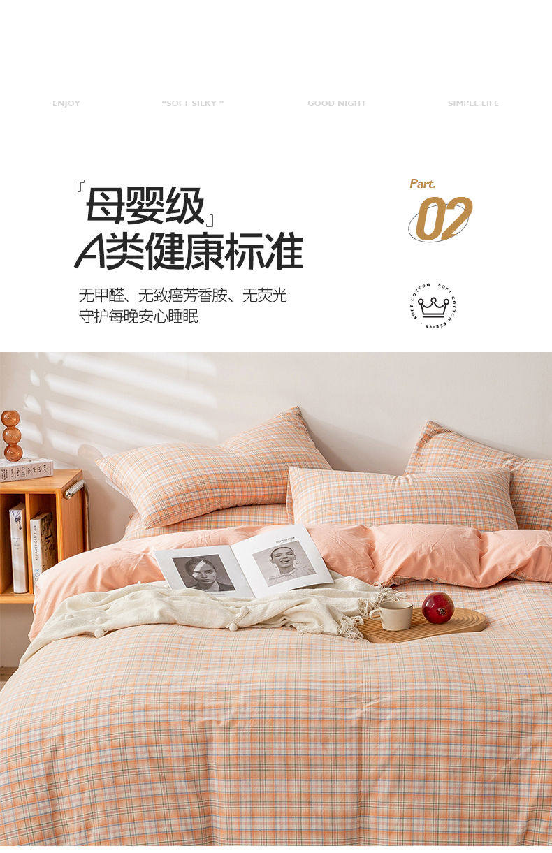 当前位置: 91家纺网 > 商品网购 > 床品套件 > 四件套 > 水洗棉四件套 > 九沐良品 新款A类色织水洗棉四件套 凯利桔