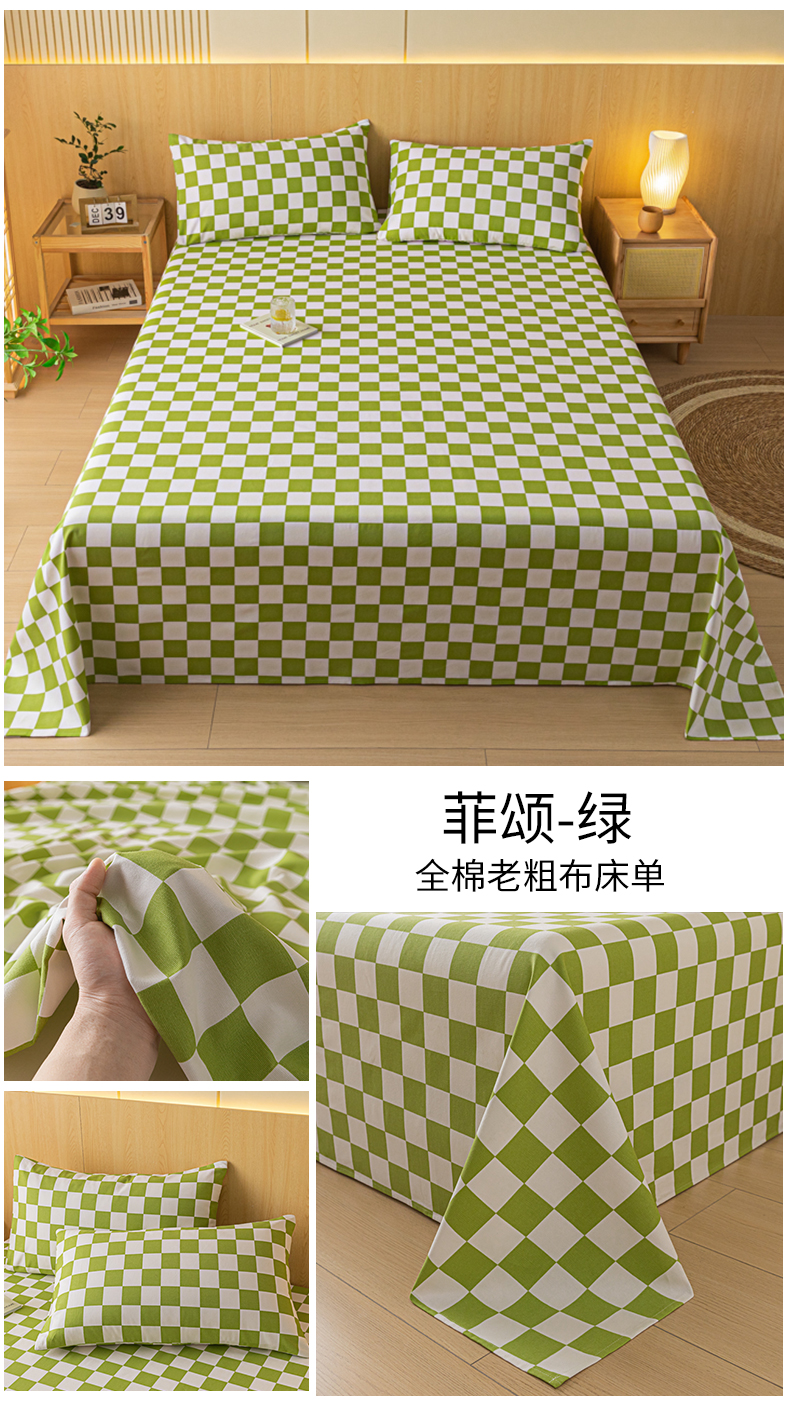 商品名称:鑫钰 2024新款全棉老粗布床单 菲颂-绿
