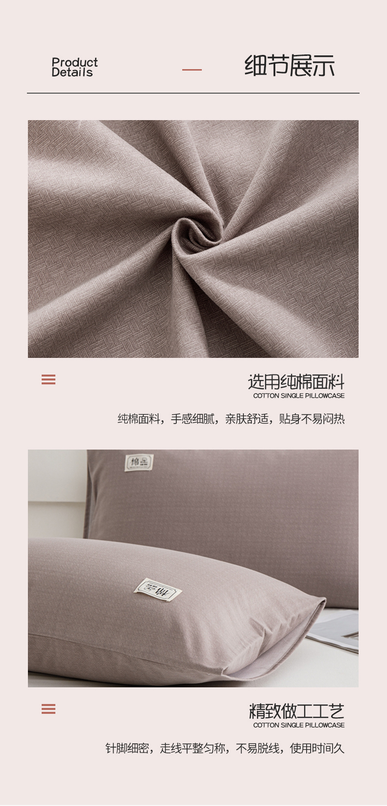 商品名称:宝时兰 2024新款纯色单枕套全棉加厚生态喷气磨毛纯棉口袋枕套 纯色-卡其