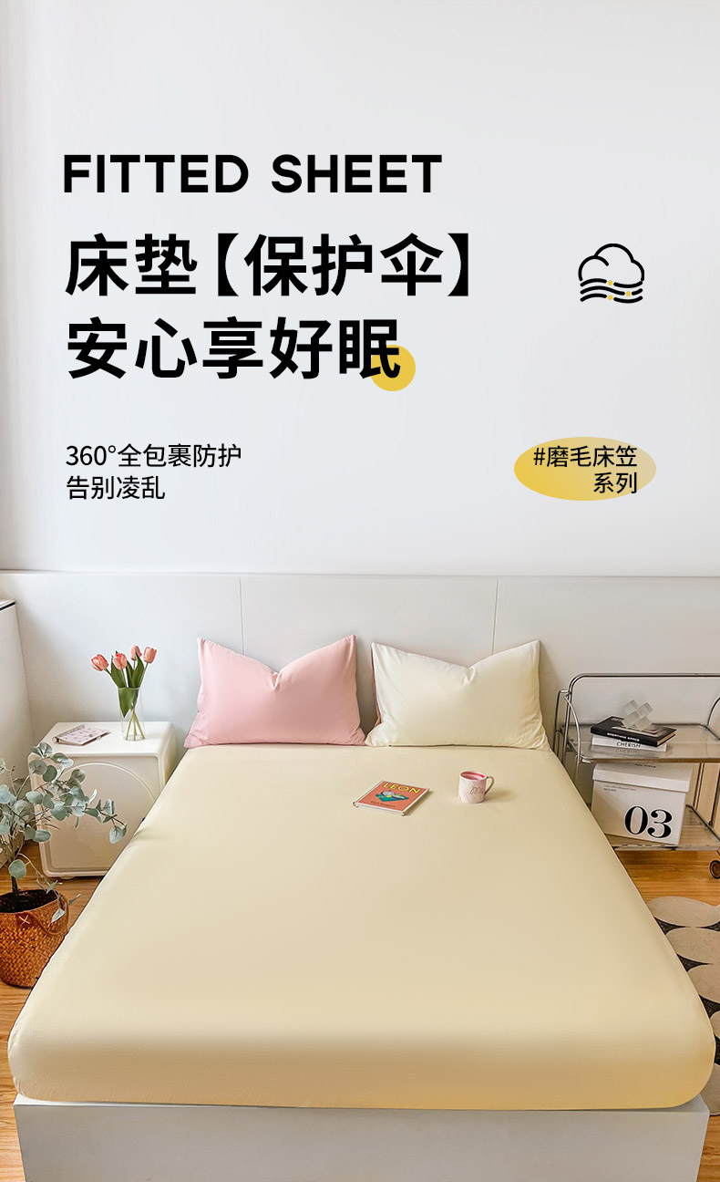(总)米粒家纺 2024新款纯色磨毛床笠,巴黎绿,大麦灰,粉雨,咖,奶白,奶咖,蔷薇,晴空,天蓝,甜曲奇,岩石灰,紫雾