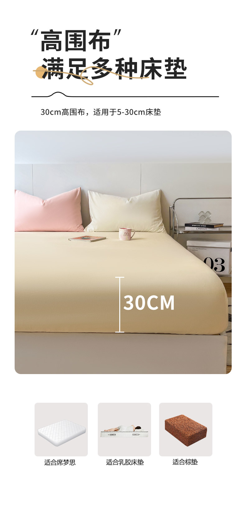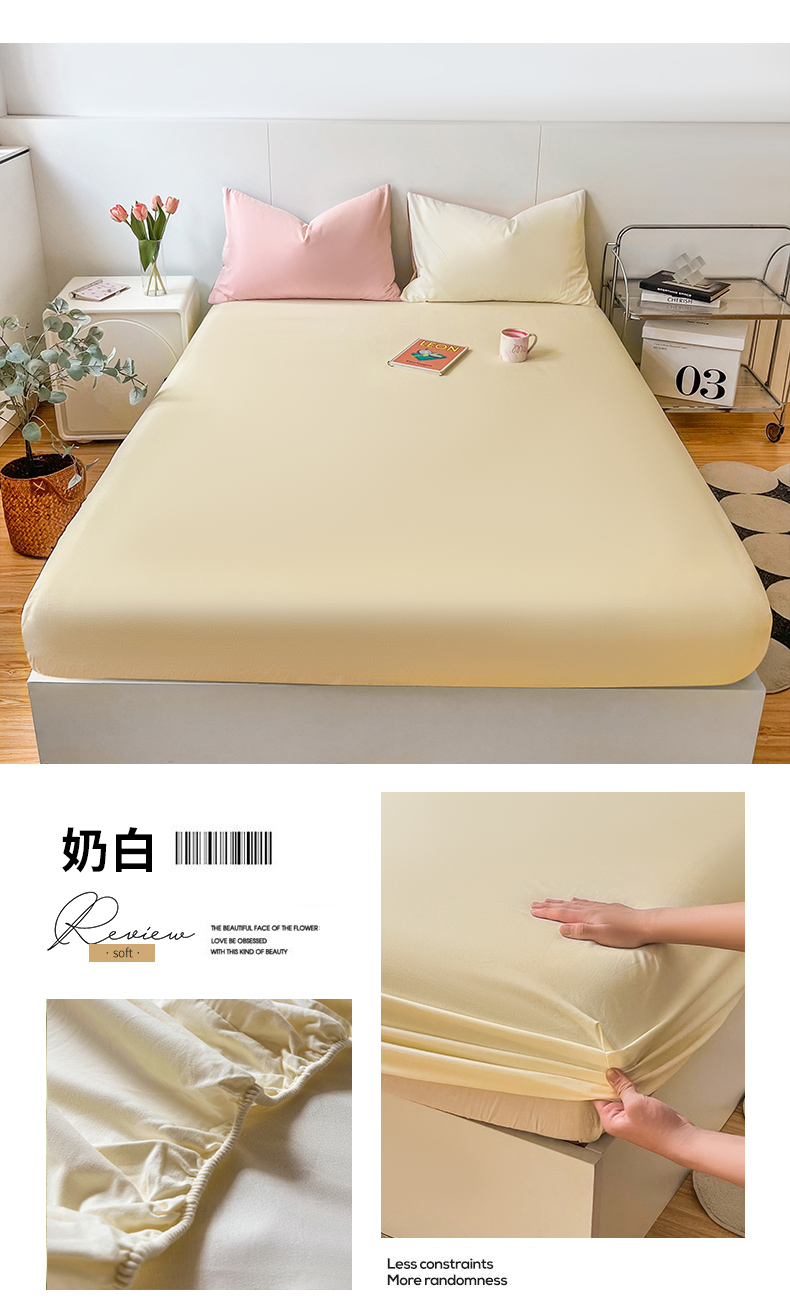 商品名称:米粒家纺 2024新款纯色磨毛床笠 奶白