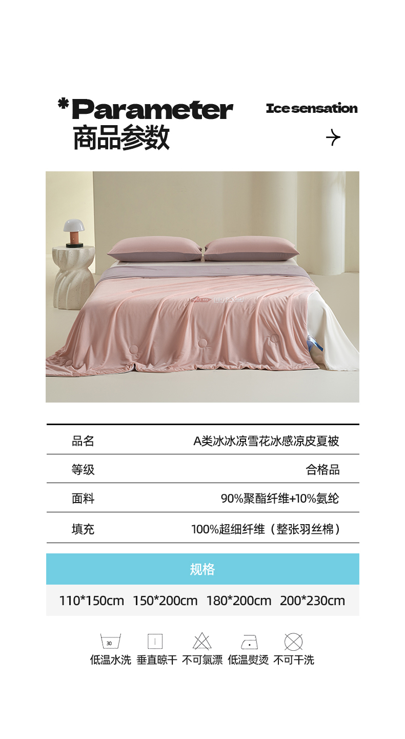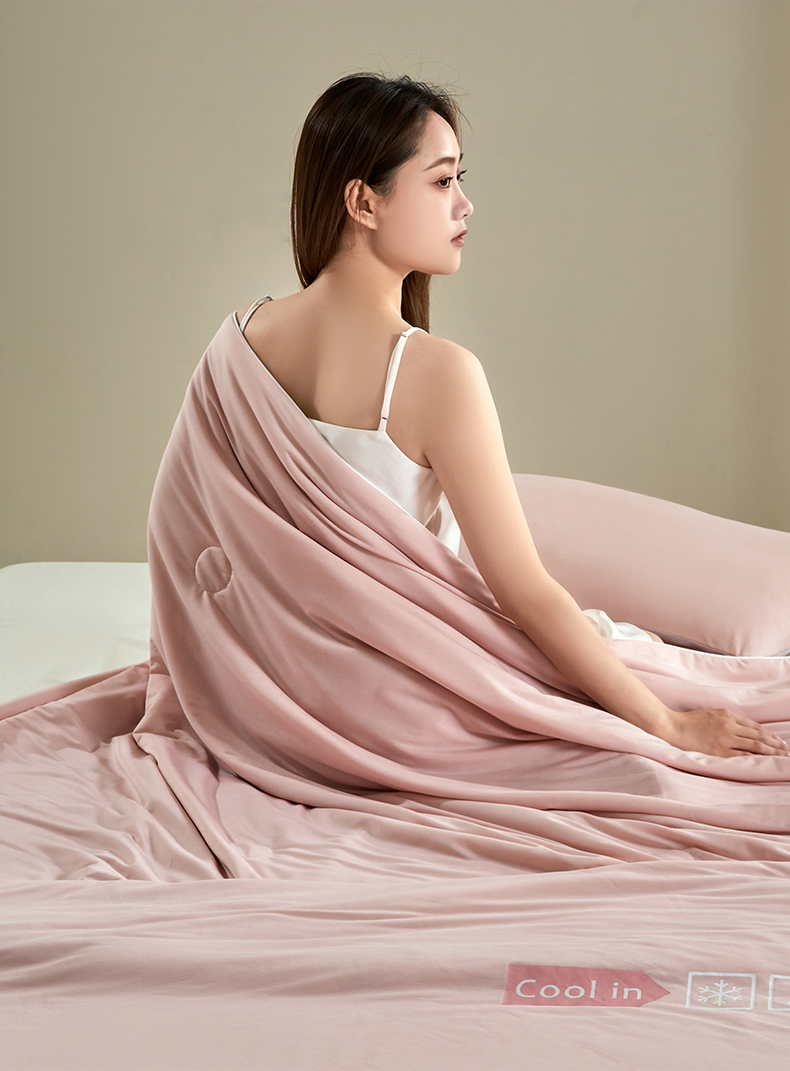 • 91家纺网 家纺一手货源 找家纺 桃子 2024新款A类高品质冰冰凉雪花冰感凉皮双面凉感夏被 冰感凉皮-粉紫梦幻(加倍透气)