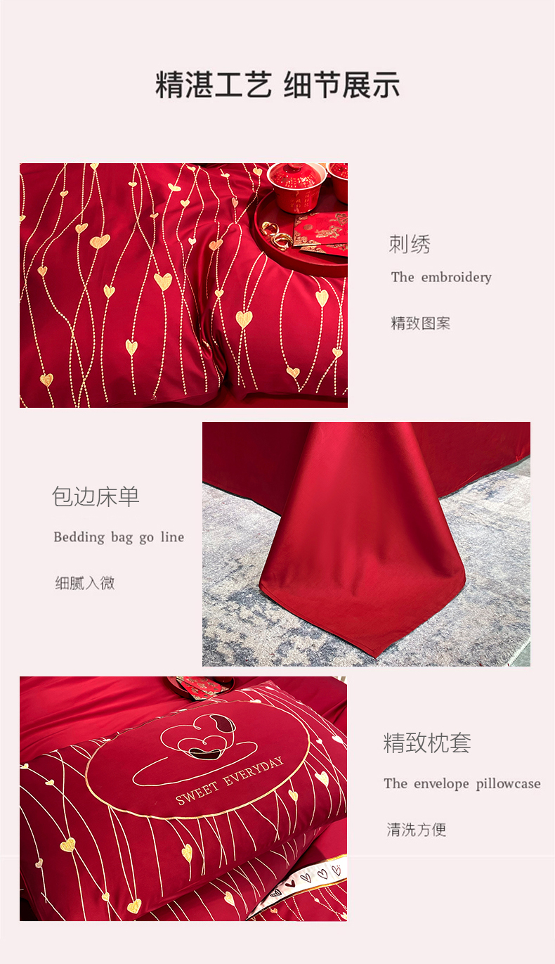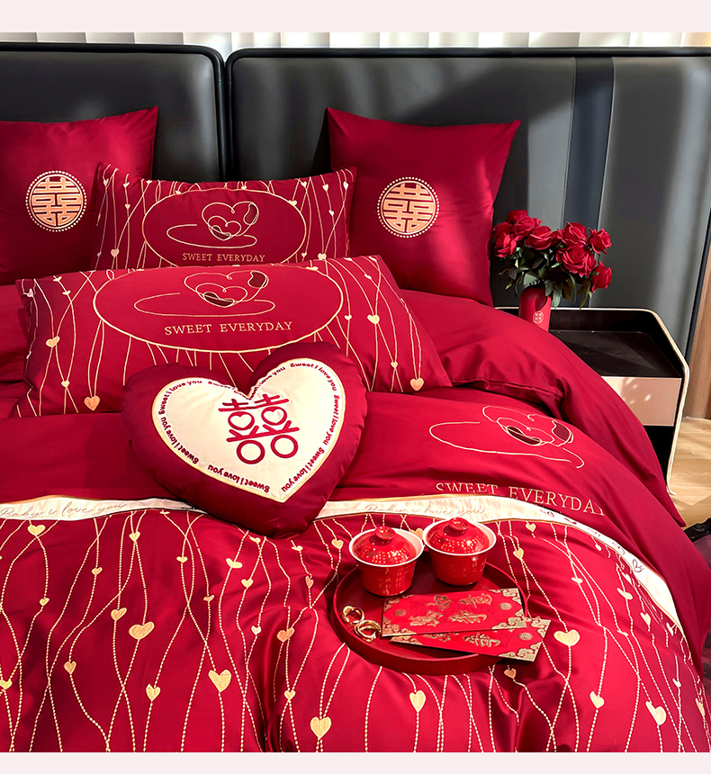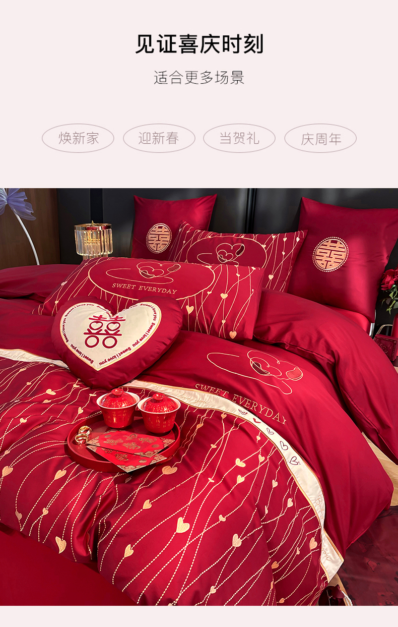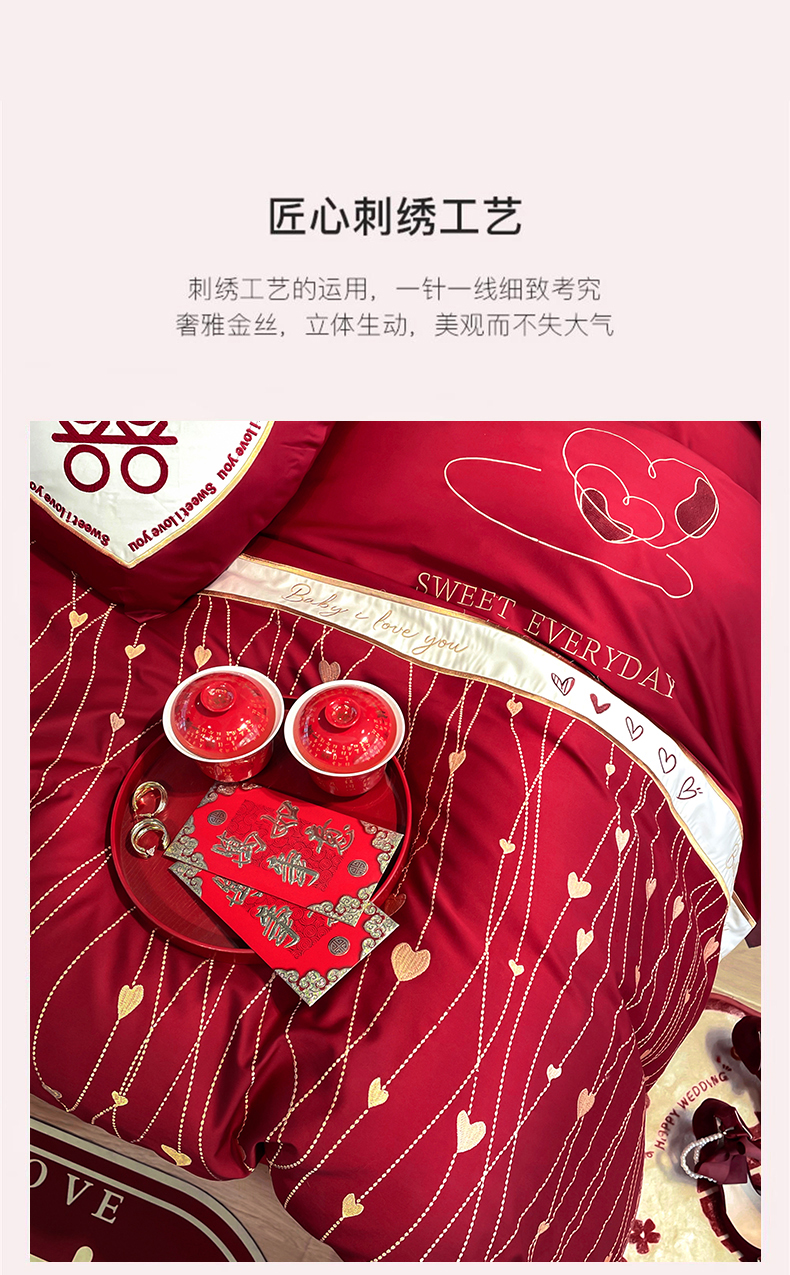 (总)甜咪咪婚庆 2025新款50支长绒棉全棉婚庆床单床盖四件套多件套刺绣工艺,洛可可,爱恋小熊,爱意久久,多子多福,花田喜事,节节高升,克拉恋人,浪漫情怀,怦然心动红,怦然心动玉,甜心玫瑰,温莎公主,伊甸园,醉红妆
