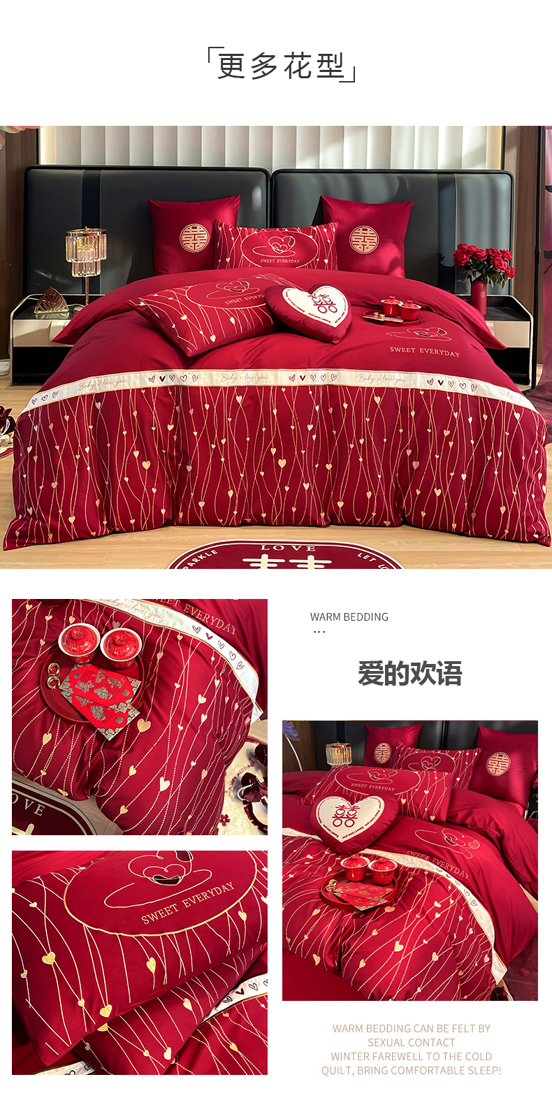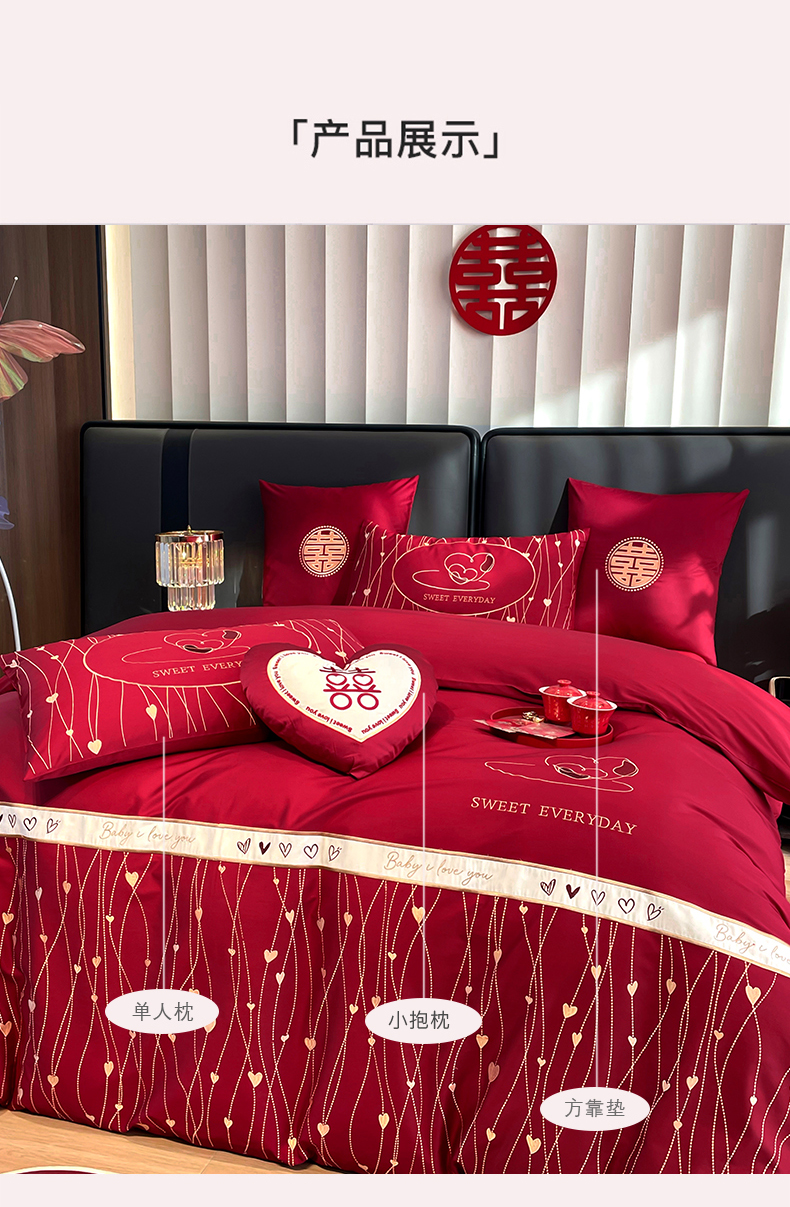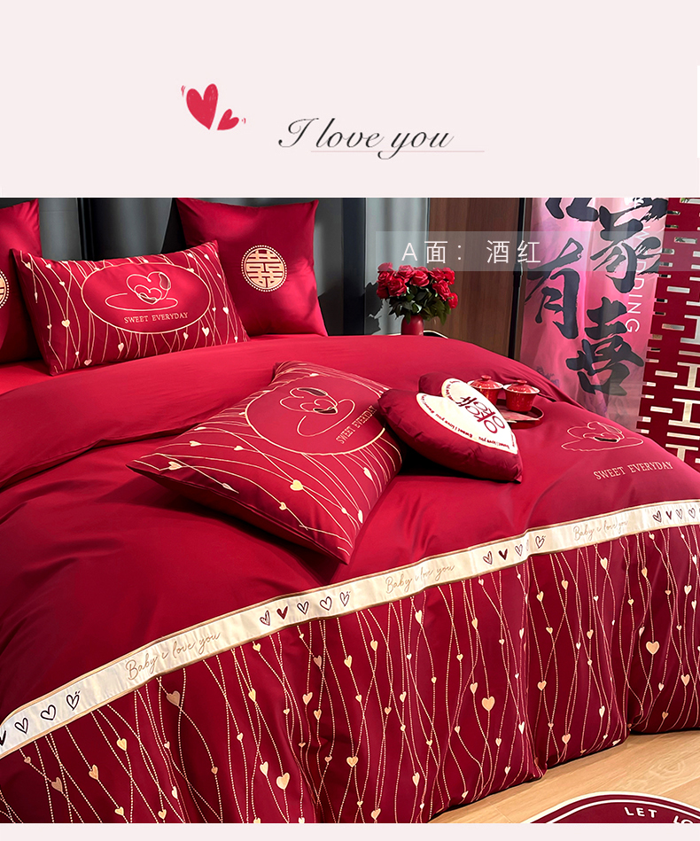 (总)甜咪咪婚庆 2025新款50支长绒棉全棉婚庆床单床盖四件套多件套刺绣工艺,洛可可,爱恋小熊,爱意久久,多子多福,花田喜事,节节高升,克拉恋人,浪漫情怀,怦然心动红,怦然心动玉,甜心玫瑰,温莎公主,伊甸园,醉红妆