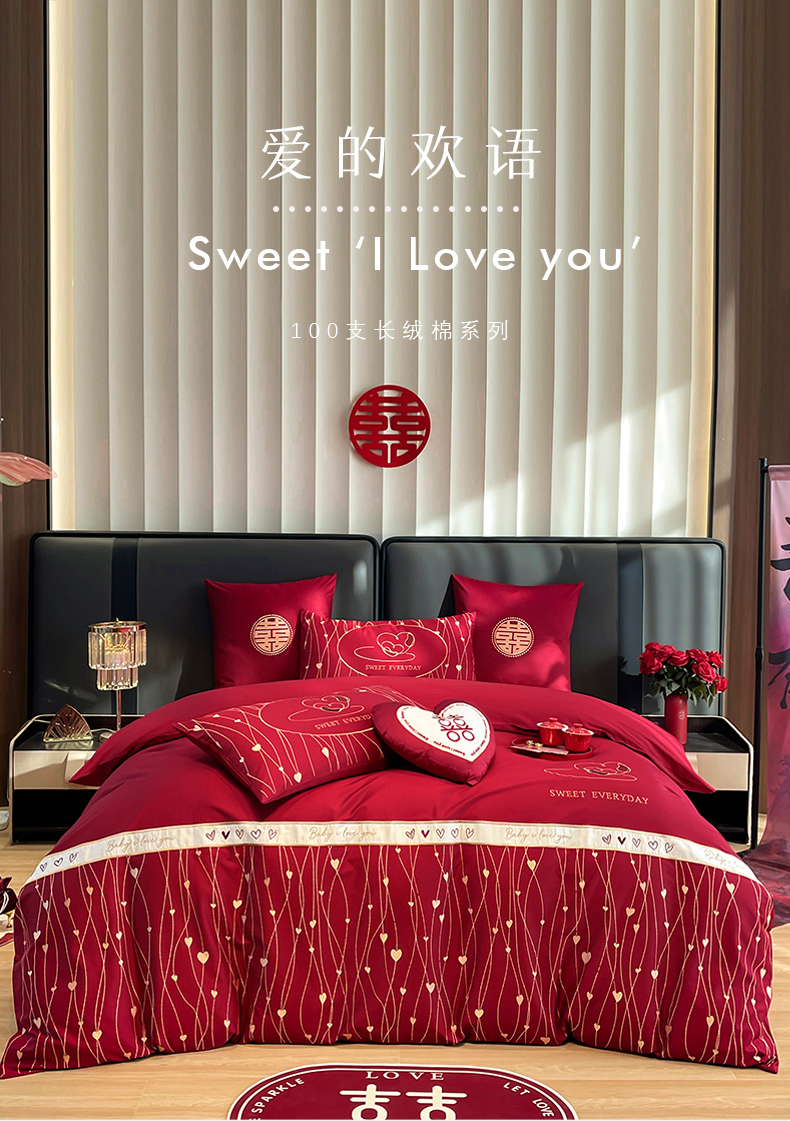 甜咪咪婚庆 2024新品长绒棉全棉婚庆结婚四件套多件套小红书推荐 爱的欢语
