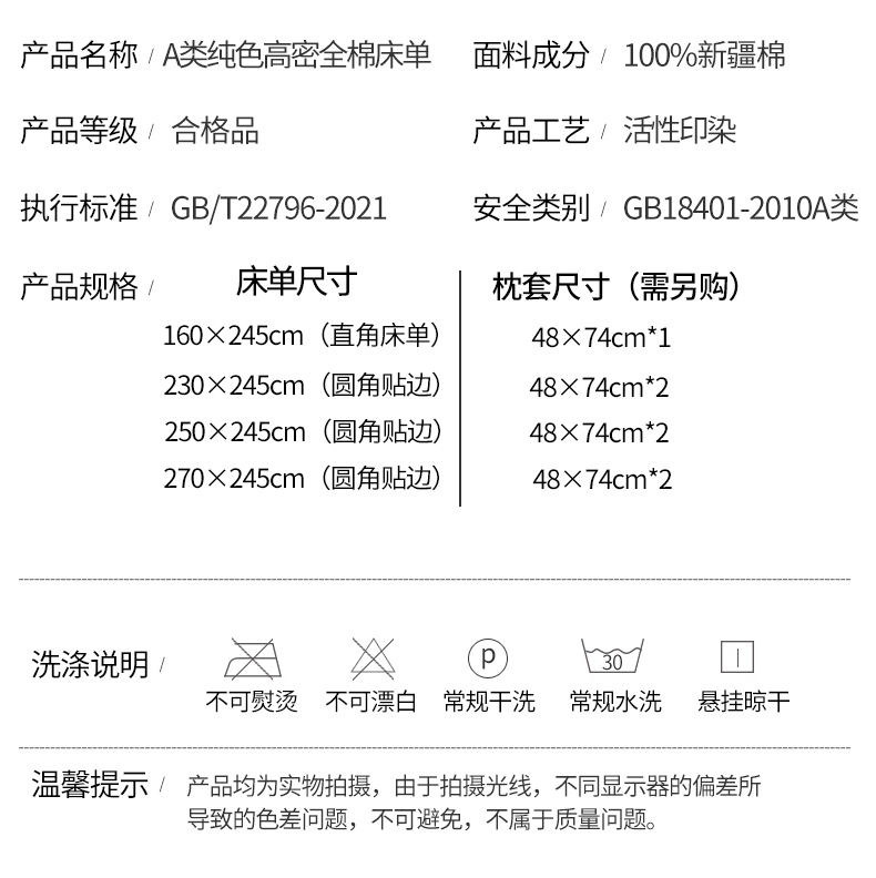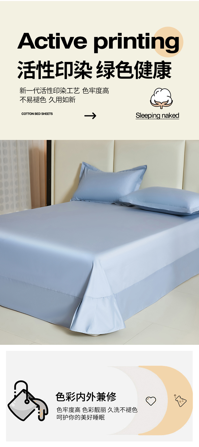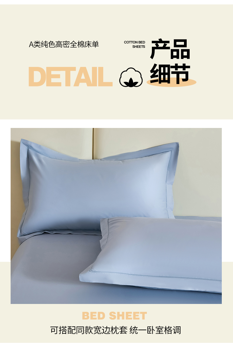 商品名称:名优家纺 2024新款纯色13374高密全棉单床单 纯净蓝