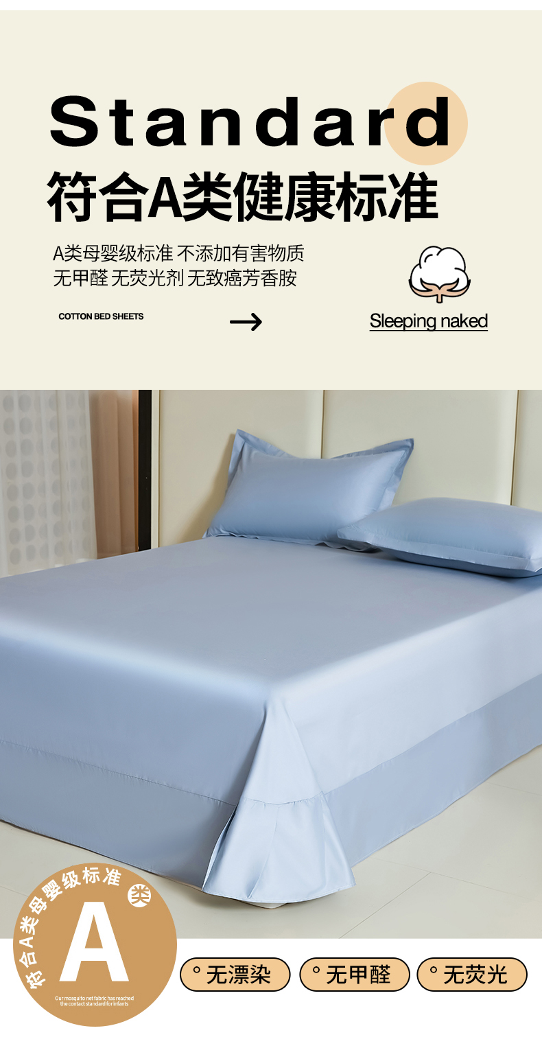 名优家纺 2024新款纯色13374高密全棉单床单 纯净蓝
