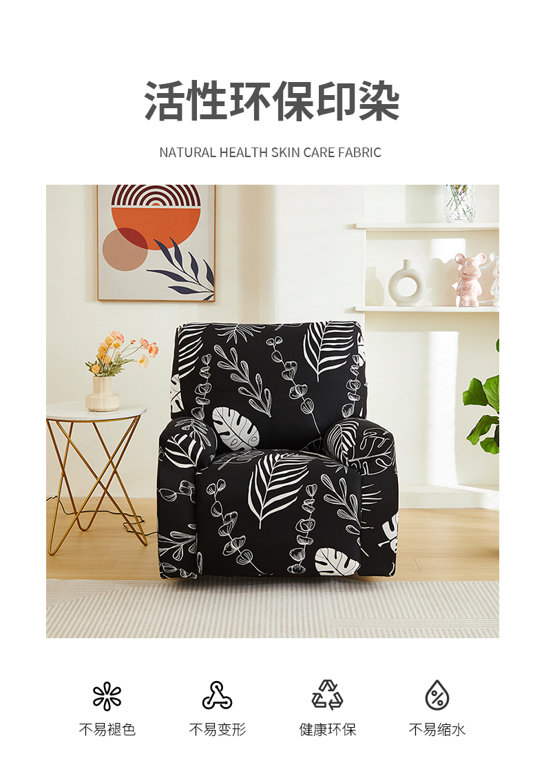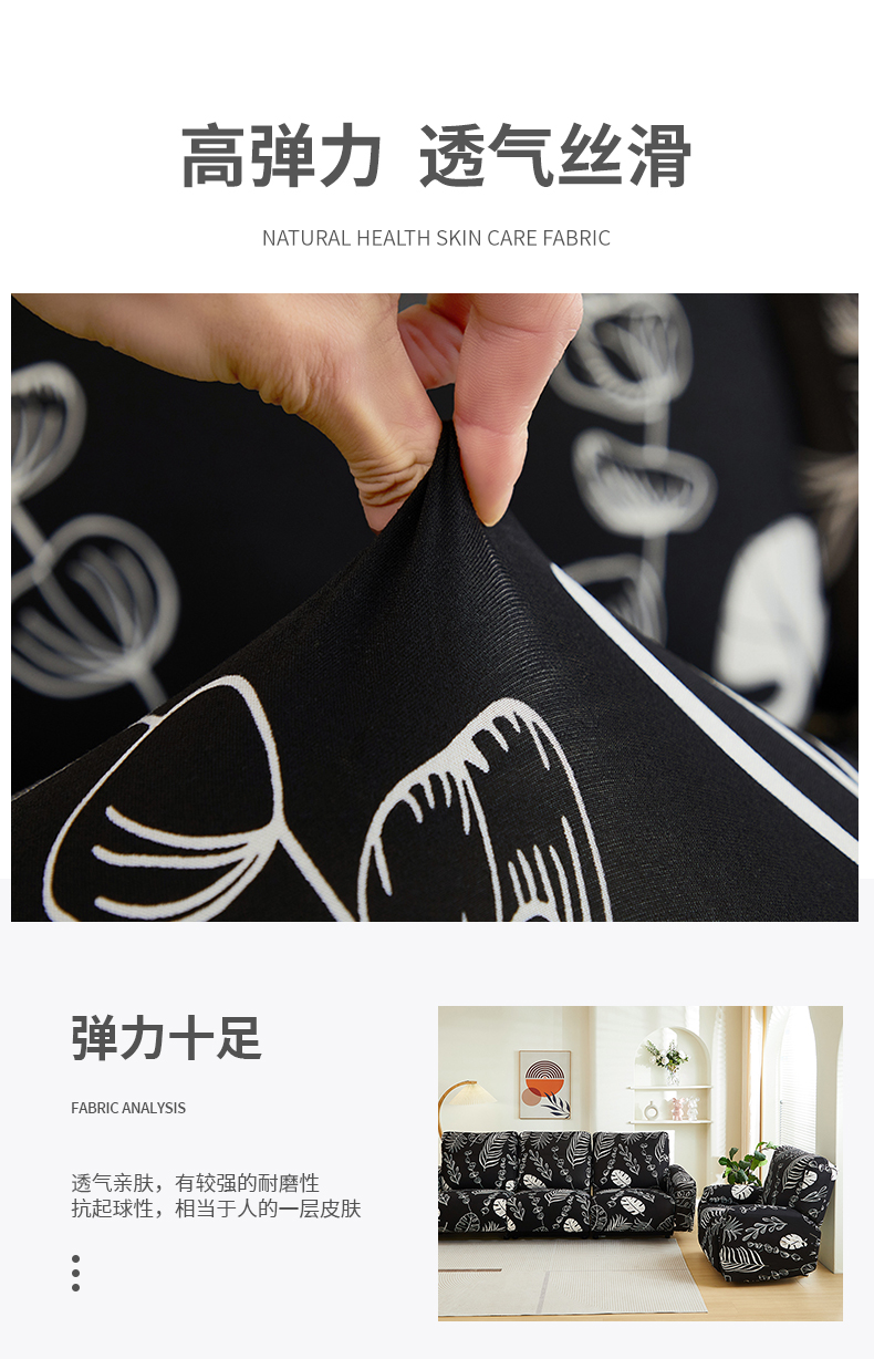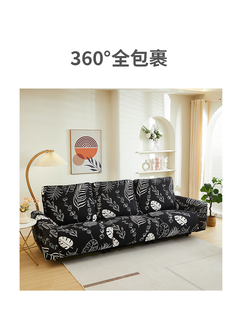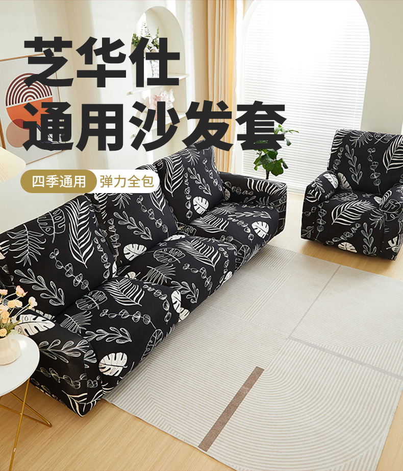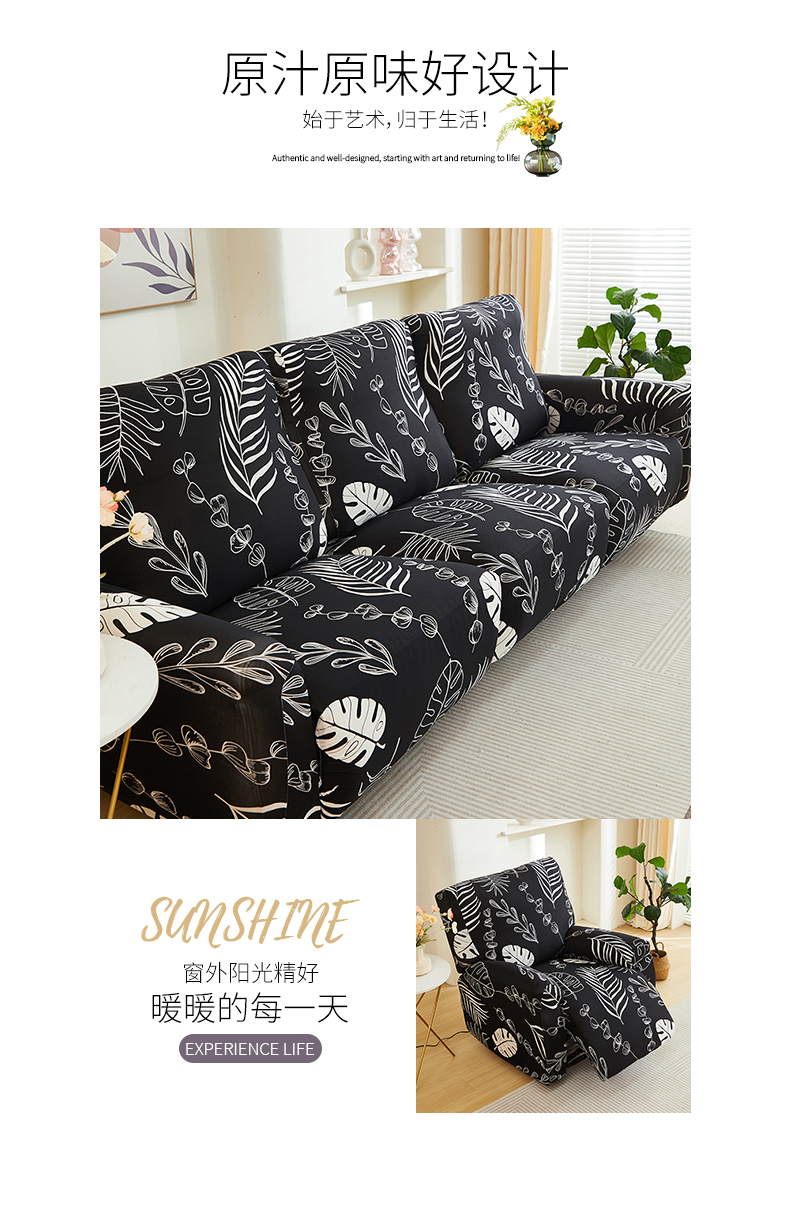 商品名称:逐日沙发套 2024新款牛奶丝印花-芝华仕沙发套 印花 芝华仕 黑叶