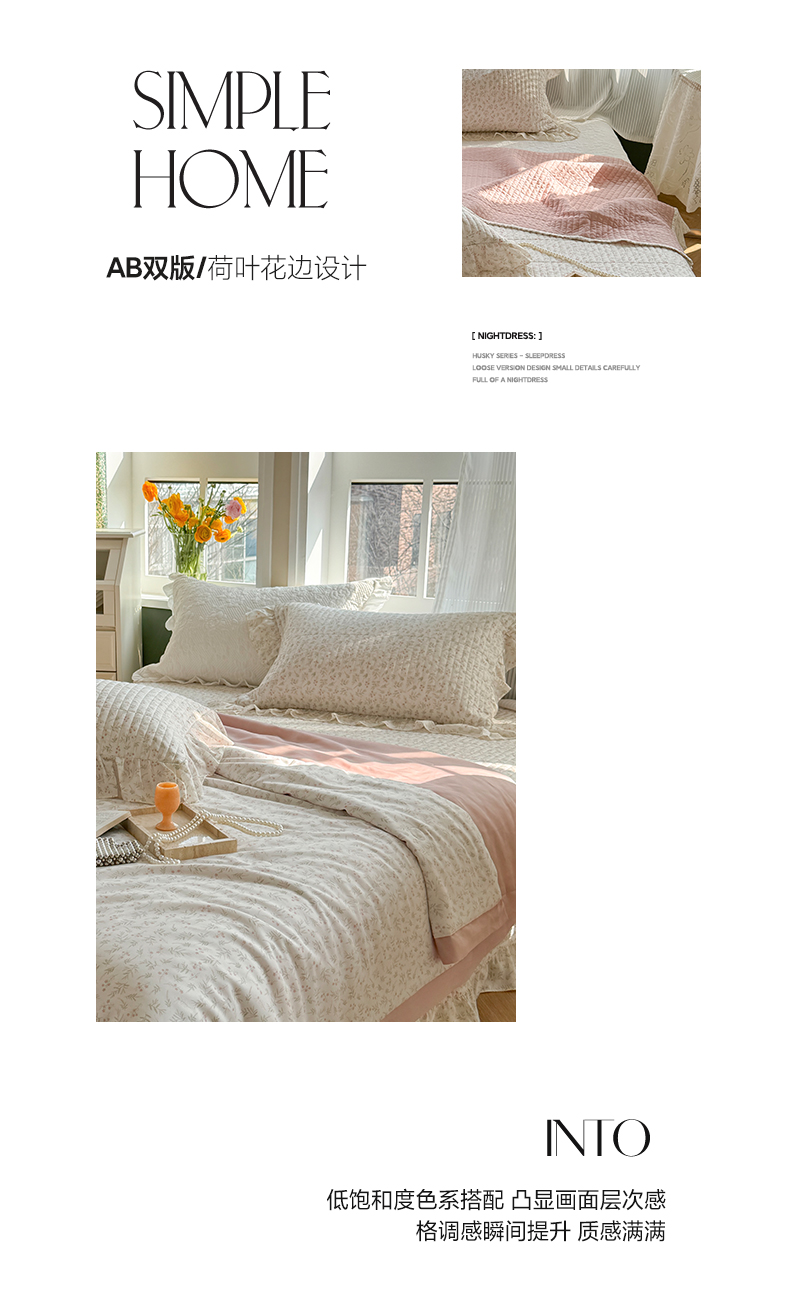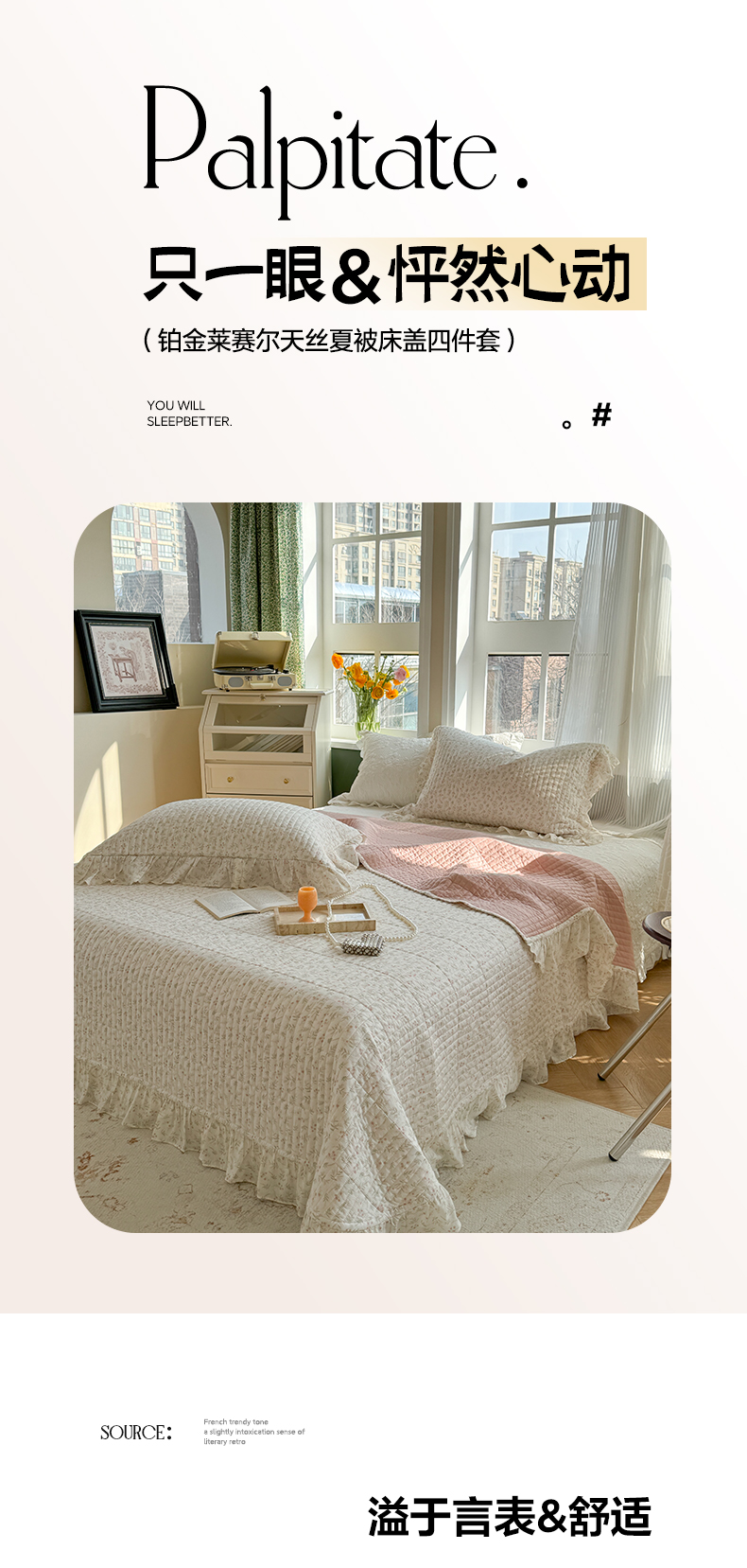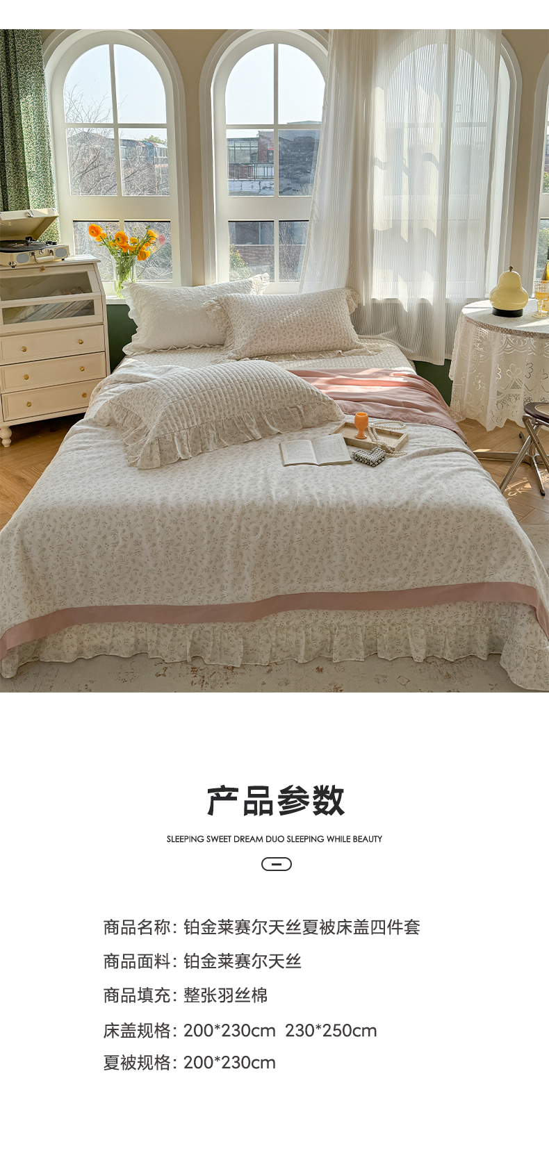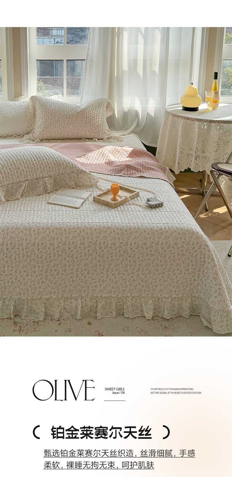 商品名称:诗黛尔 2024新款莱赛尔印花床盖三件套 藕荷粉
