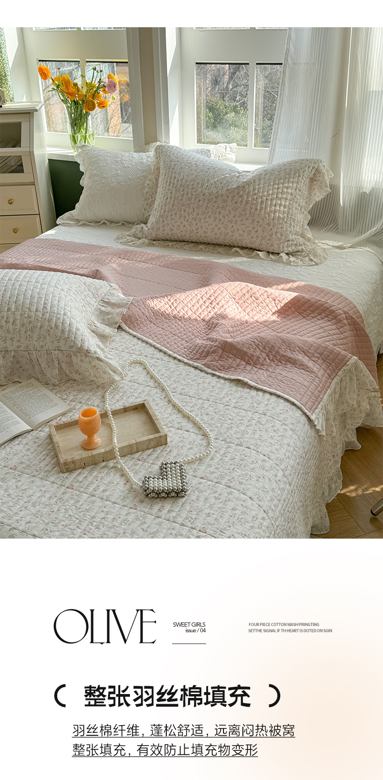 诗黛尔 2024新款莱赛尔印花床盖三件套 藕荷粉