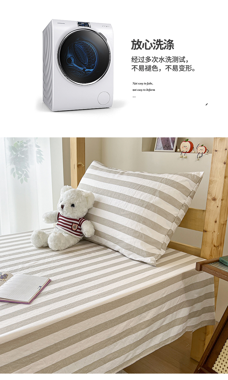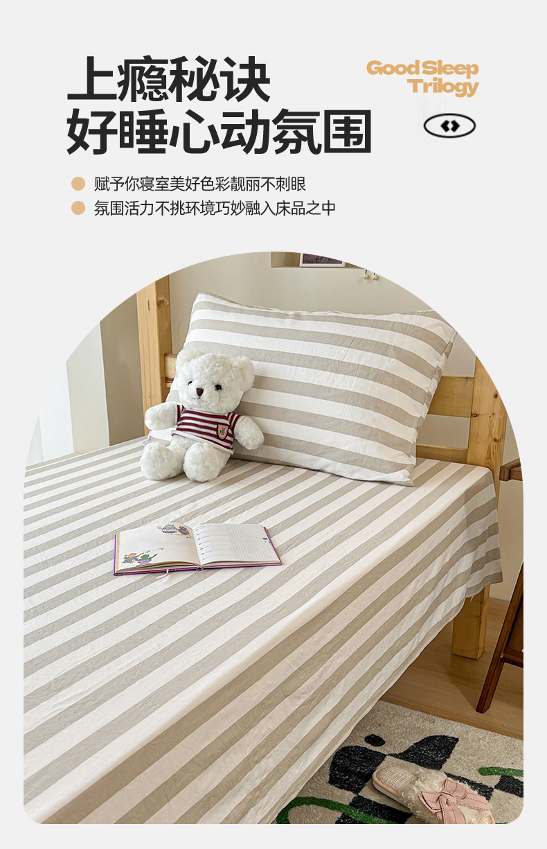 • 91家纺网 家纺一手货源 找家纺 多品 2024新款水洗棉皱皱纱学生宿舍单床单 暮落浅咖