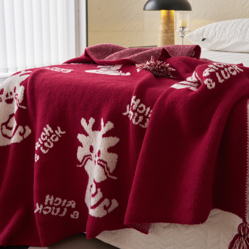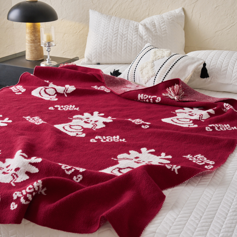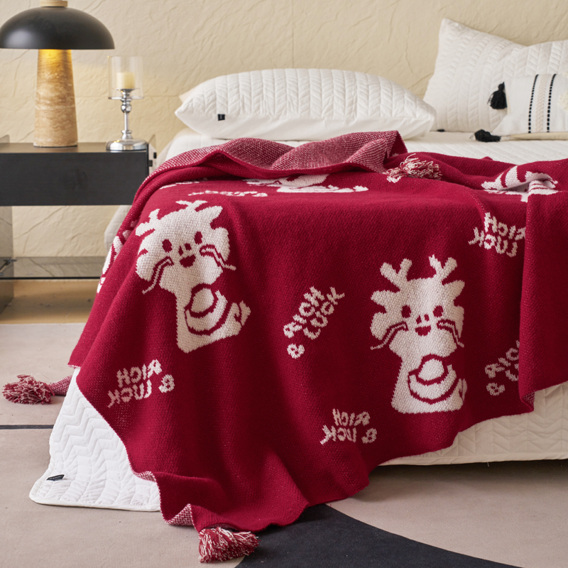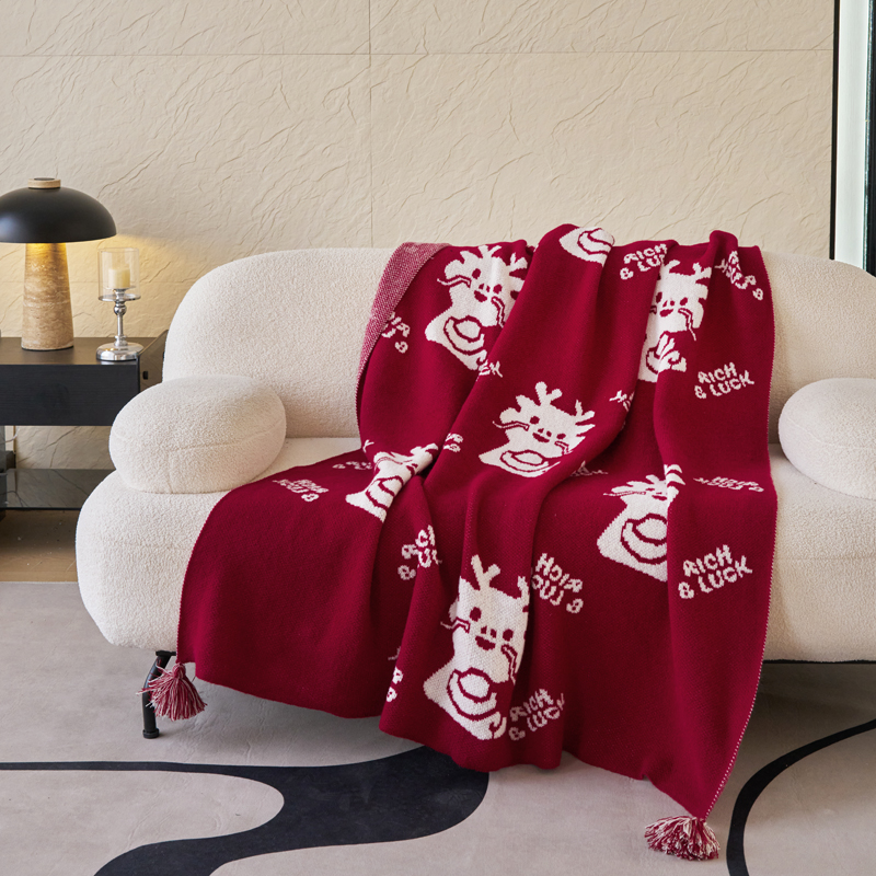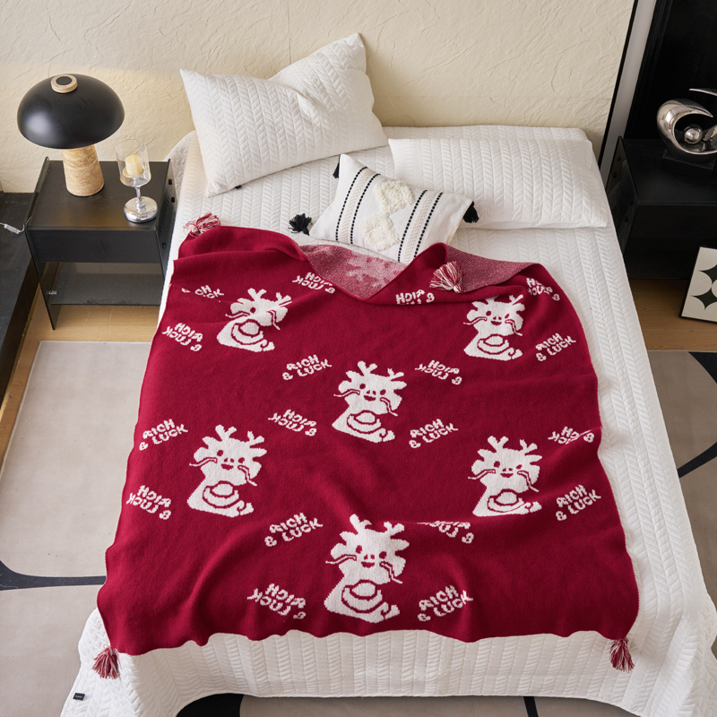 苏艺针织盖毯 2024新款龙年限定针织亲肤毯龙年大吉盖毯 龙年进宝(红)