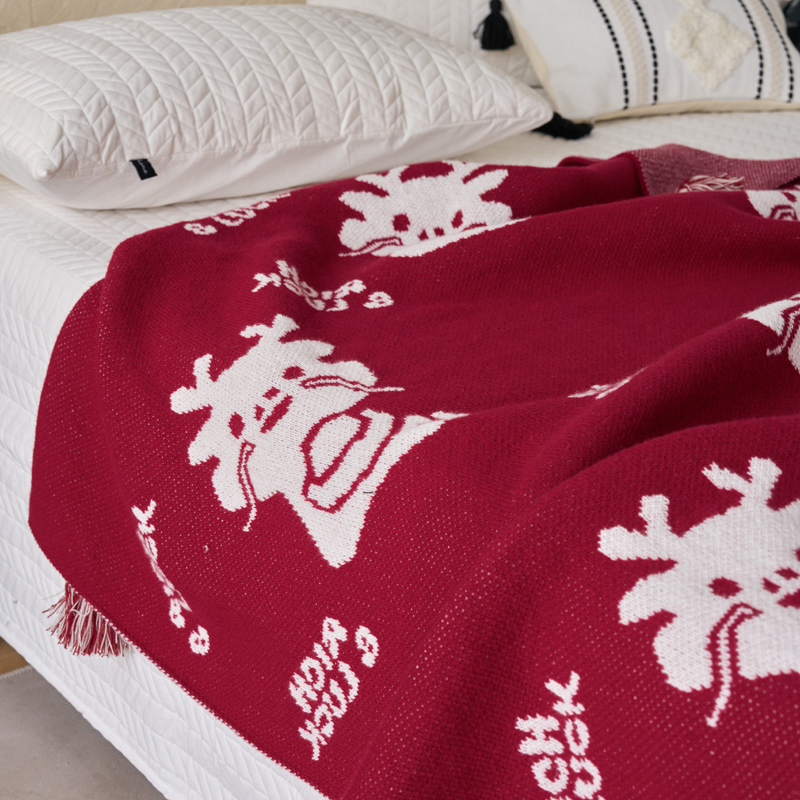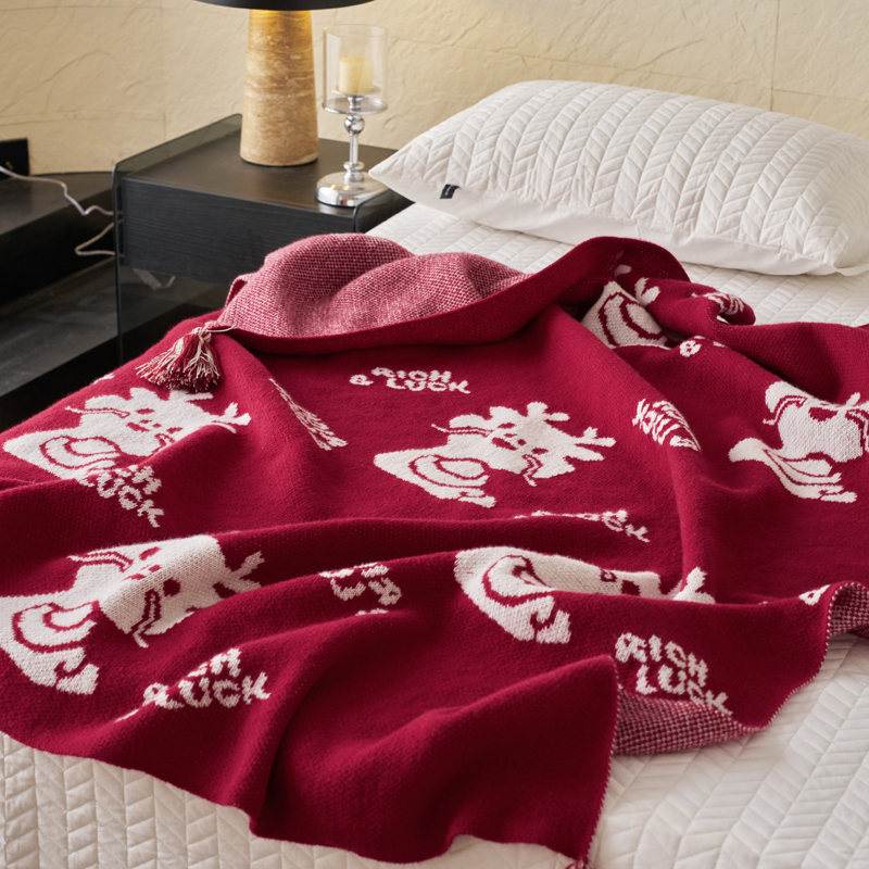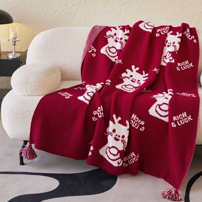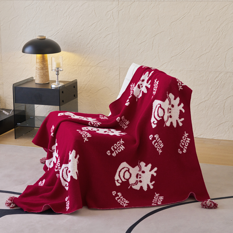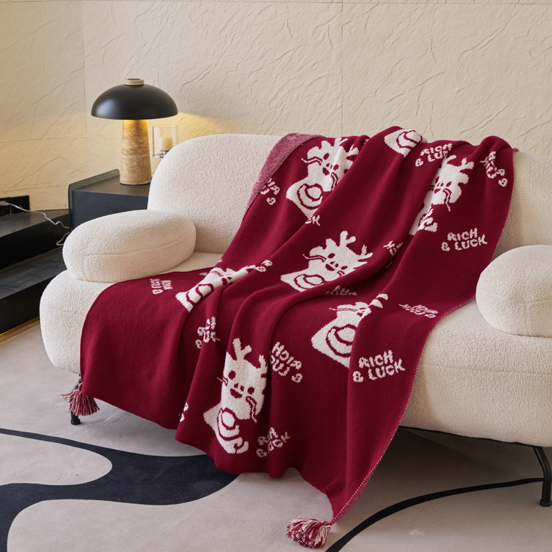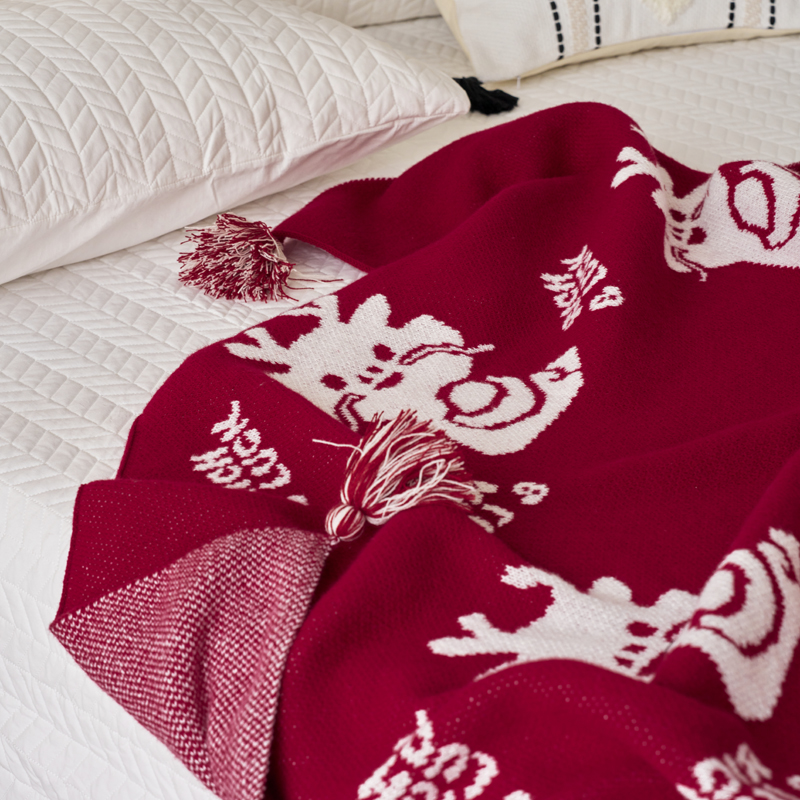 苏艺针织盖毯 2024新款龙年限定针织亲肤毯龙年大吉盖毯 龙年进宝(红)