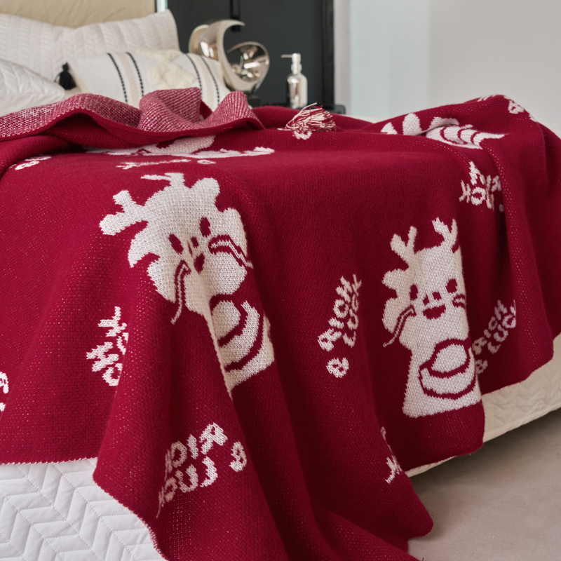 (总)苏艺针织盖毯 2024龙年限定高克重一体针织毛巾绣亲肤毛毯盖毯,祥龙献瑞 (红),祥龙献瑞(白),一鹿有你(白),一鹿有你(红)