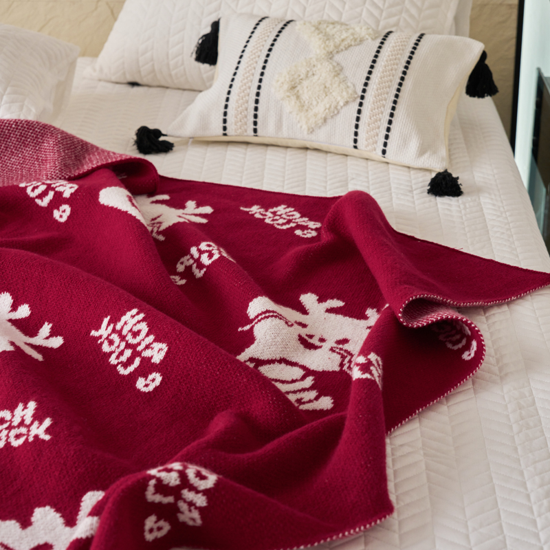 (总)苏艺针织盖毯 2024新款针织圣诞新年款毛毯,冰雪麋鹿大,冰雪麋鹿小,冰雪雪花,两情相悦