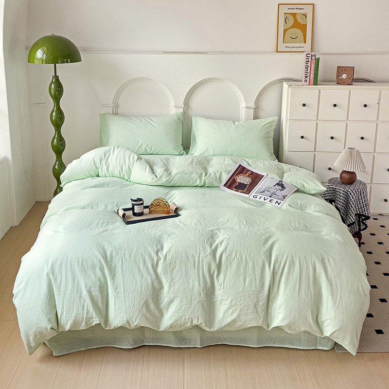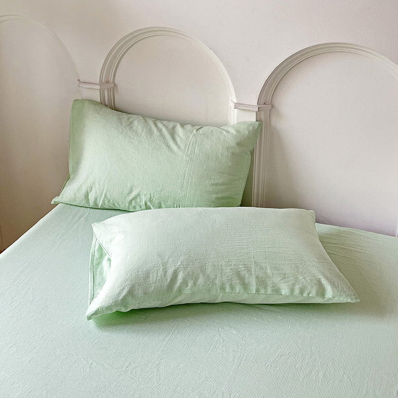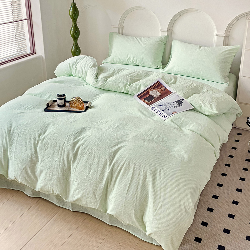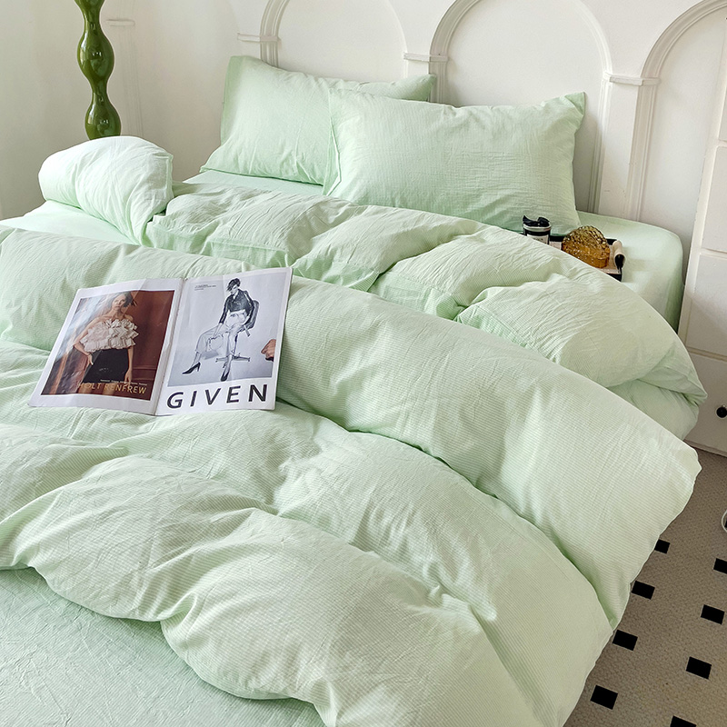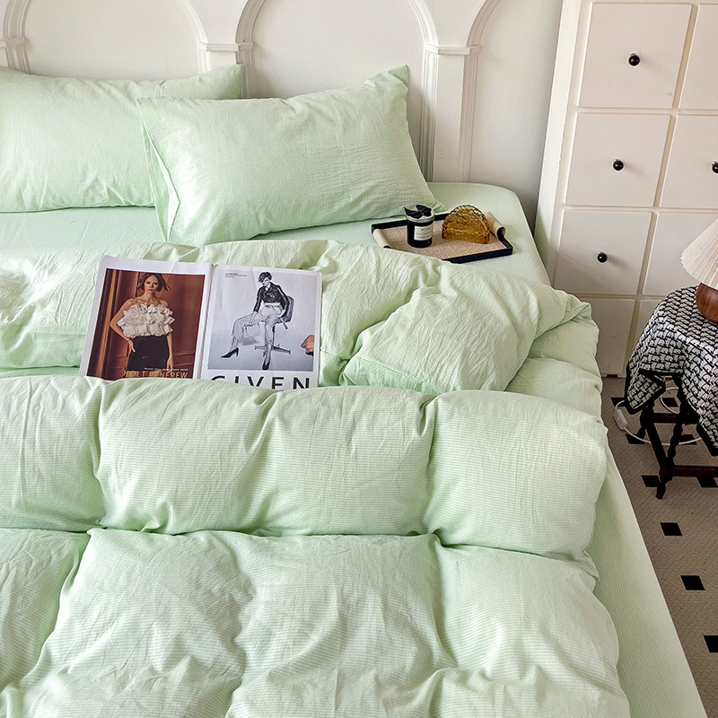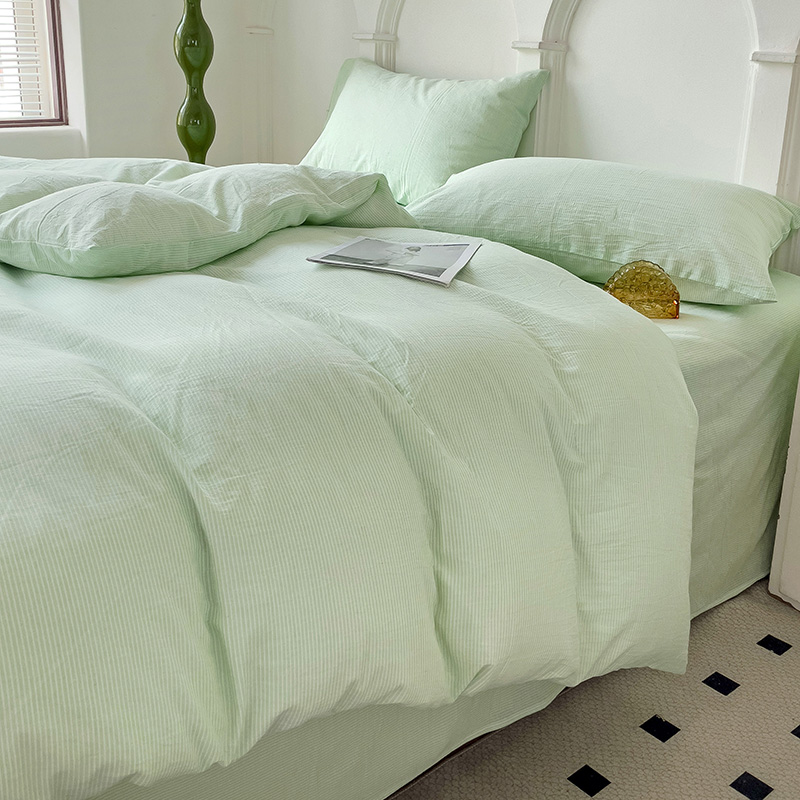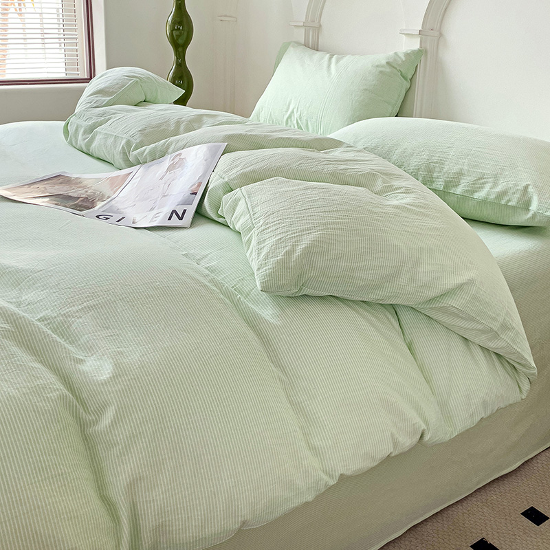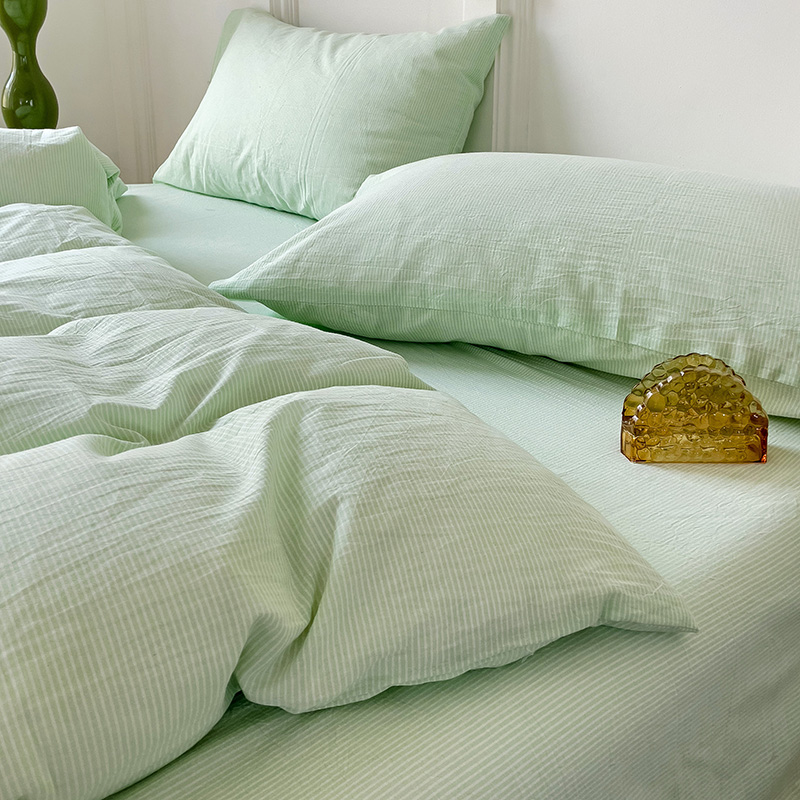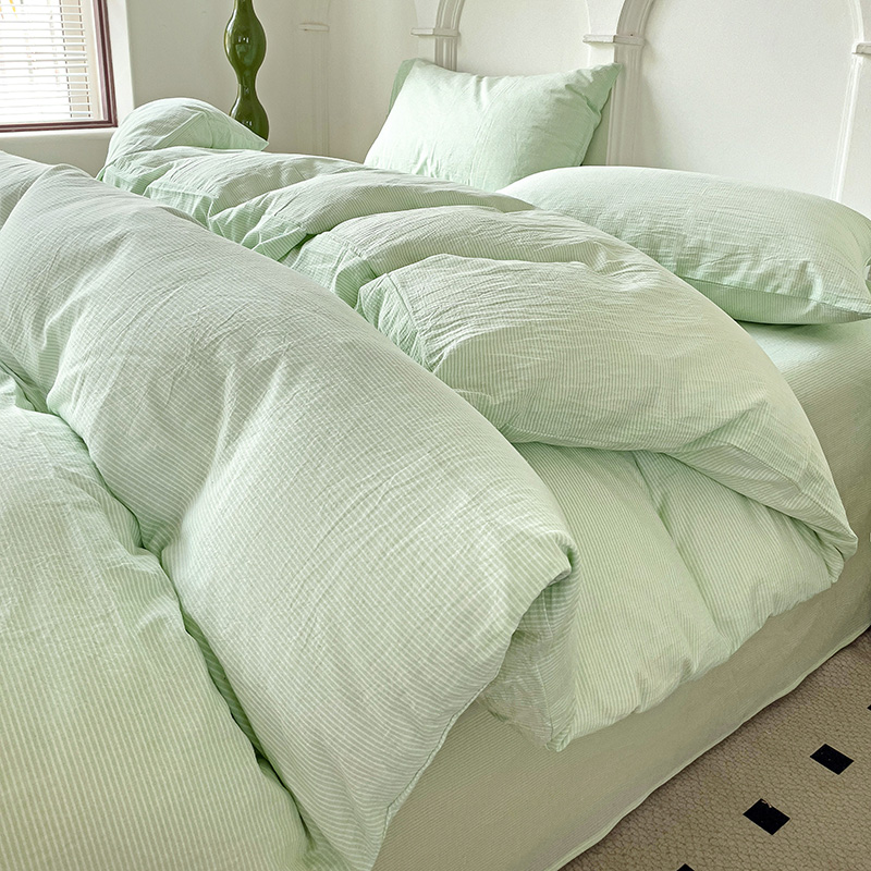 商品名称:呗旺鹿 2024新款A类40支全棉色织水洗棉四件套全棉四件套纯棉四件套无印风 魅力条纹绿