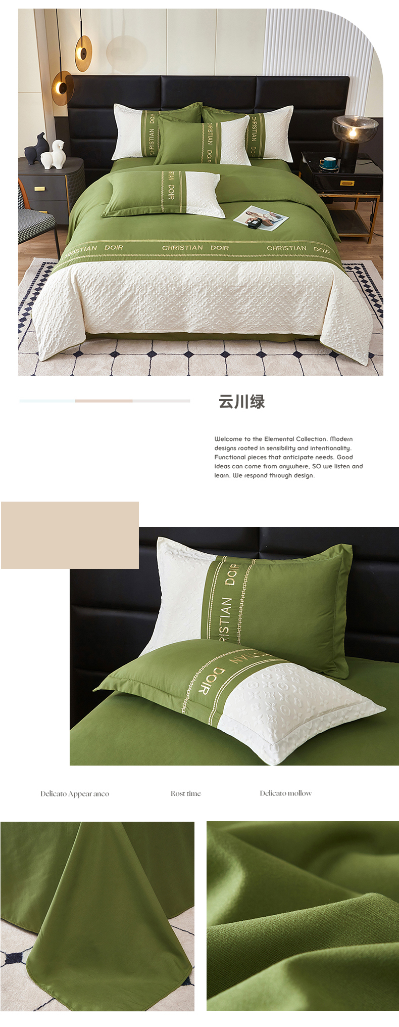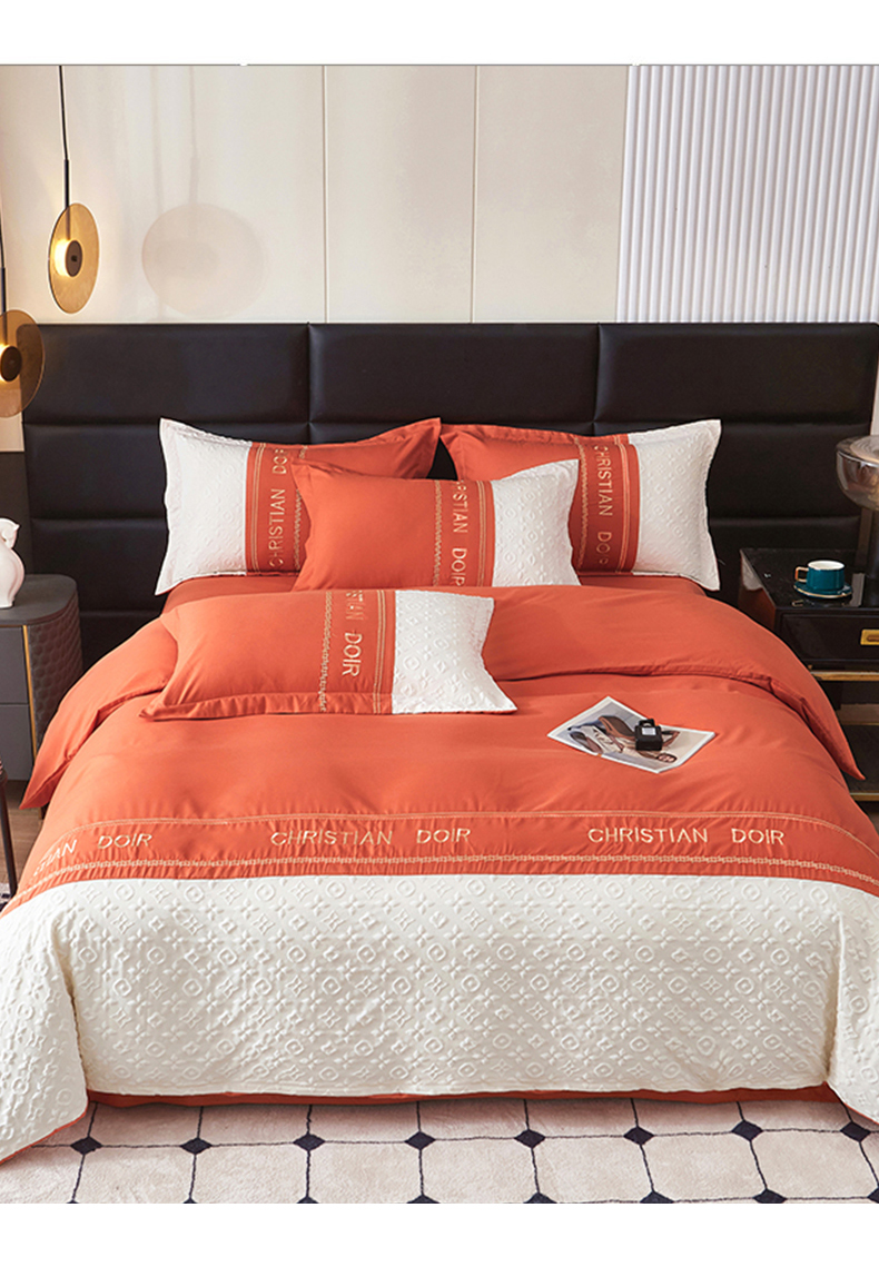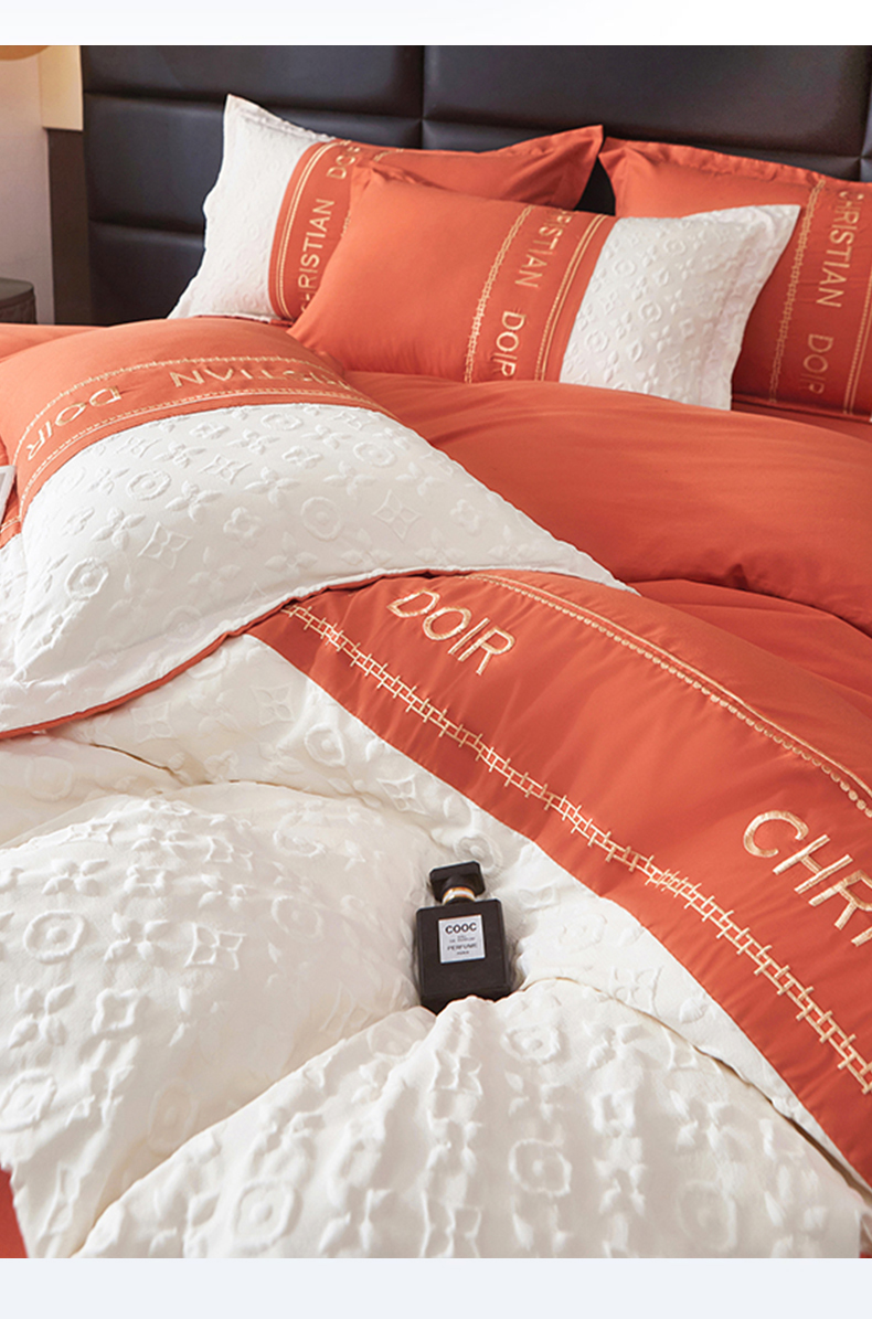 (总)2025新款爆款水洗棉磨毛立体浮雕刺绣四件套纯色拼接慕兰迪【提供买家秀】