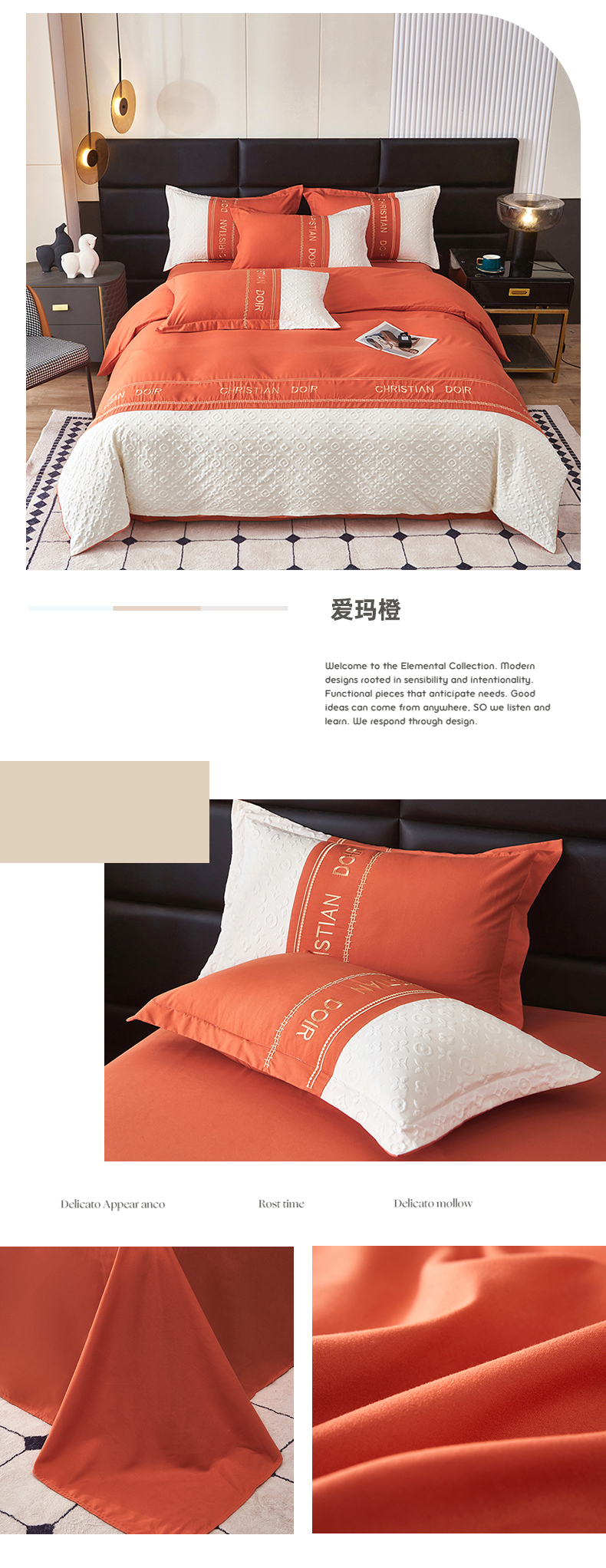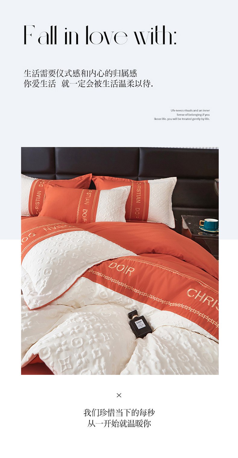 (总)富宁家纺 2025新款直播爆款水洗棉磨毛立体浮雕刺绣四件套-卡诗,橙叶子,灰叶子,粉叶子,绿叶子,蓝叶子